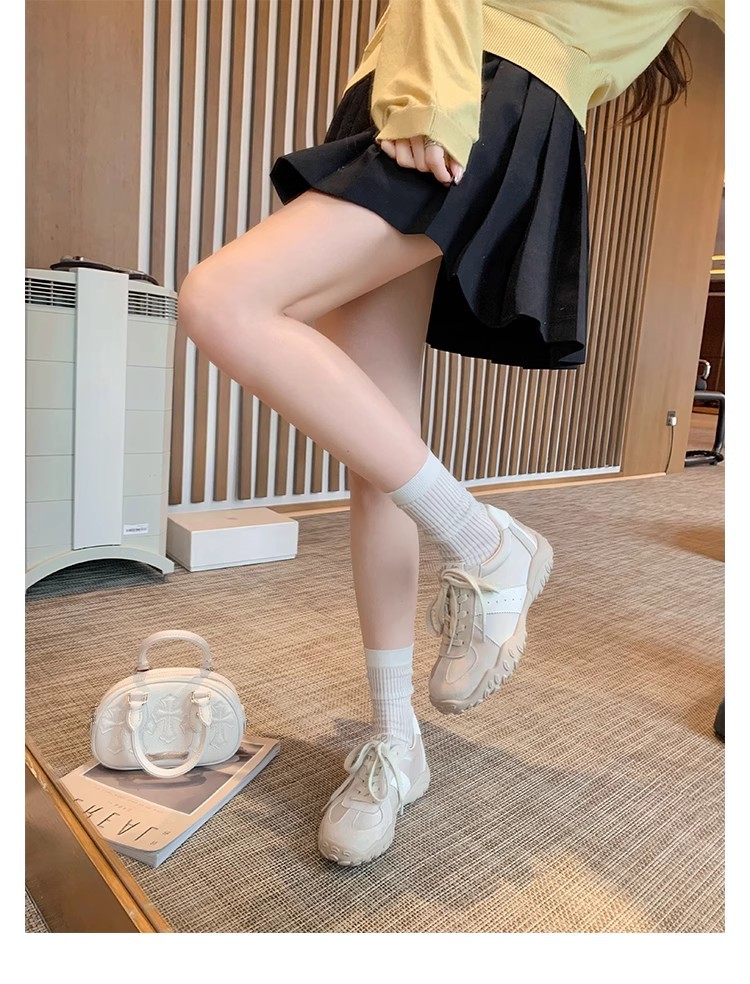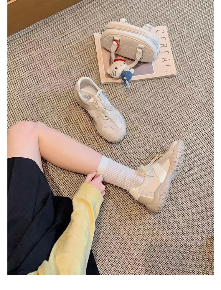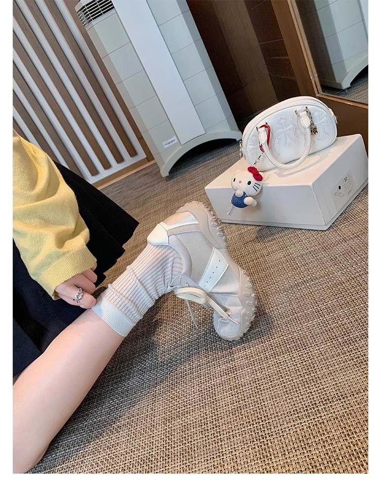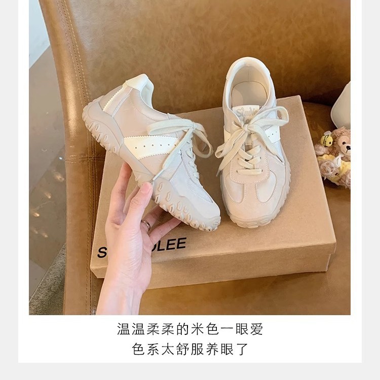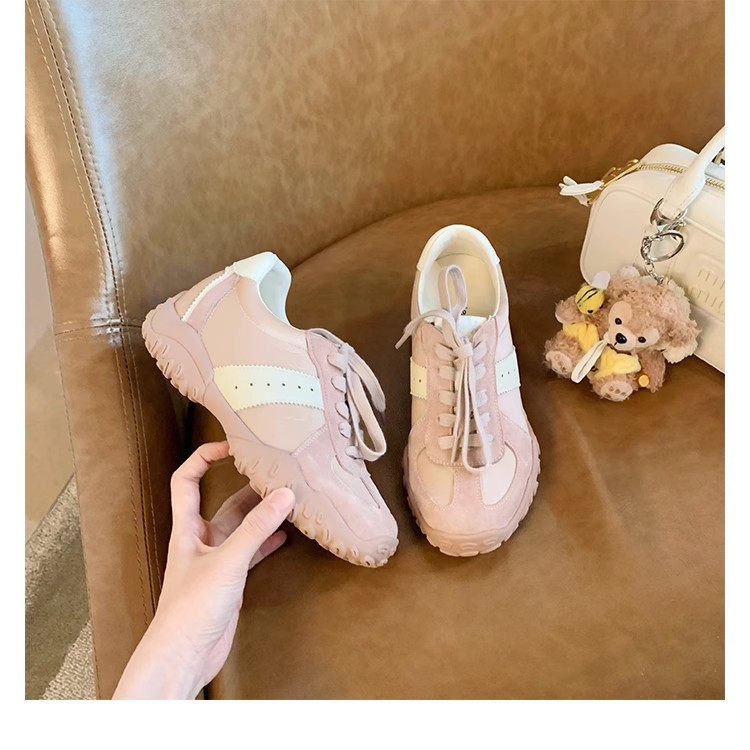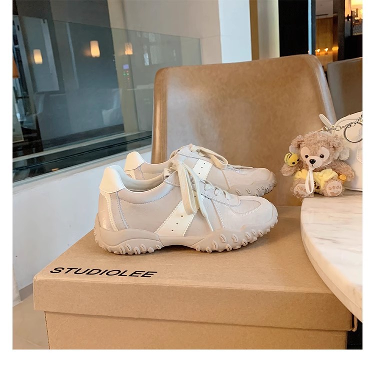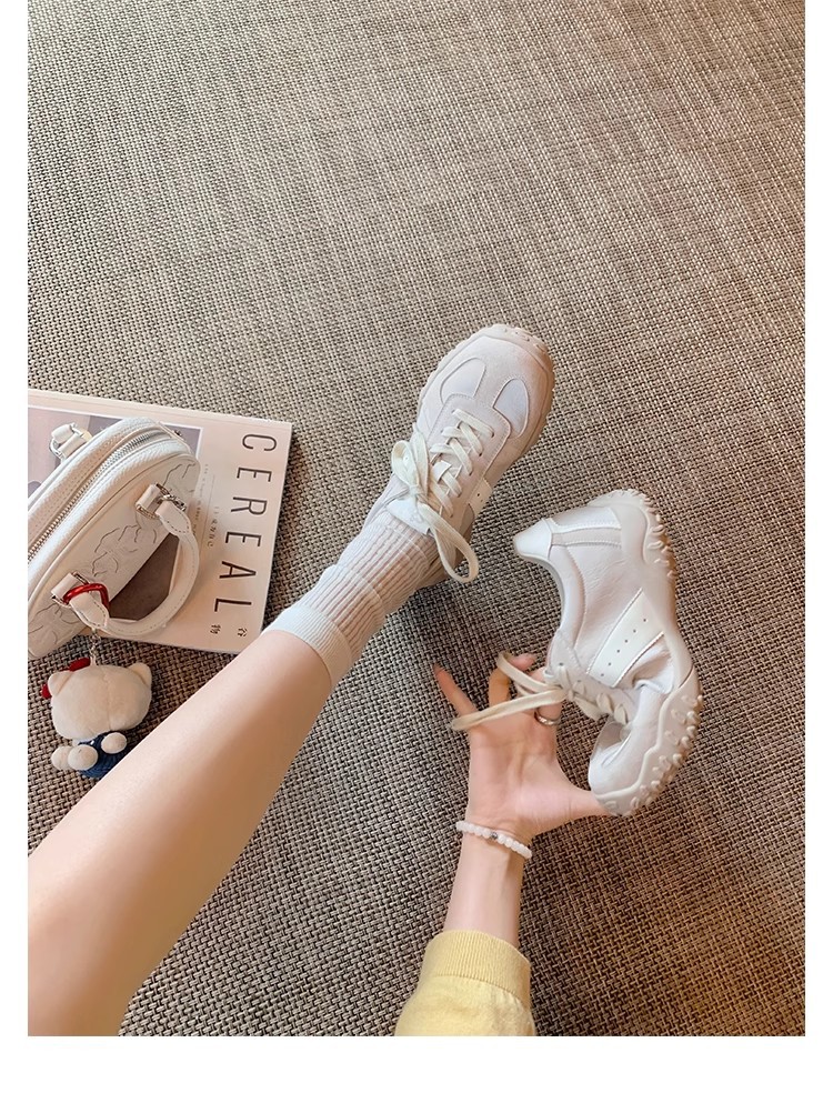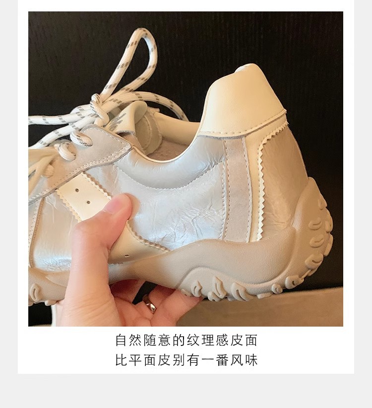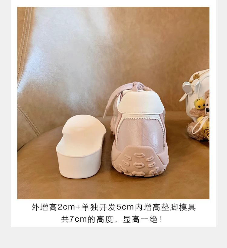 소가죽 버전 포도색 7cm 키높이 캐주얼 운동화 여성용 히든 힐 라인업 스티치 라운드 토 레이스업 데일리 슈즈