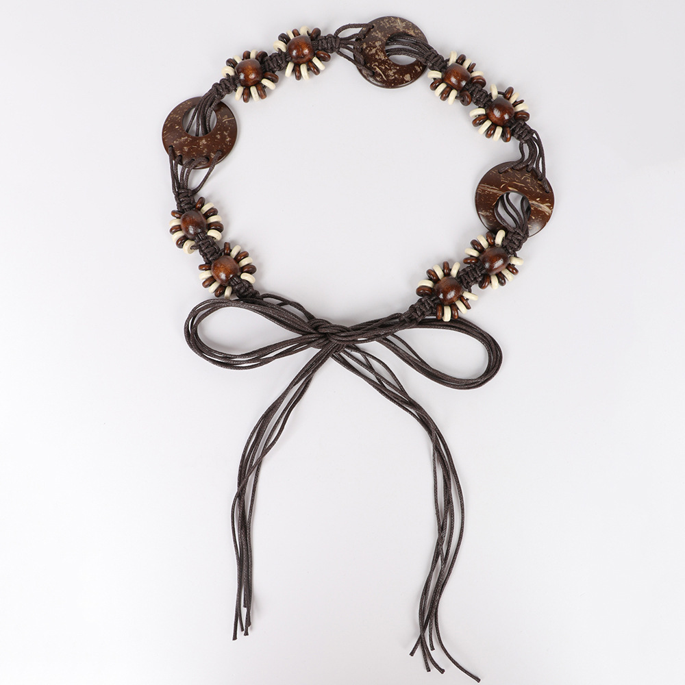 코코넛 껍질 시미아 액세서리 장식 민족 허리 로프 여성 드레스 허리 체인 복고풍 새로운 짠 벨트 벨트스토어 가기
