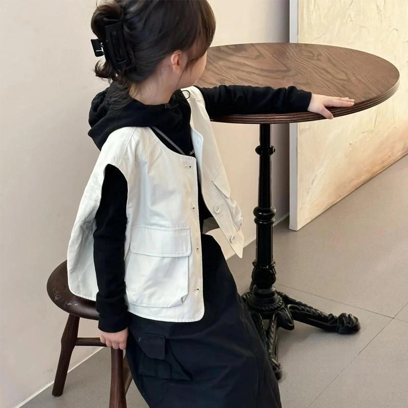 여자 가을 조끼 25 봄과 가을 새로운 어린이 한국 스타일 캐주얼 패션 싱글 브레스트 조끼 아기 작업 재킷