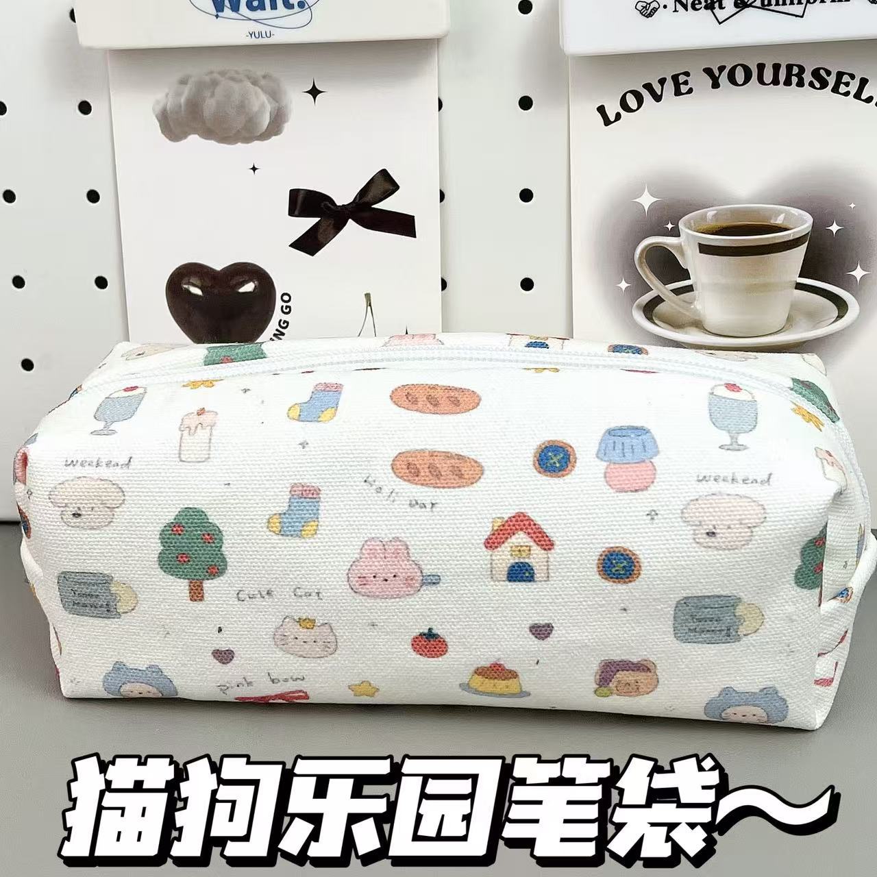 고양이와 개 연필 가방 ins 스타일 고급스러운 학생 문구 가방 대용량 보관 상자 화장품 가방 문구 상자스토어 가기