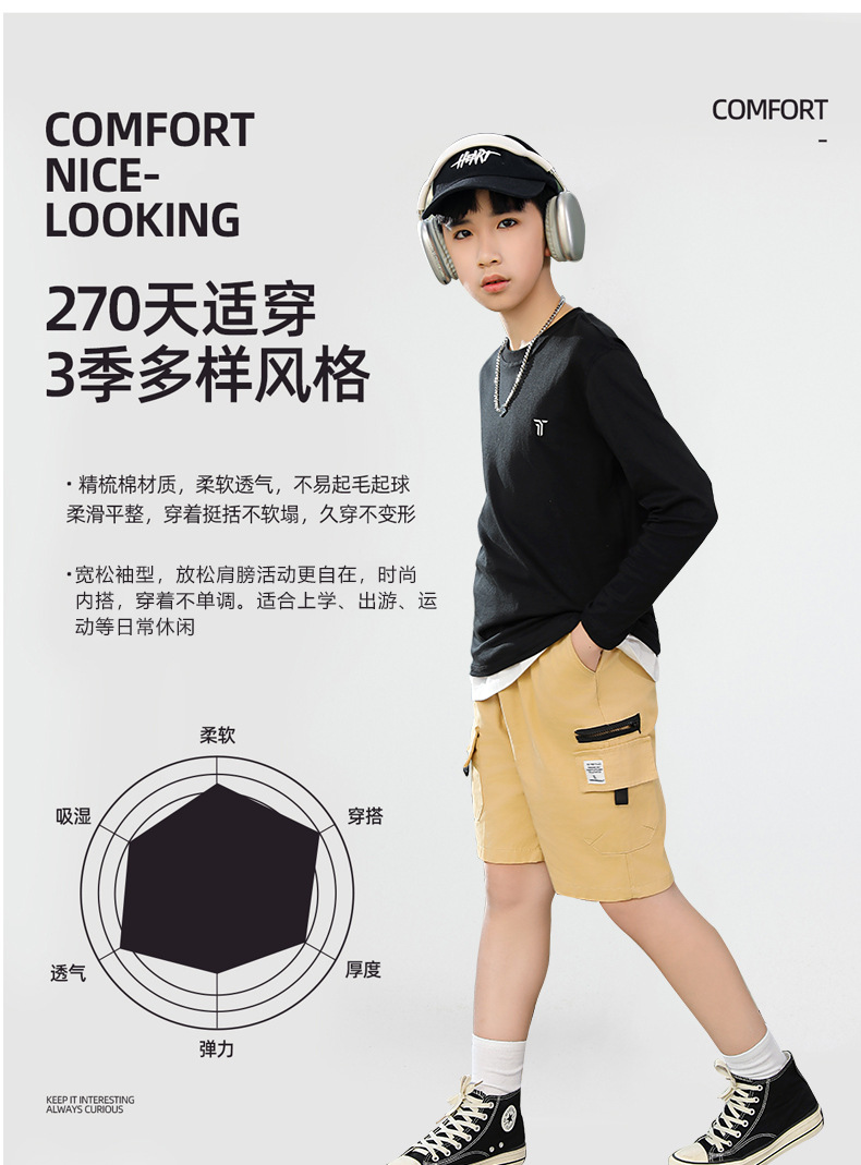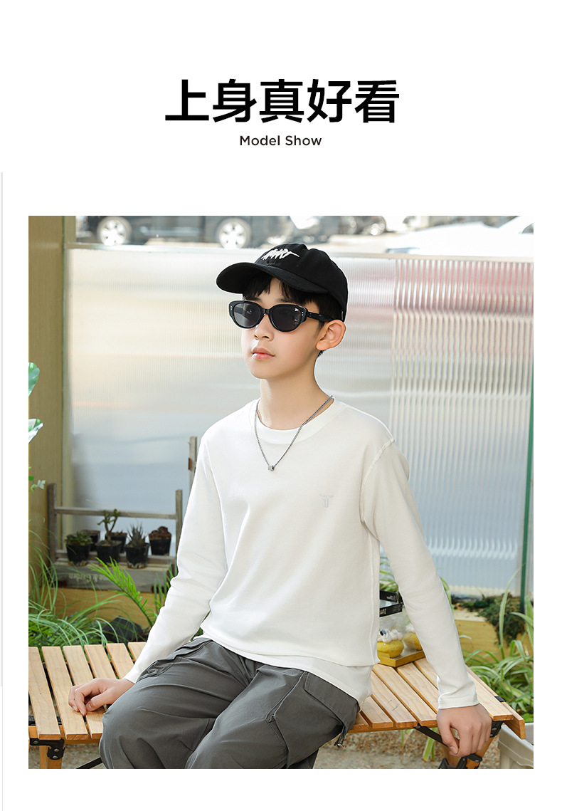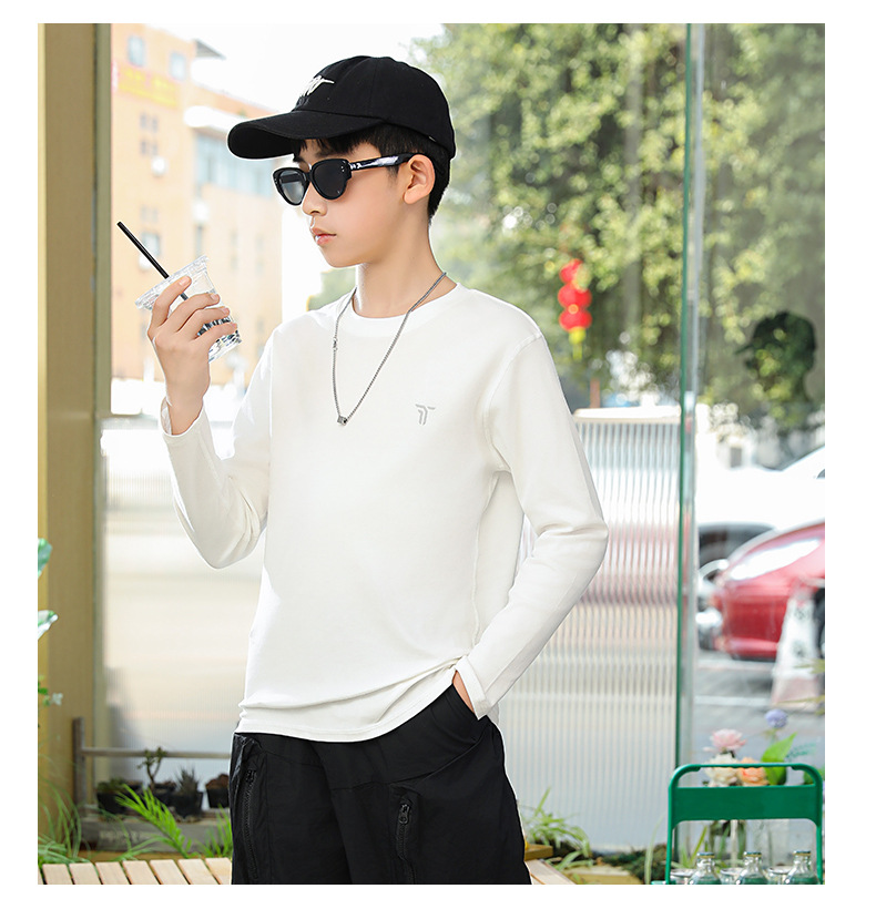 국경 간 3 방형 뼈없는 통기성 소년 티셔츠 긴소매 중대형 소년 티셔츠 긴소매 퓨어 코튼 보이즈 티셔츠 긴소매스토어 가기