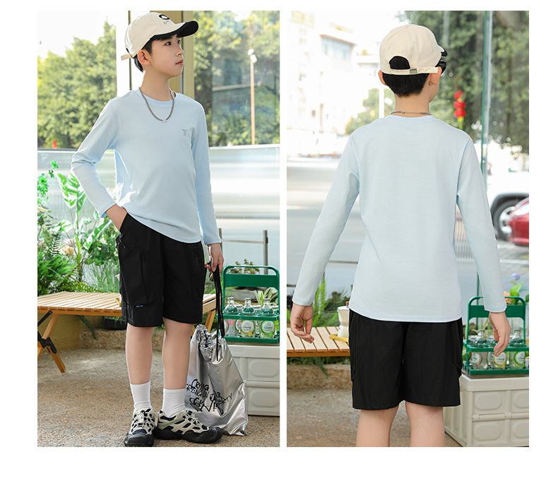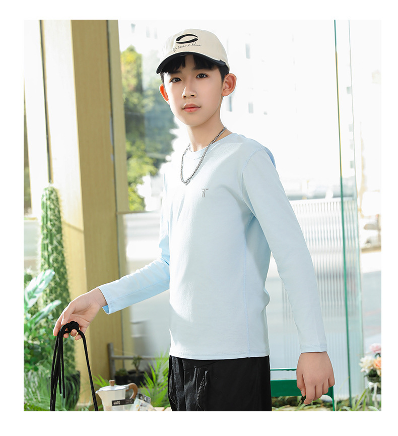 국경 간 3 방형 뼈없는 통기성 소년 티셔츠 긴소매 중대형 소년 티셔츠 긴소매 퓨어 코튼 보이즈 티셔츠 긴소매