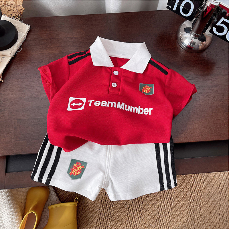 아기 여름 옷 세트 2025 여름 스포츠 새로운 어린이 서양식 짧은 소매 2 피스 축구 옷