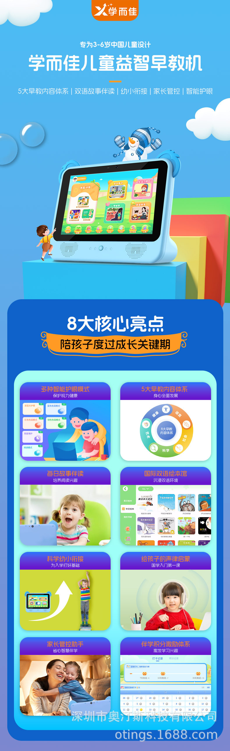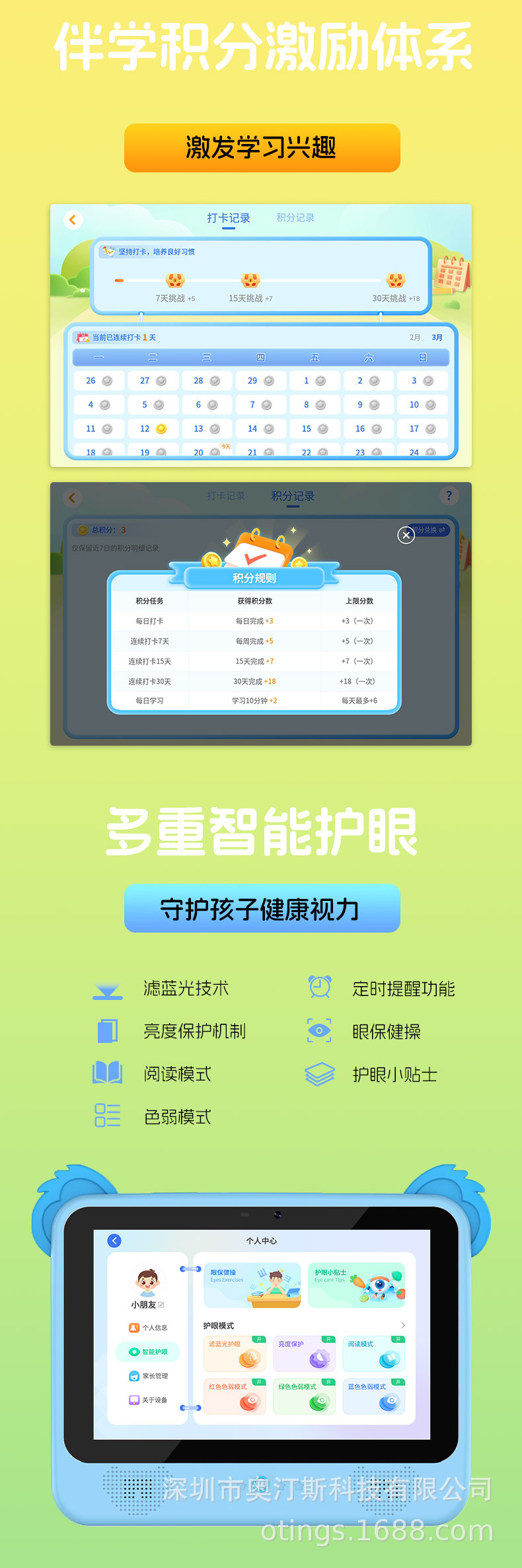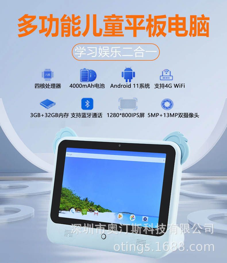 새로운 Android 11 스마트 어린이 태블릿 학습 컴퓨터 고화질 화면 듀얼 카메라 낙하 방지 학습 태블릿스토어 가기