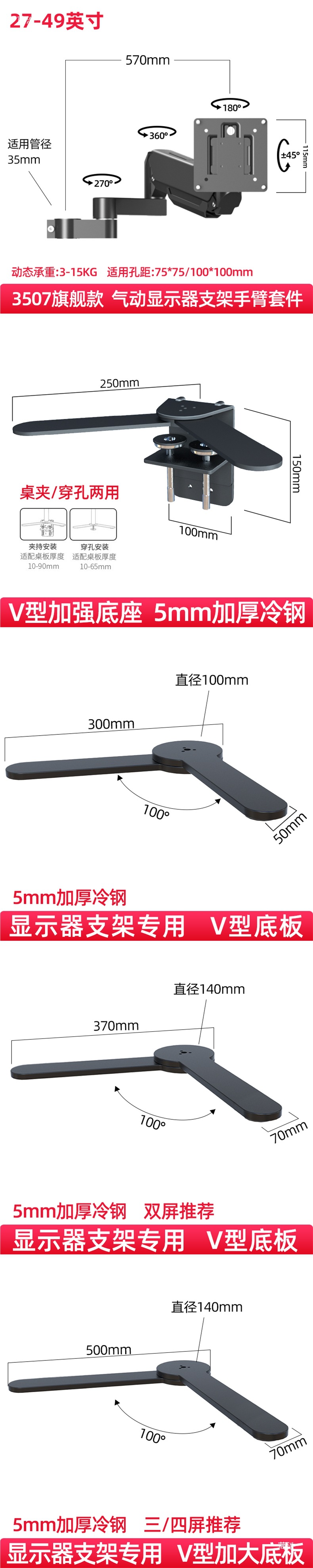 • 3507 공압 스탠드오프 암( 14-49inch )