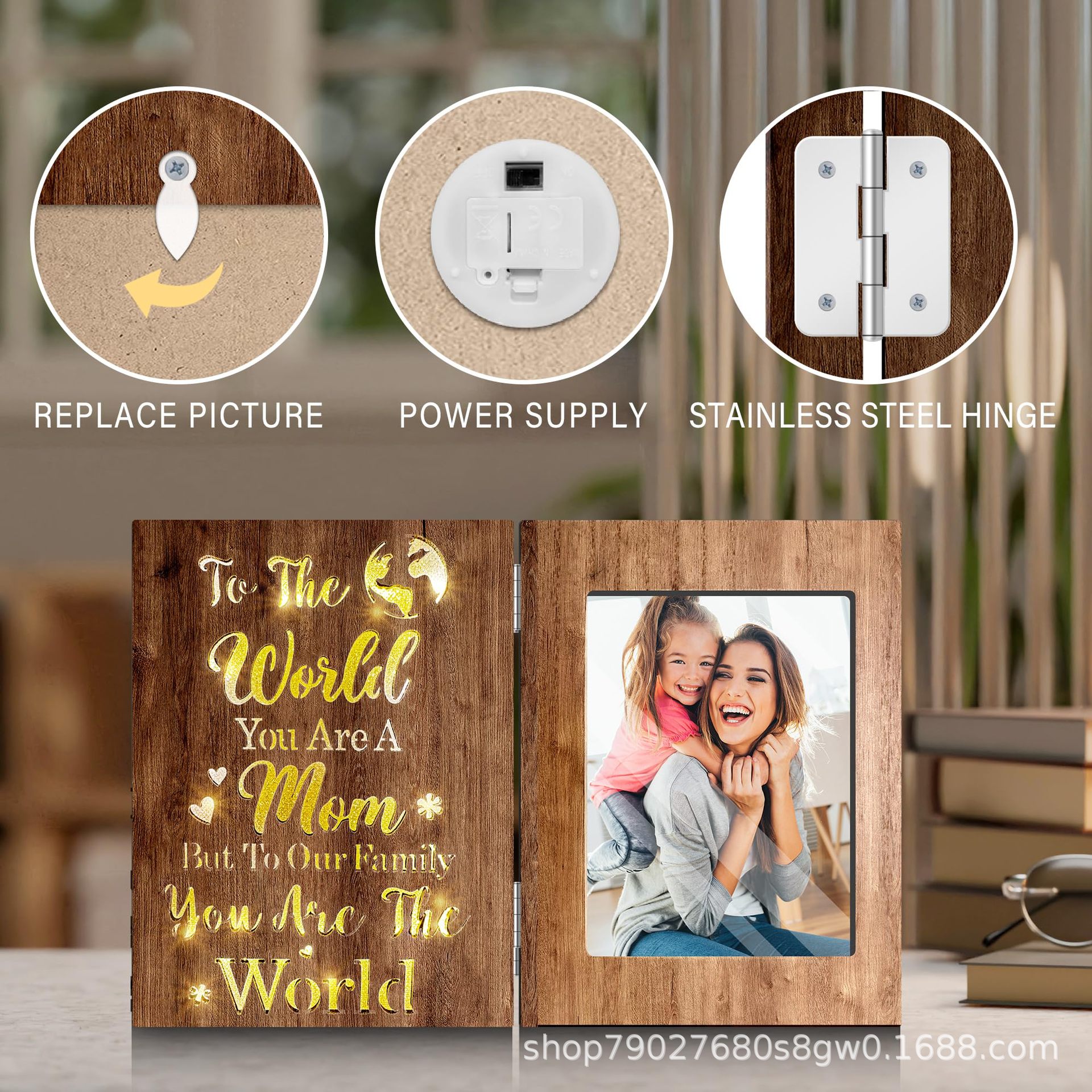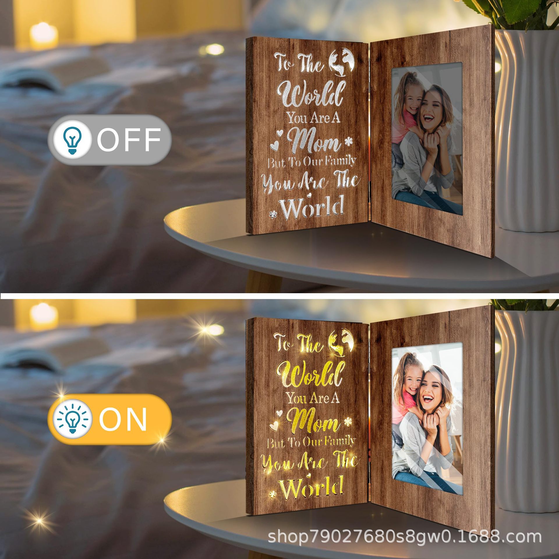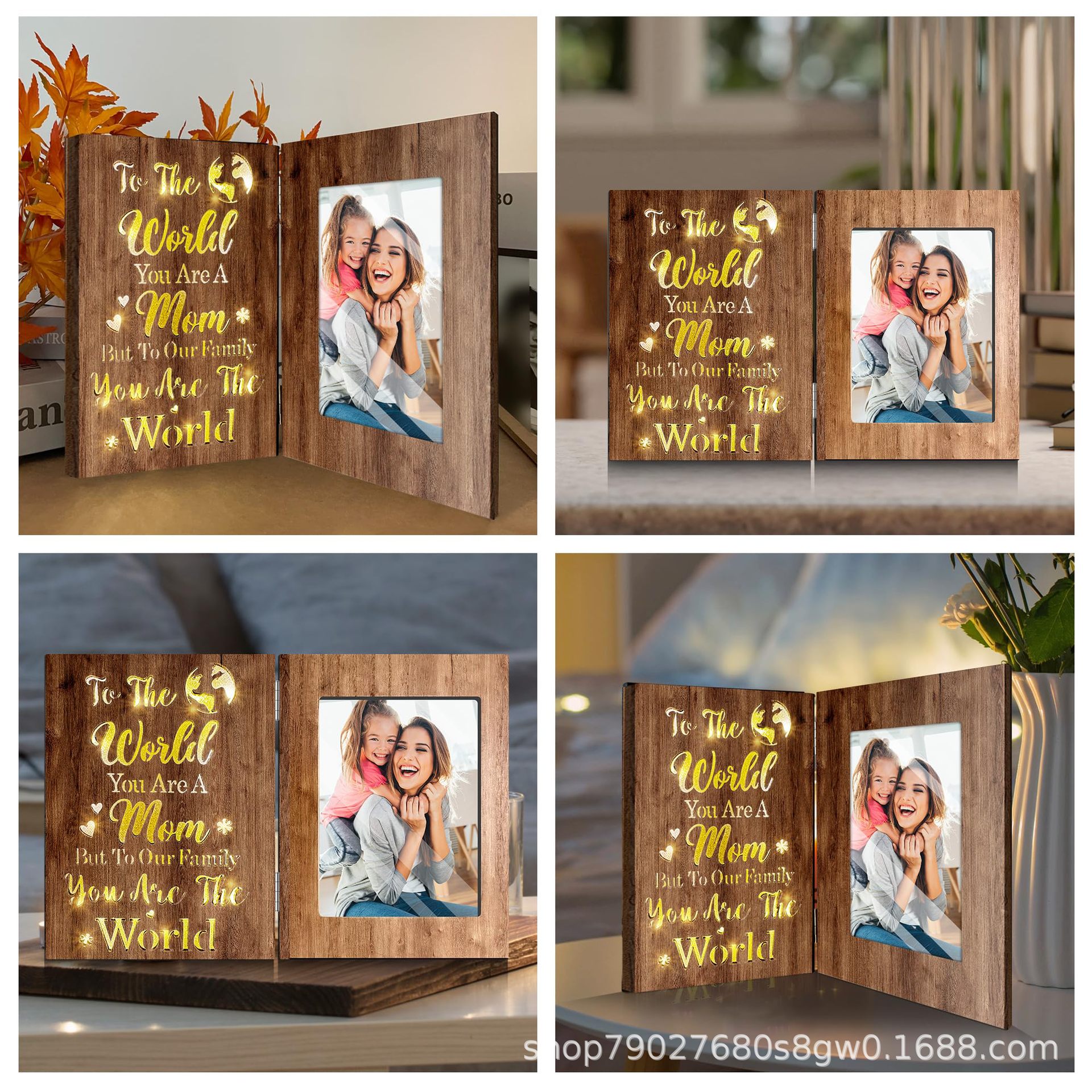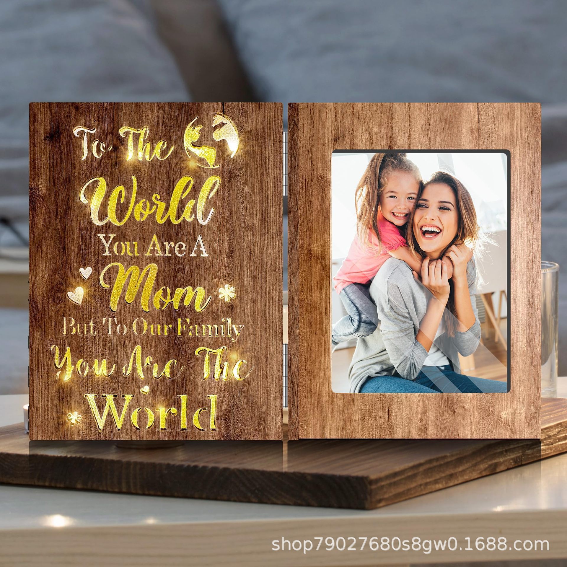 나무 접이식 빛나는 사진 프레임 휴일 선물 장식품 장식 사진 프레임 어머니와 딸 사진 클립 장식 테이블 사진 프레임스토어 가기