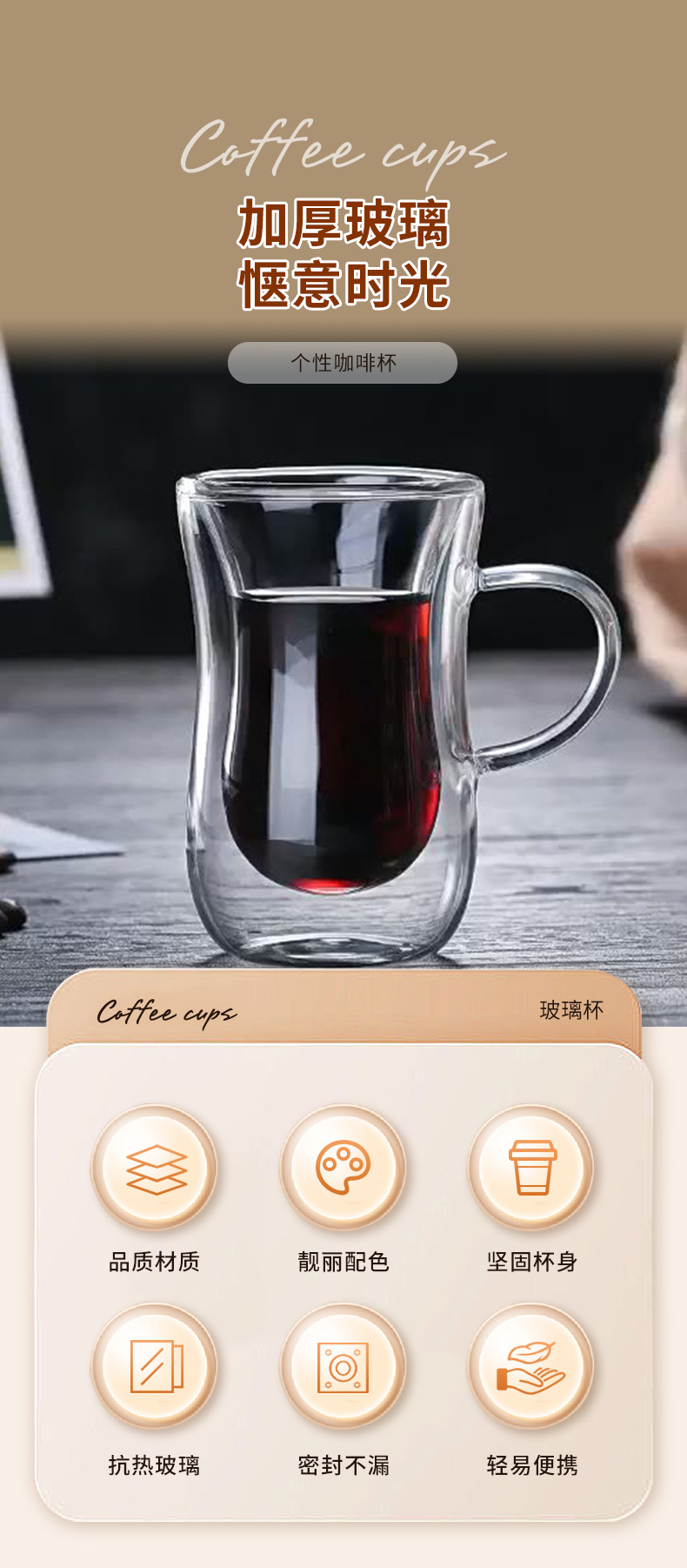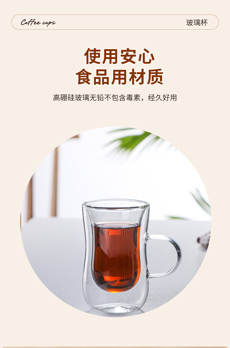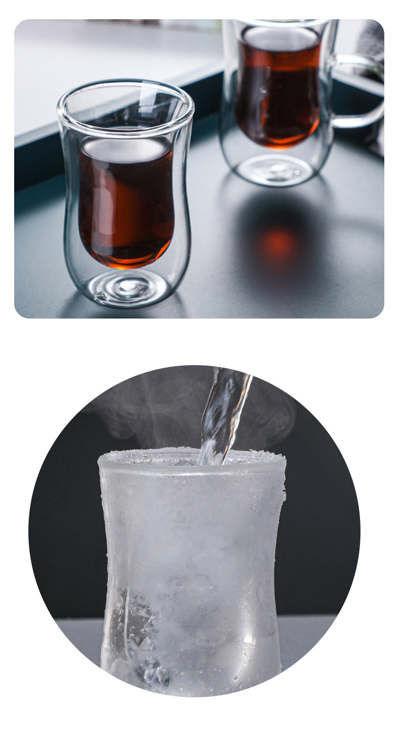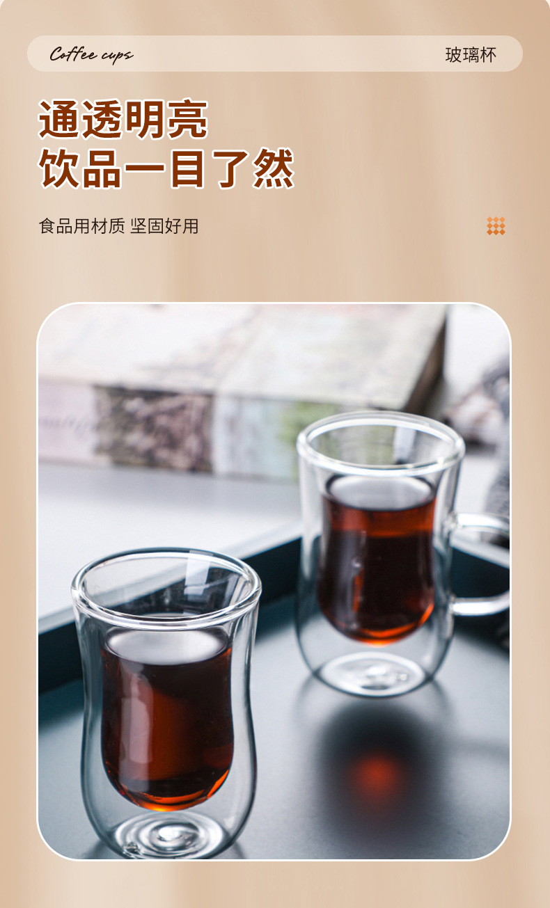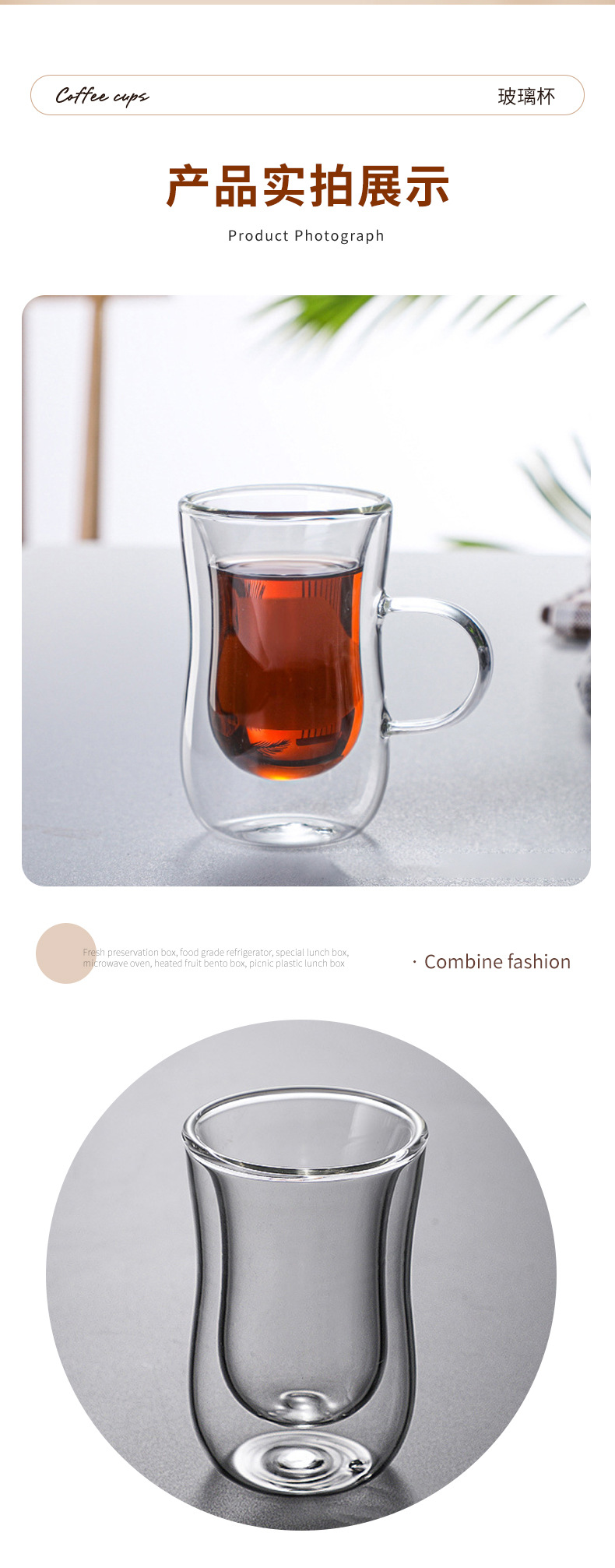 창의적인 이중층 유리 커피 컵, 마시는 차 컵, 가정용 투명 꽃 차 컵, 손잡이가 있는 주스 컵