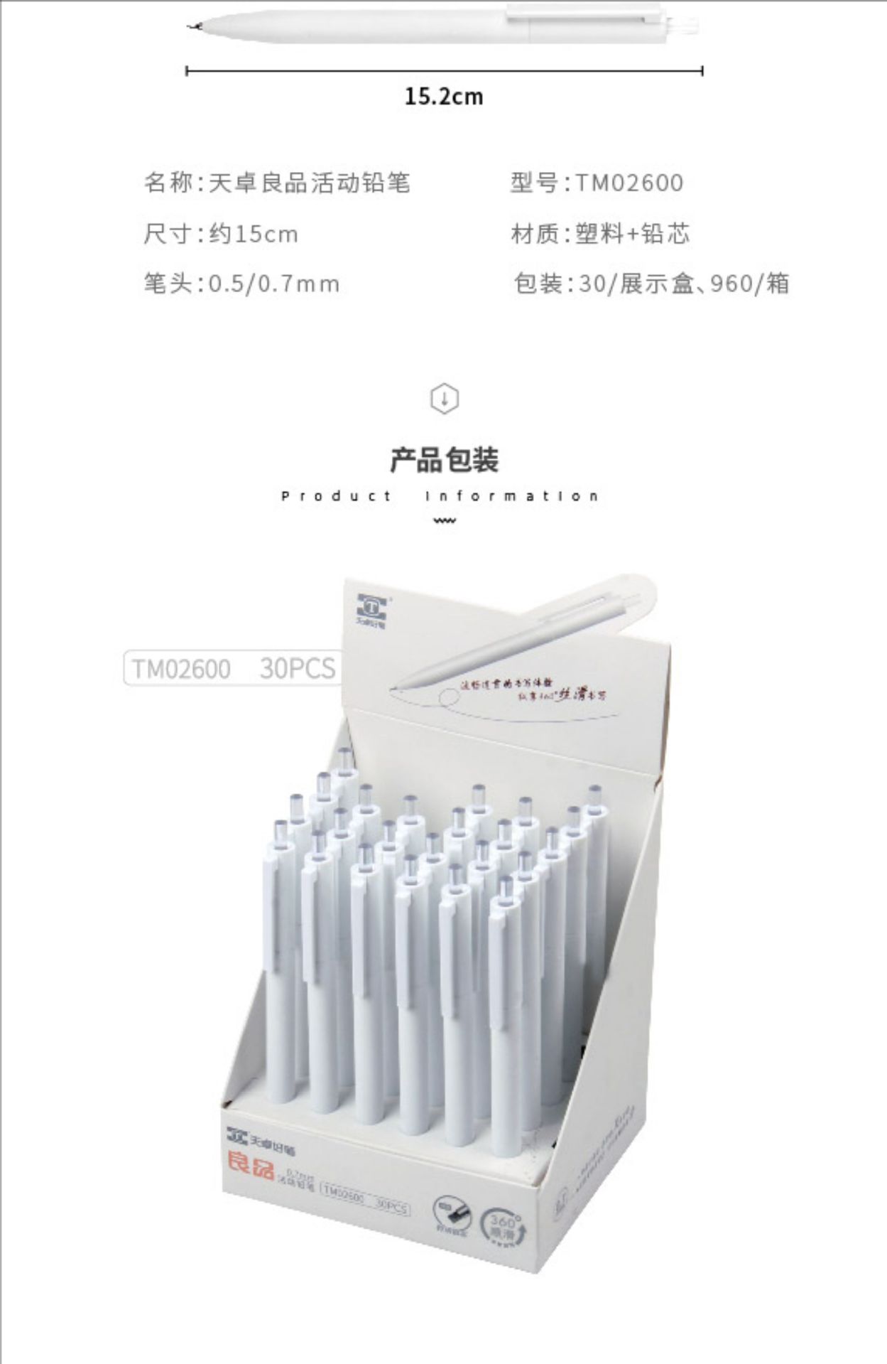Tianzhuo TM02600 샤프트 연필 자동 펜 0.5mm 무인쇄 스타일 심플 모델 0.7mm 푸시 연필스토어 가기