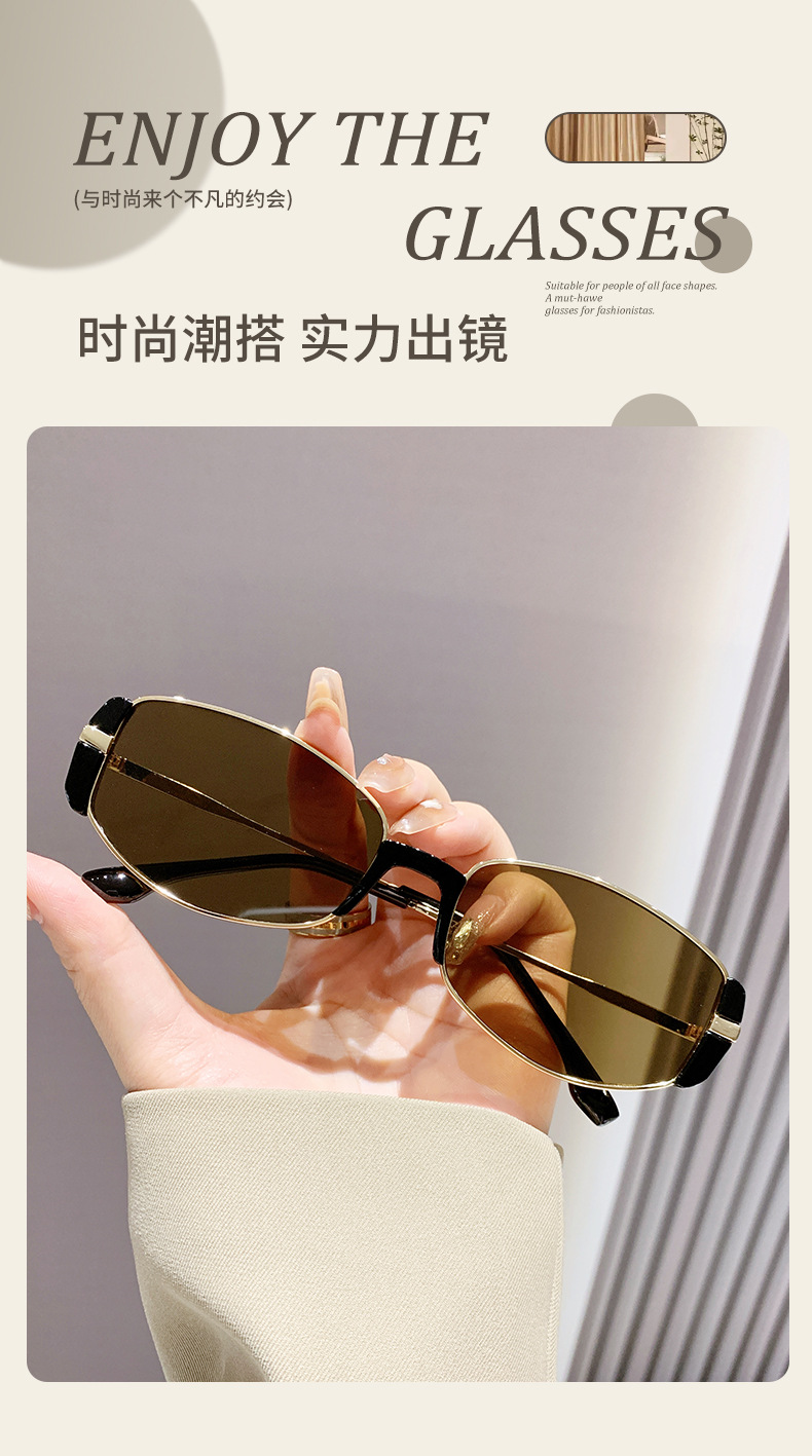 2026년 신형 모던 레트로 고급스러운 갈색 좁은 프레임 작은 갈색 안경, 둥근 얼굴을 위한 슬림한 캣아이 선글라스 여성용