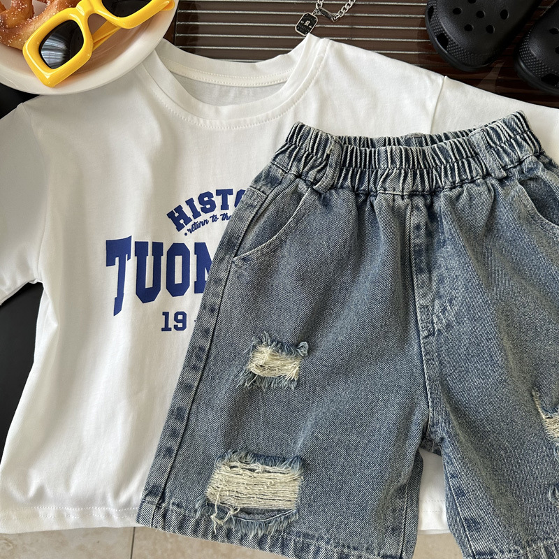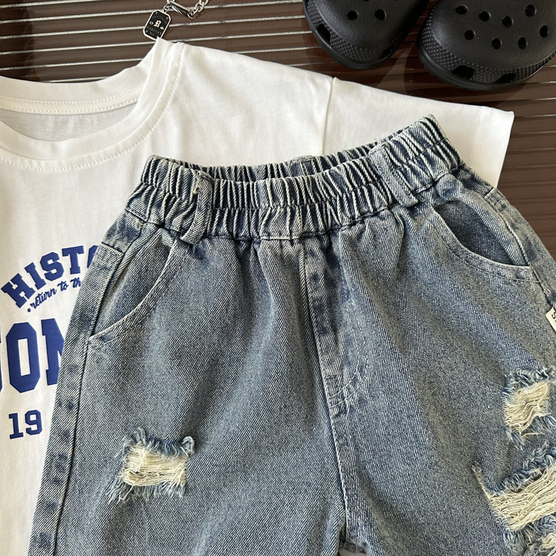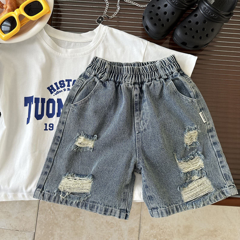 아동 여름 찢어진 데님 반바지 2025 여름 신작 소년 패션 청바지 루즈한 5부 바지스토어 가기