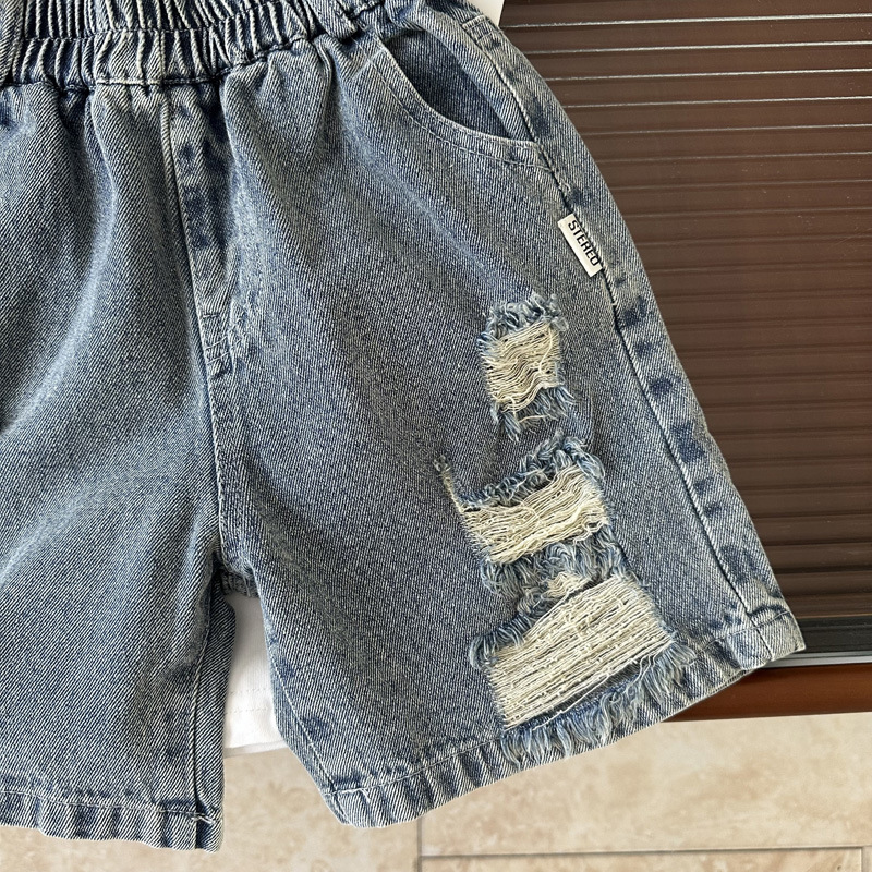 아동 여름 찢어진 데님 반바지 2025 여름 신작 소년 패션 청바지 루즈한 5부 바지