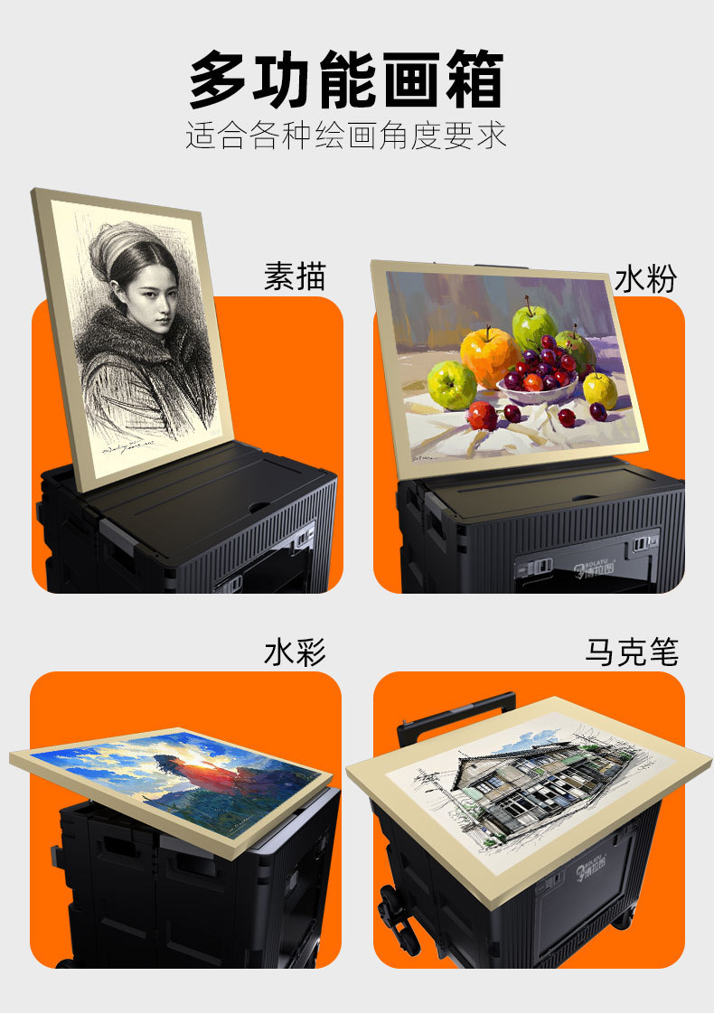 미술 학생 미술 시험 접이식 그림 상자 트롤리 야외 스케치 특수 그림 카트 드로잉 보드 랙 대용량 저장 그림 상자스토어 가기