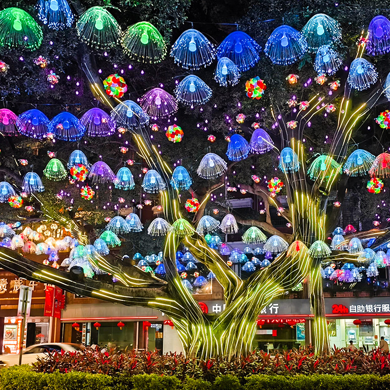 해파리 조명 광섬유 7색 변색 인터넷 인기 바 거리 장식 야외 조명 문화 관광 경관 분위기 나무 장식 조명
