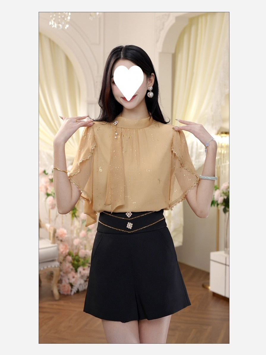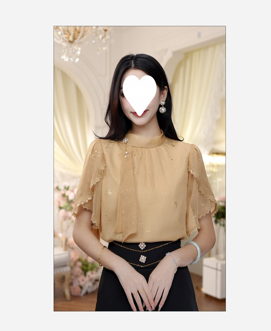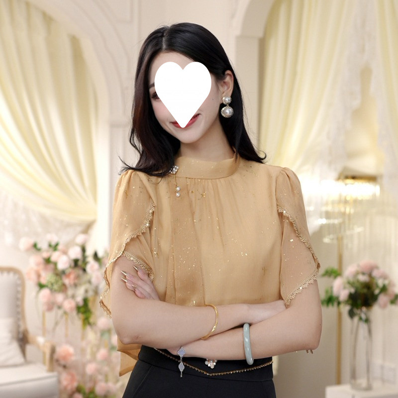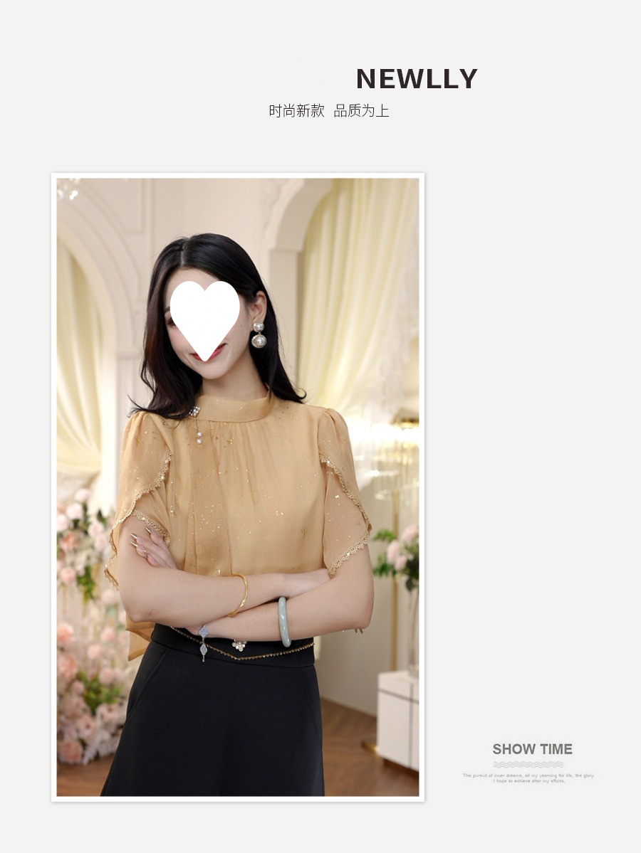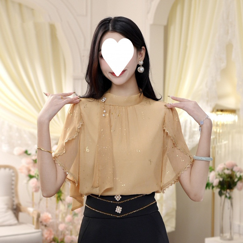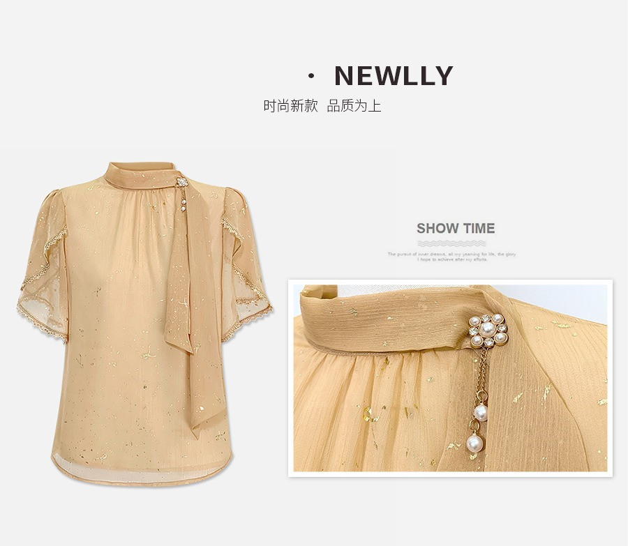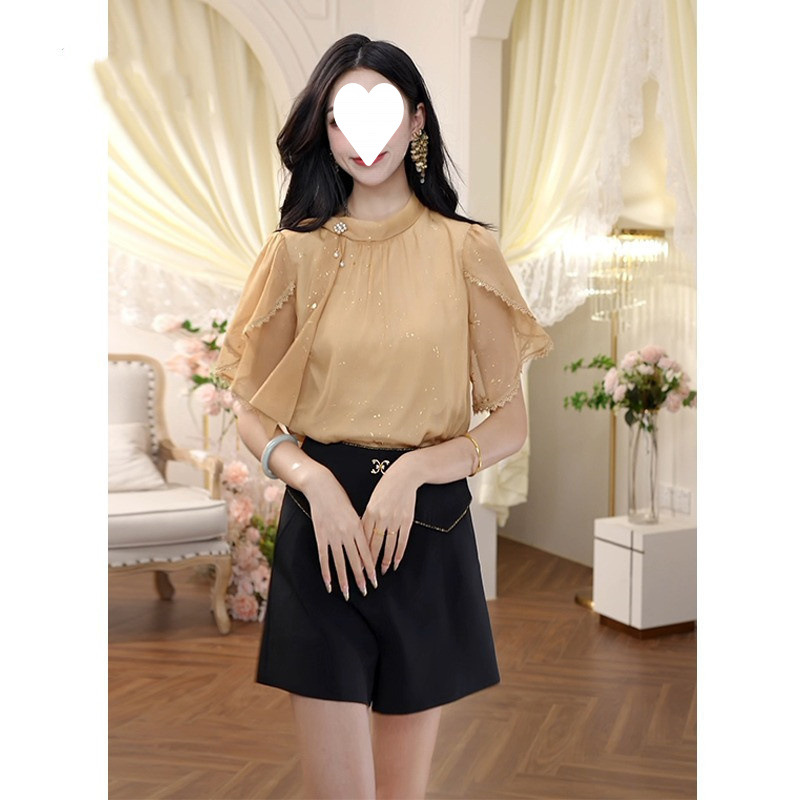H1J 샴페인 컬러 궁전 스타일 쉬폰 셔츠 2025 여름 신작 여성 라이트 럭셔리 드레스 디자인스토어 가기