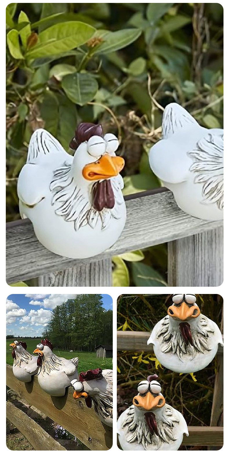 국경을 넘는 목가적 인 닭 장식품 디자인 울타리 안뜰 창조적 인 장식품 정원 동화 생활 큰 눈 닭스토어 가기