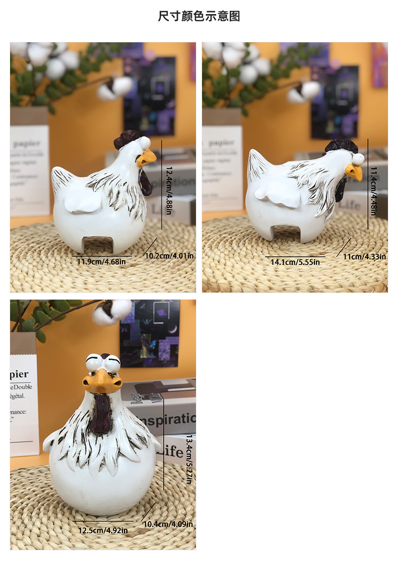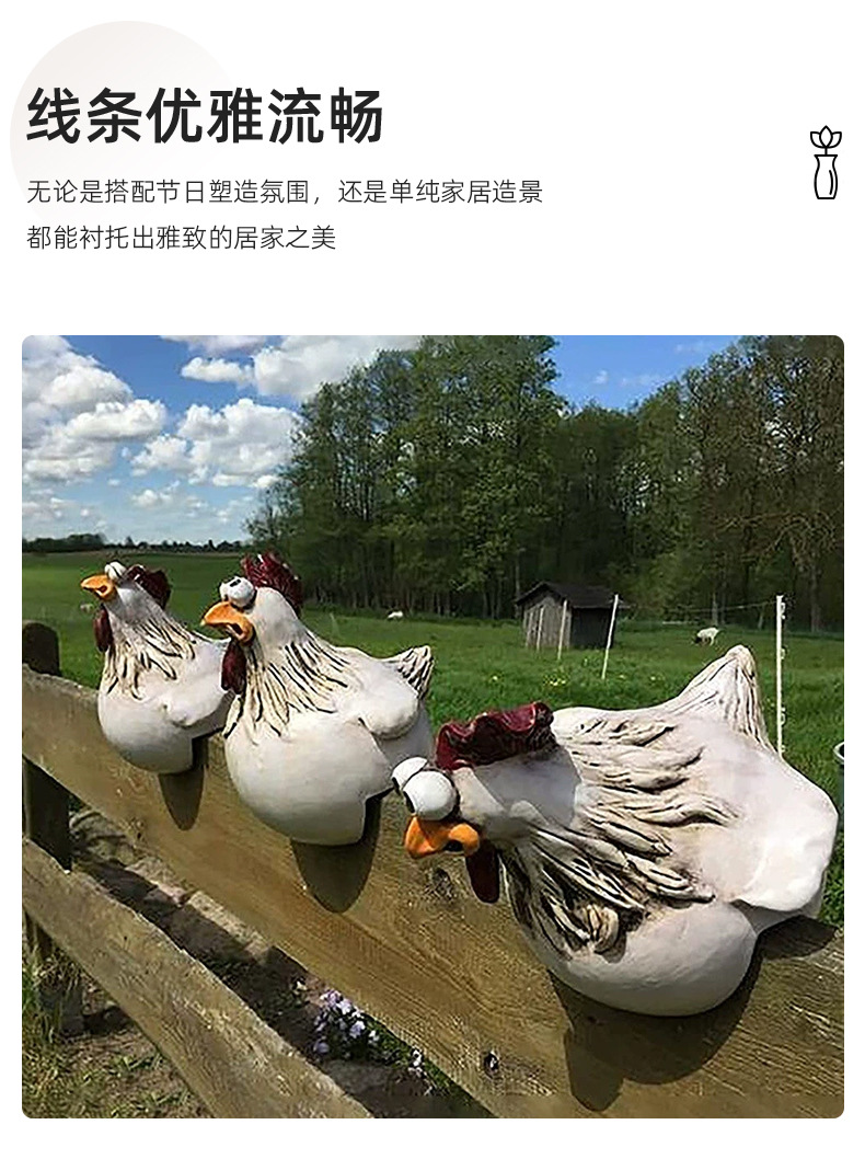 국경을 넘는 목가적 인 닭 장식품 디자인 울타리 안뜰 창조적 인 장식품 정원 동화 생활 큰 눈 닭