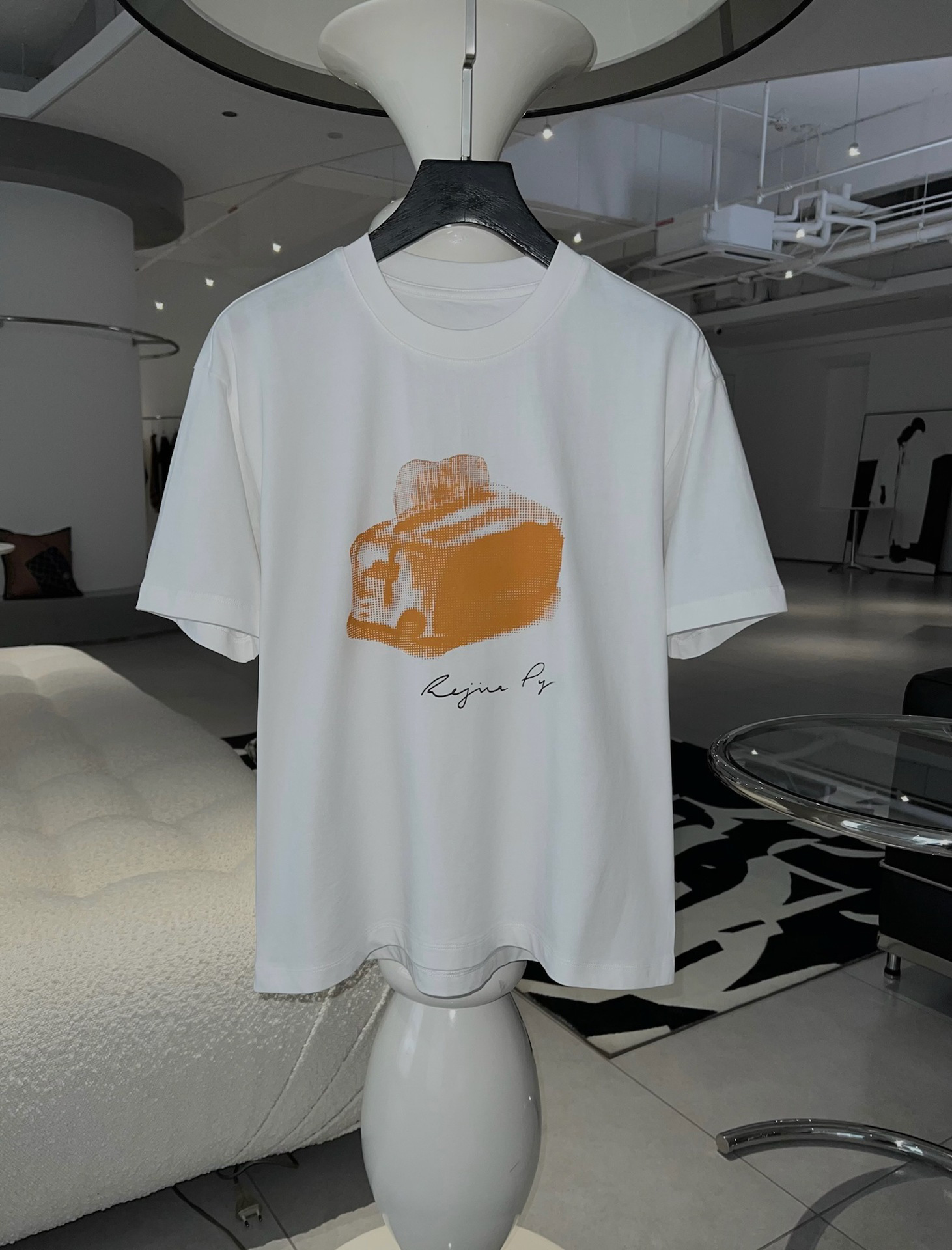 25 봄 여름 신작 RP 콤비네이션 코튼 시로 스파이닝 재미있는 메쉬 프린트 토스터 라운드 넥 루즈 반팔 티셔츠스토어 가기