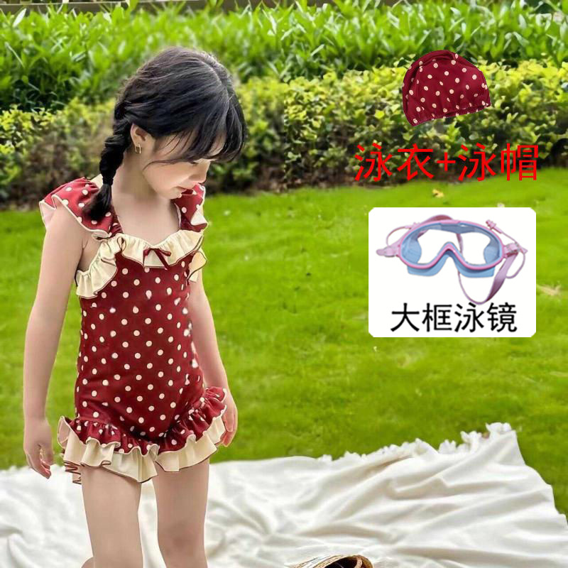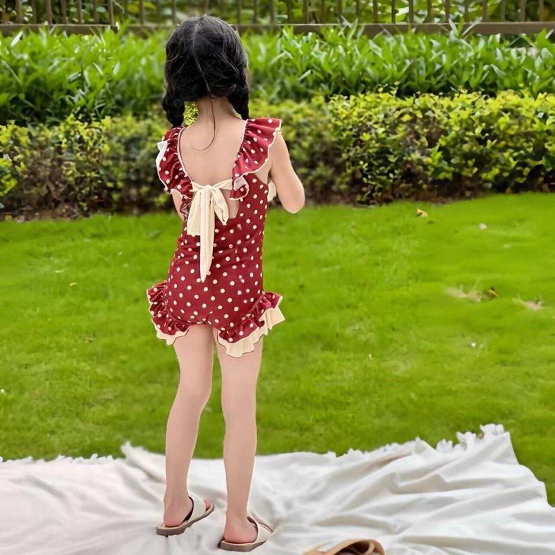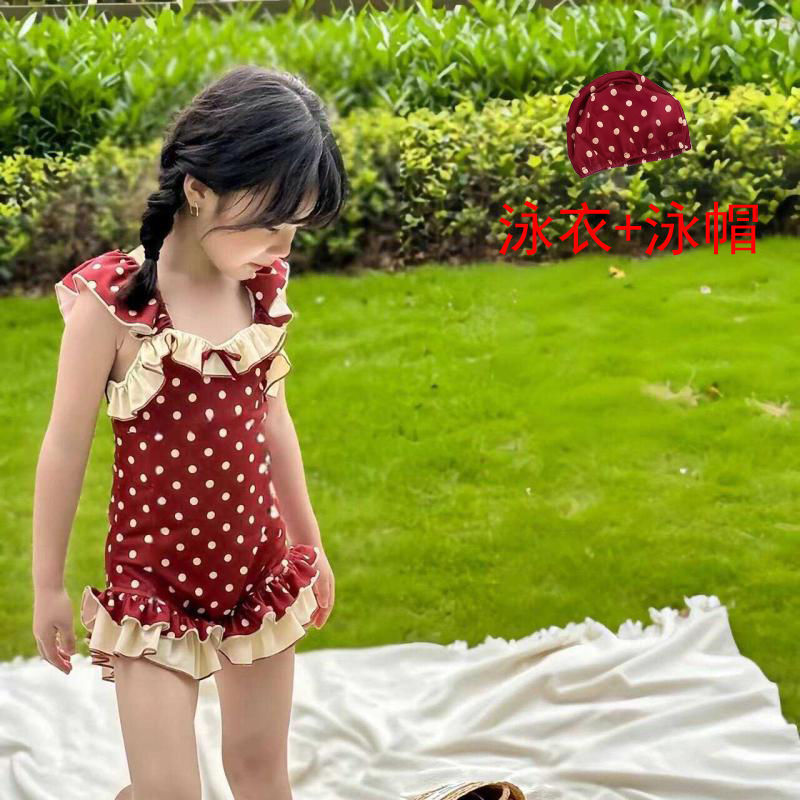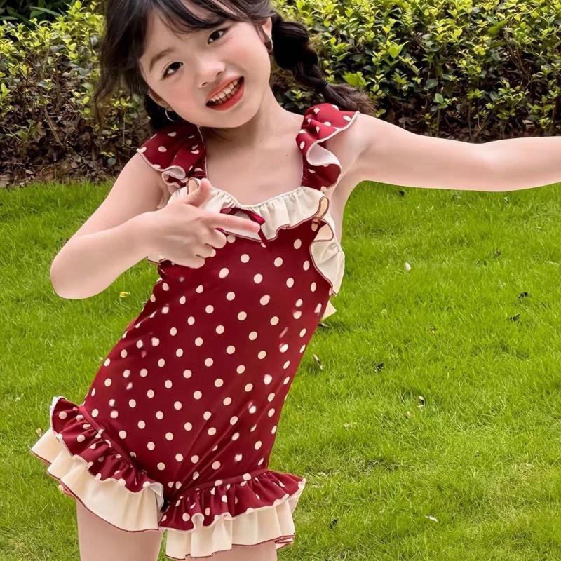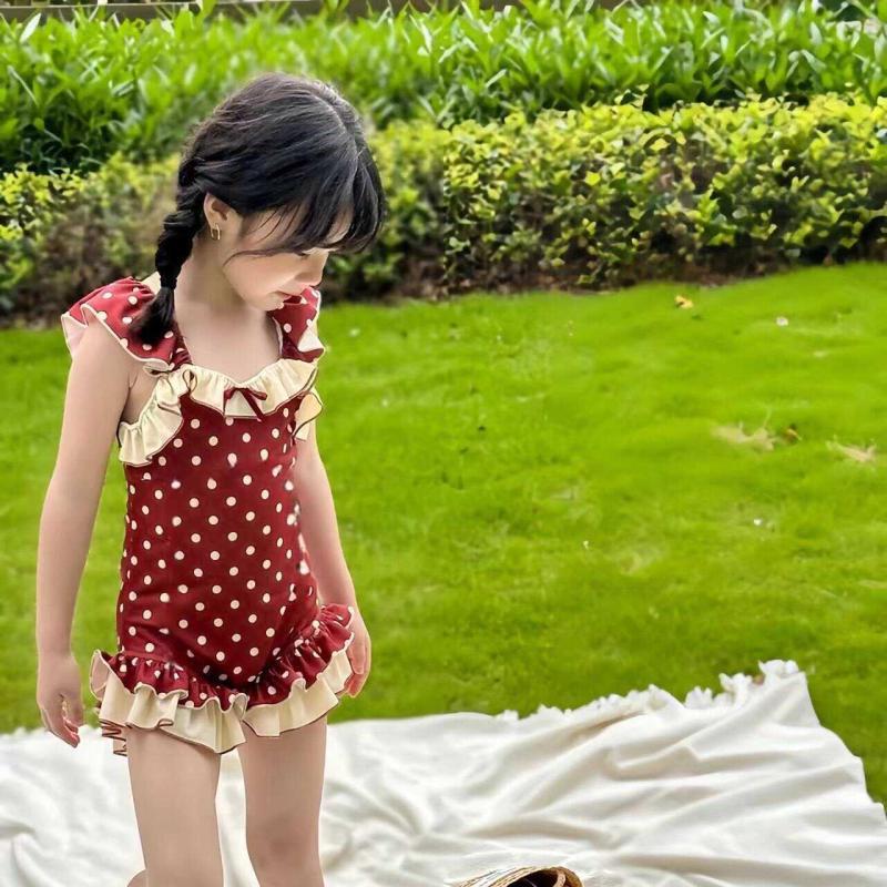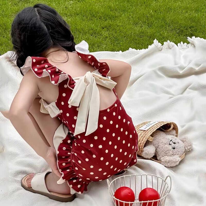 어린이 수영복 아기 소녀의 유행 한 조각 수영복 슬링 웨이브 도트 프랑스 스타일 뉴 비치 세트 여름 뉴