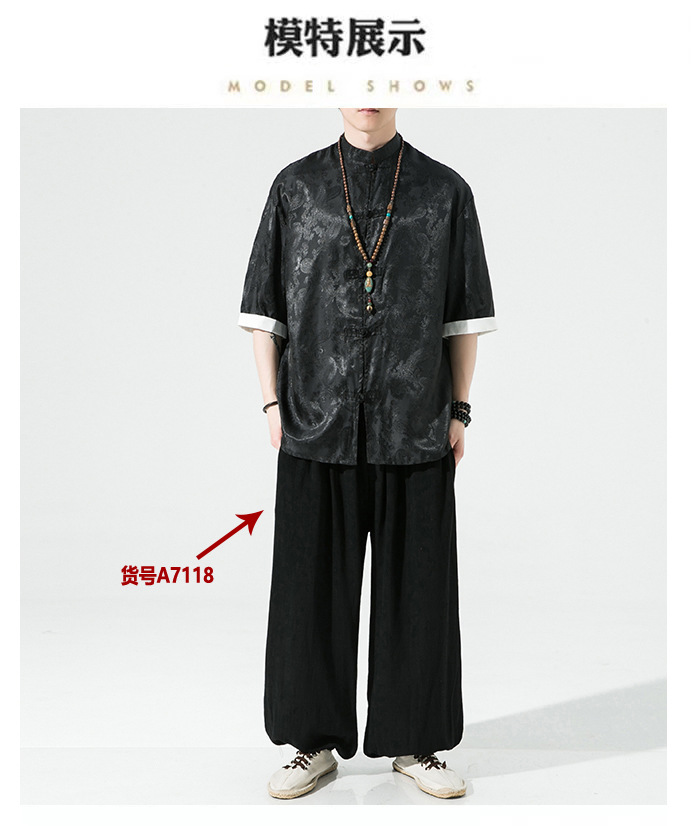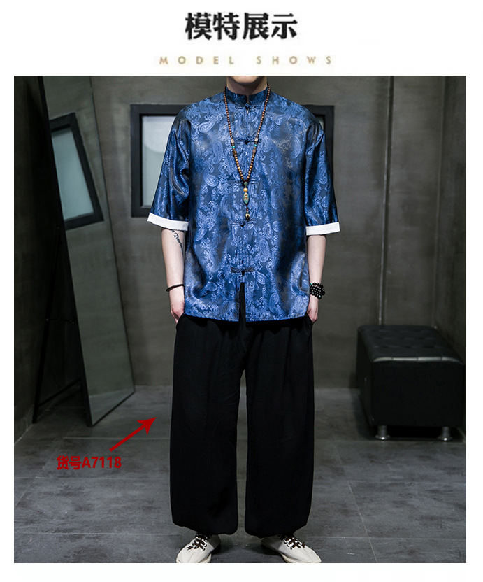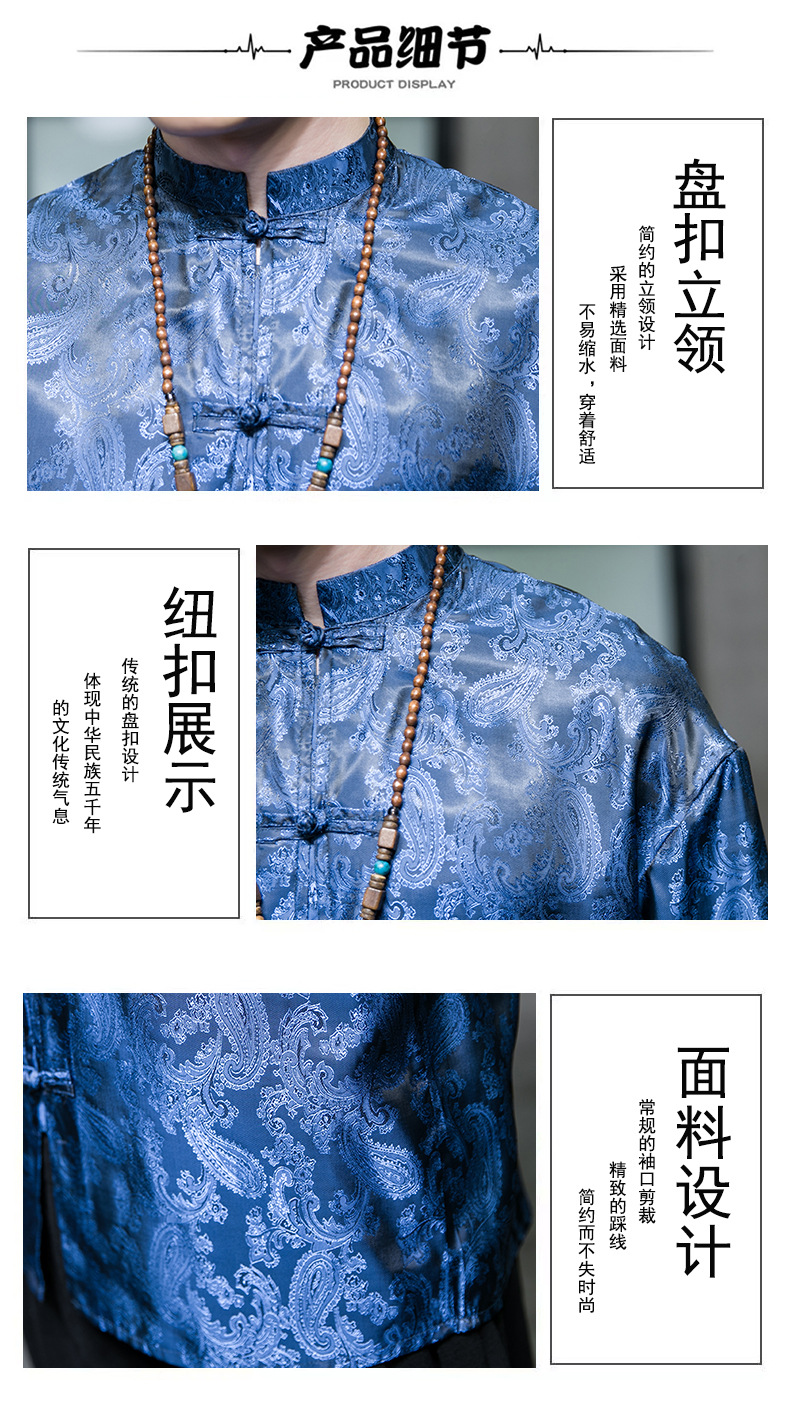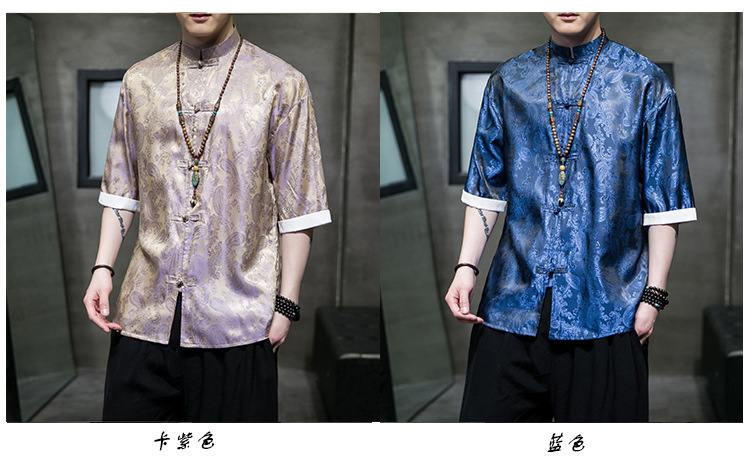 아이스 실크 당나라 정장 중국 스타일 여름 얇은 반팔 셔츠 남성 복고풍 느슨한 Hanfu 대형 5부 소매 셔츠스토어 가기