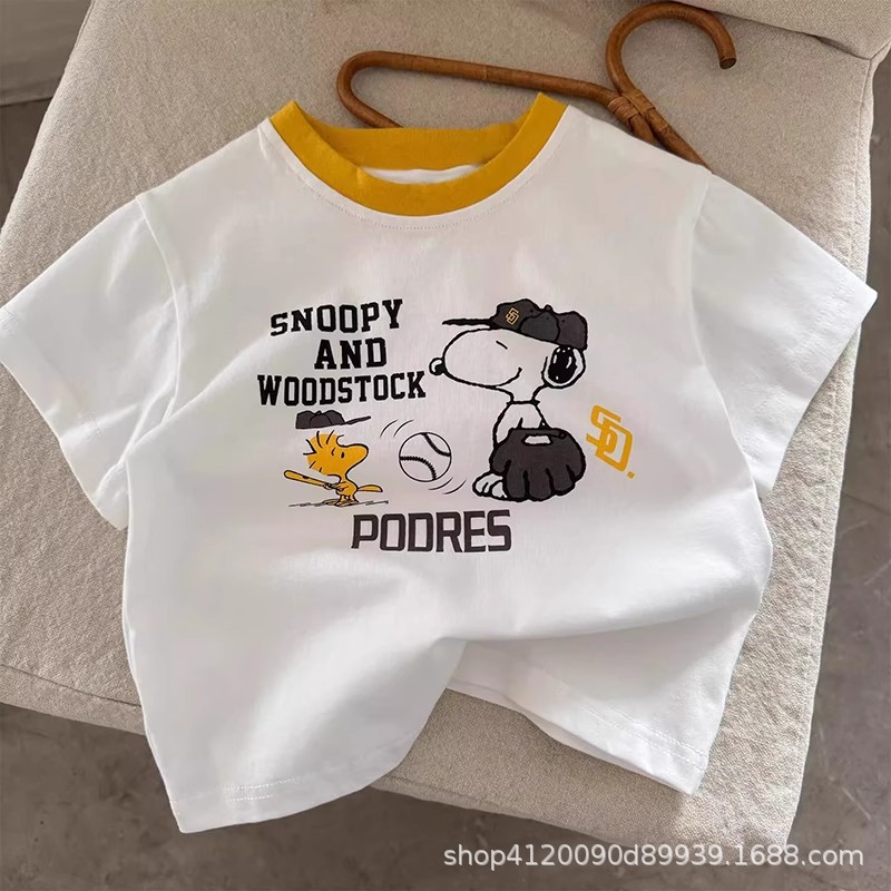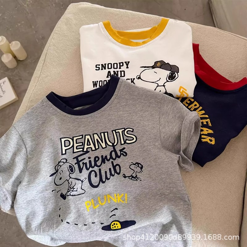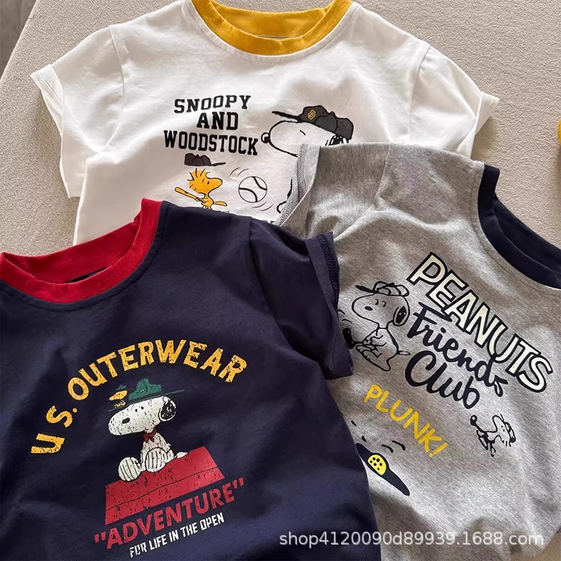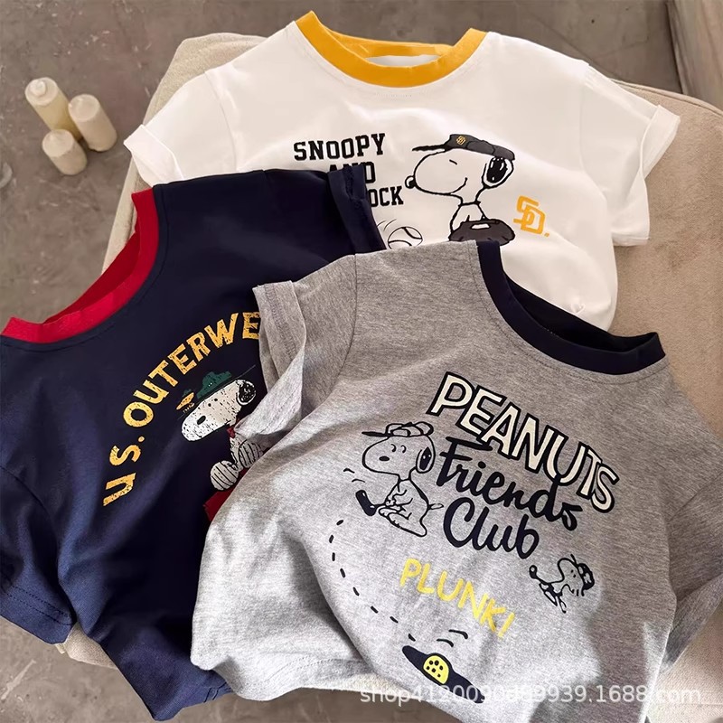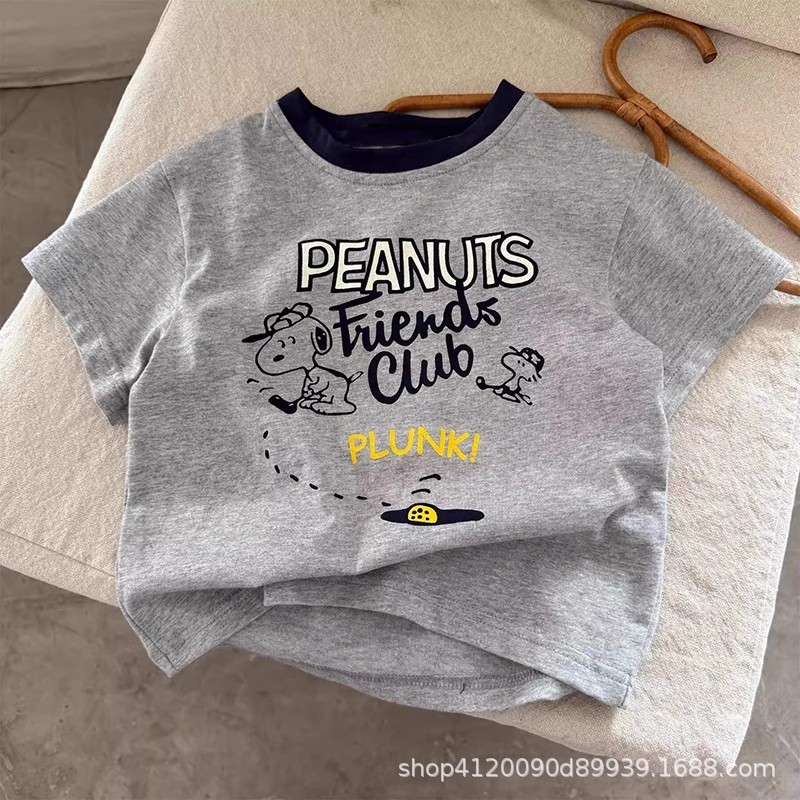 국경 간 순수 면화 어린이 만화 반팔 티셔츠 소년 여름 옷 아기상의 소녀 여름 아동 의류
