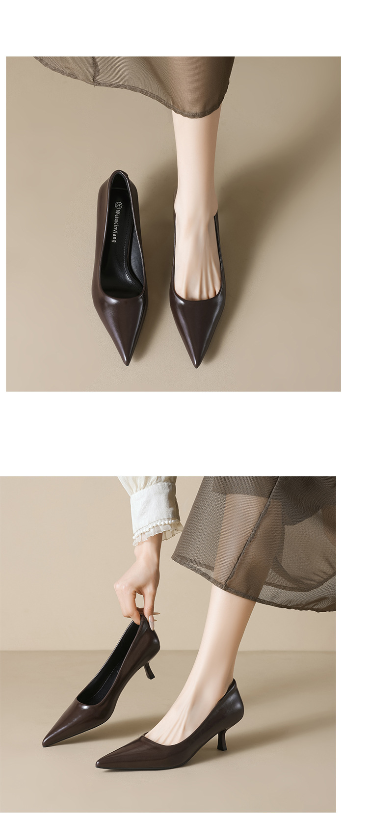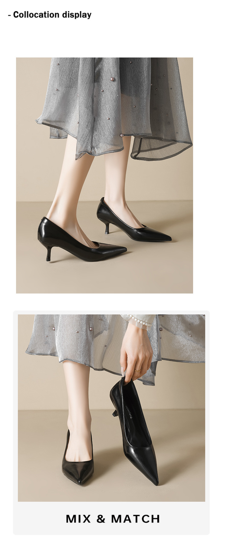 뾰족한 스틸레토 힐 여성의 봄과 여름 2025 새로운 간단한 얕은 입 싱글 레이어 신발 여성 통근 지치지 않는 발 플러스 사이즈 여성 신발