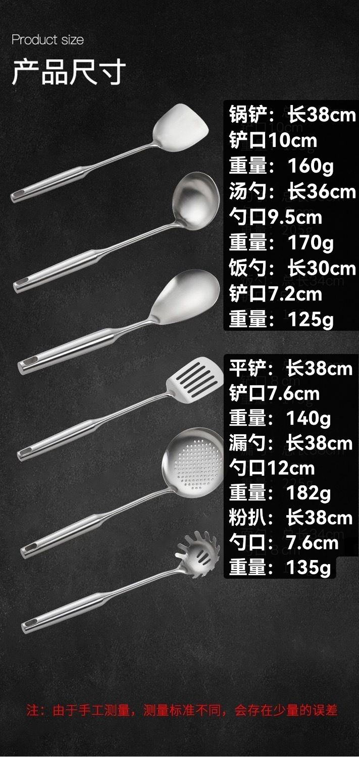 스테인레스 스틸 주방 용품, 두꺼운 미끄럼 방지 주방 도구, 가정용 주걱, 소쿠리, 국자, 프라이팬 주걱, 국수 요리 도구