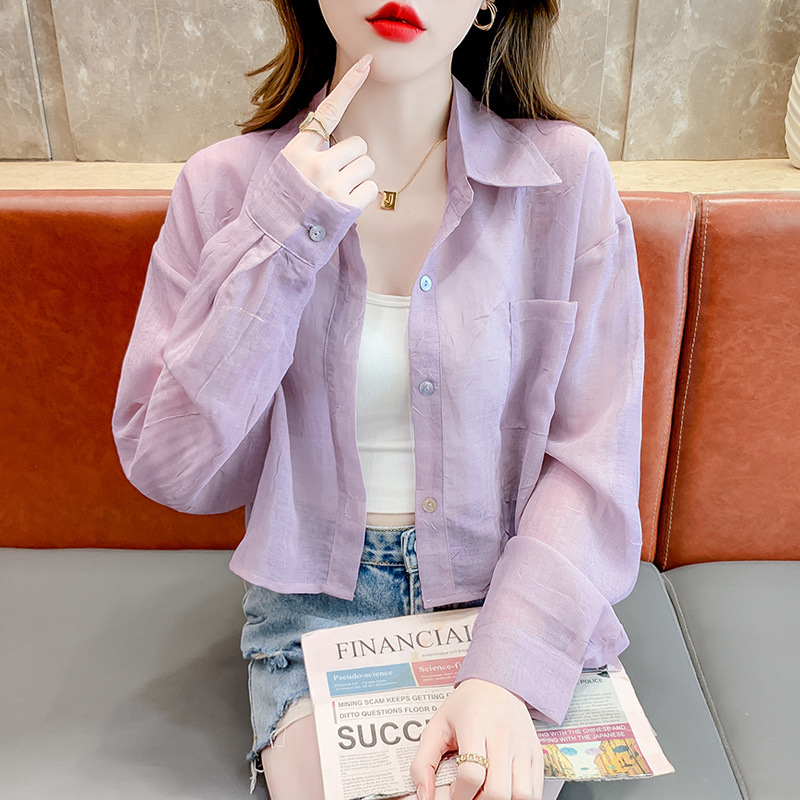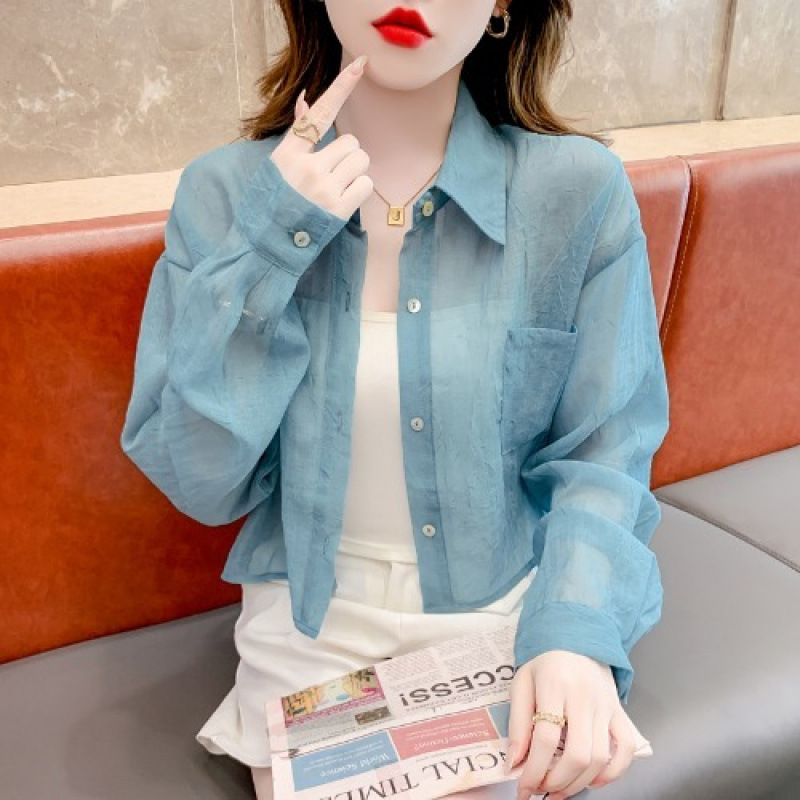 드레싱 여성 2025 새로운 여름 얇은 짧은 셔츠 재킷 유행 긴 소매 쉬폰 탑스토어 가기