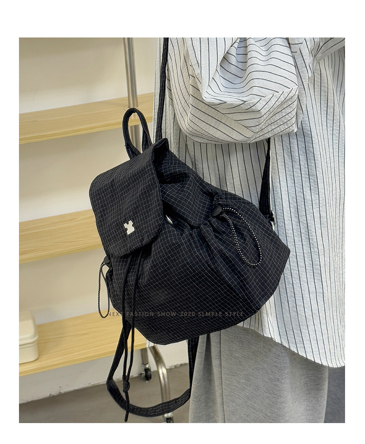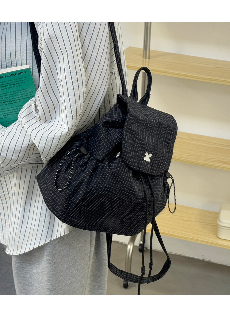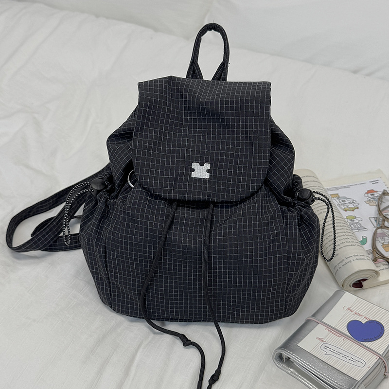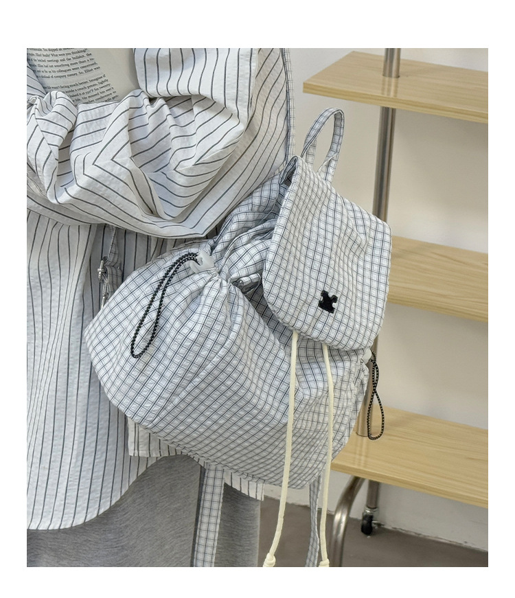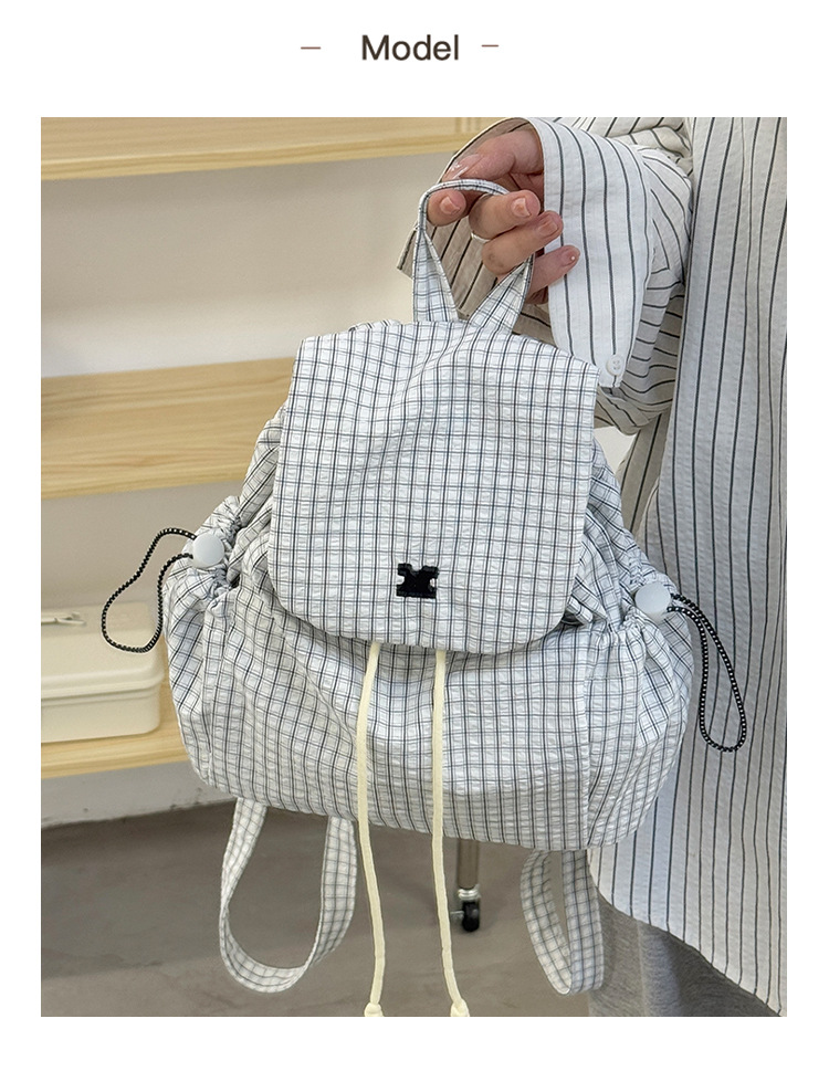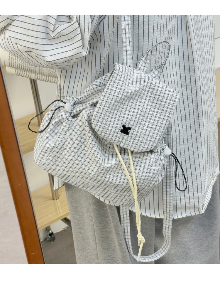 캔버스 격자 무늬 가방 여성 2025 여름 새 여성 가방 한국 배낭 통근 캐주얼 작은 배낭 어깨 가방