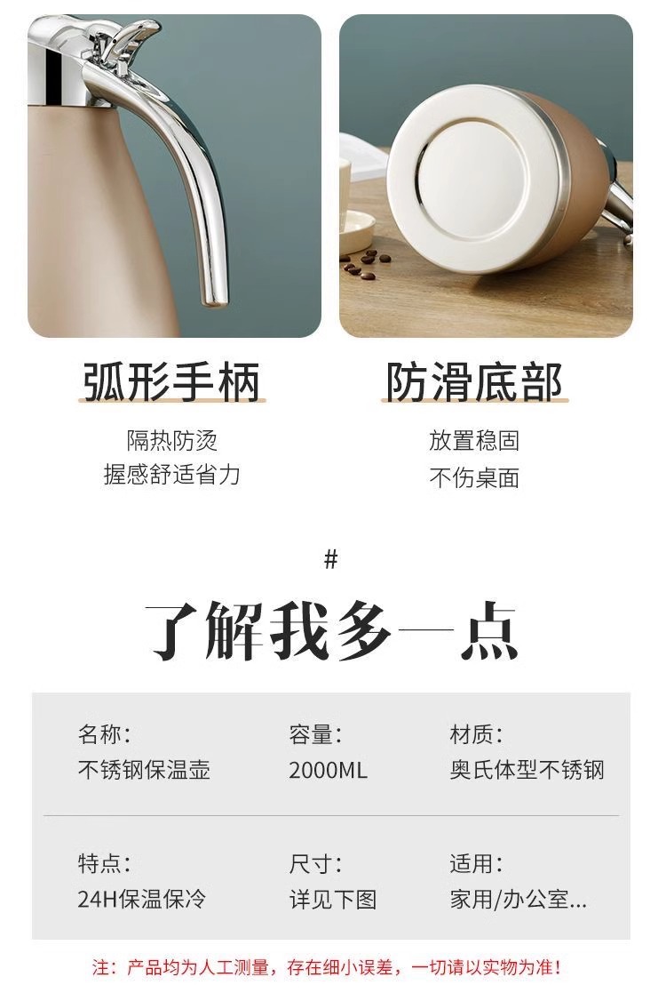 • 2.0리터 진공 단열 주전자(이중층, 약 24시간 보온)