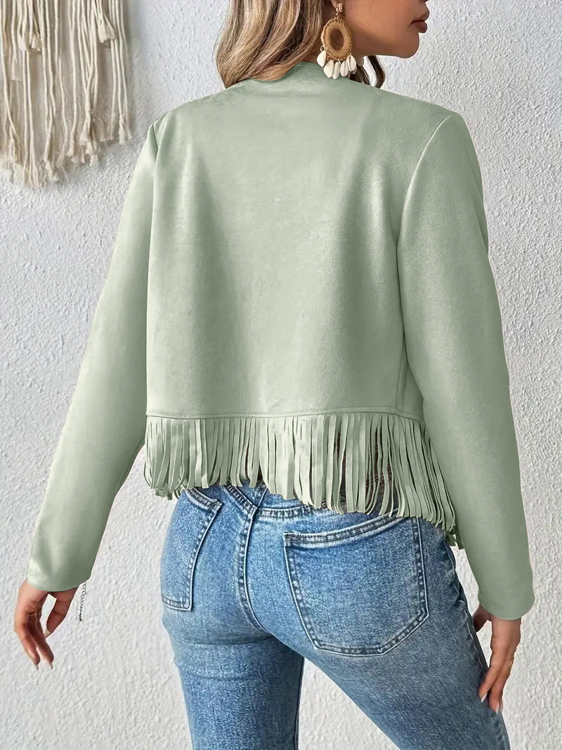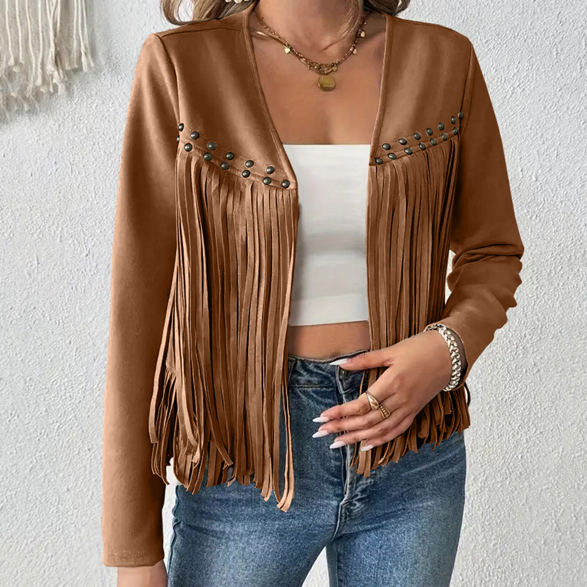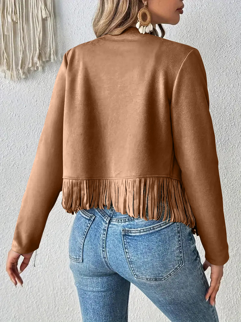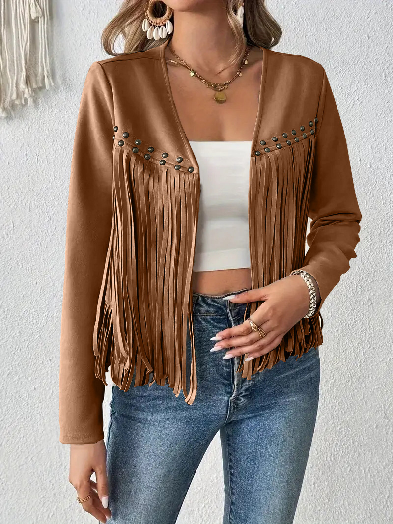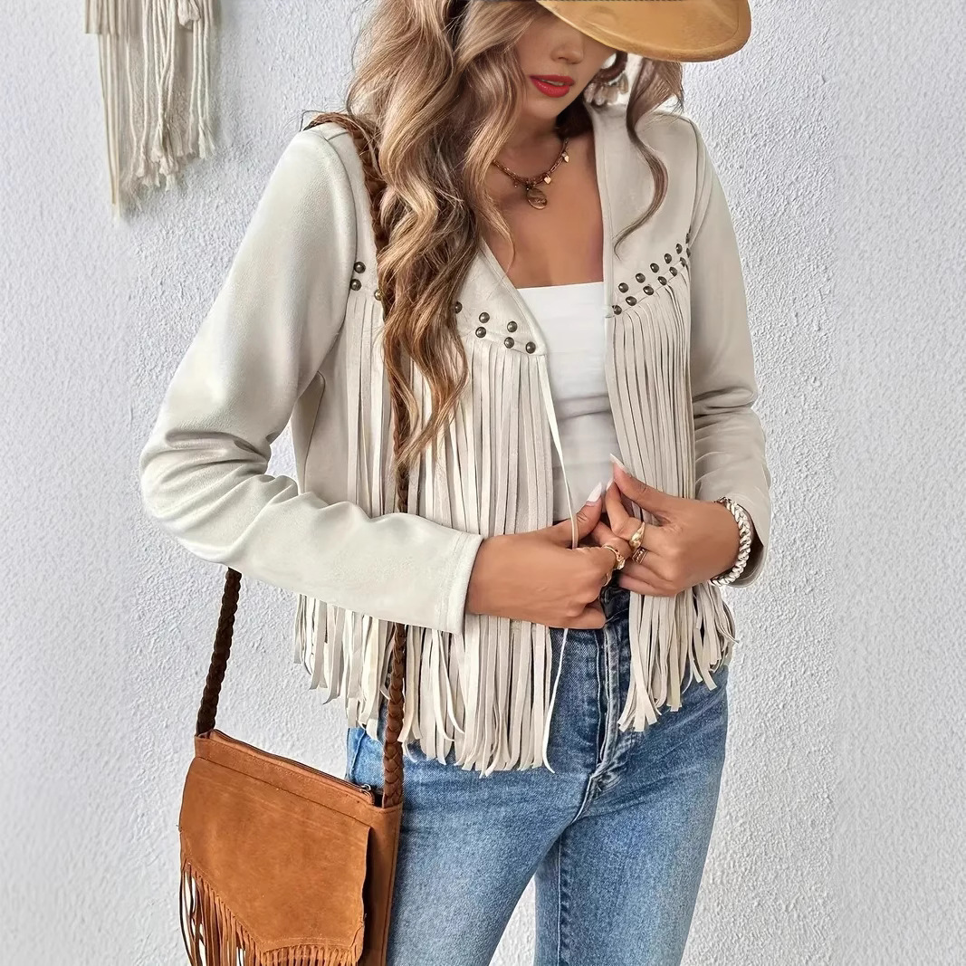 2025 유럽과 미국의 아마존 새로운 멀티 네일 태슬 재킷 여성 스웨이드 버클 프리 재킷 조끼 재킷 카디건