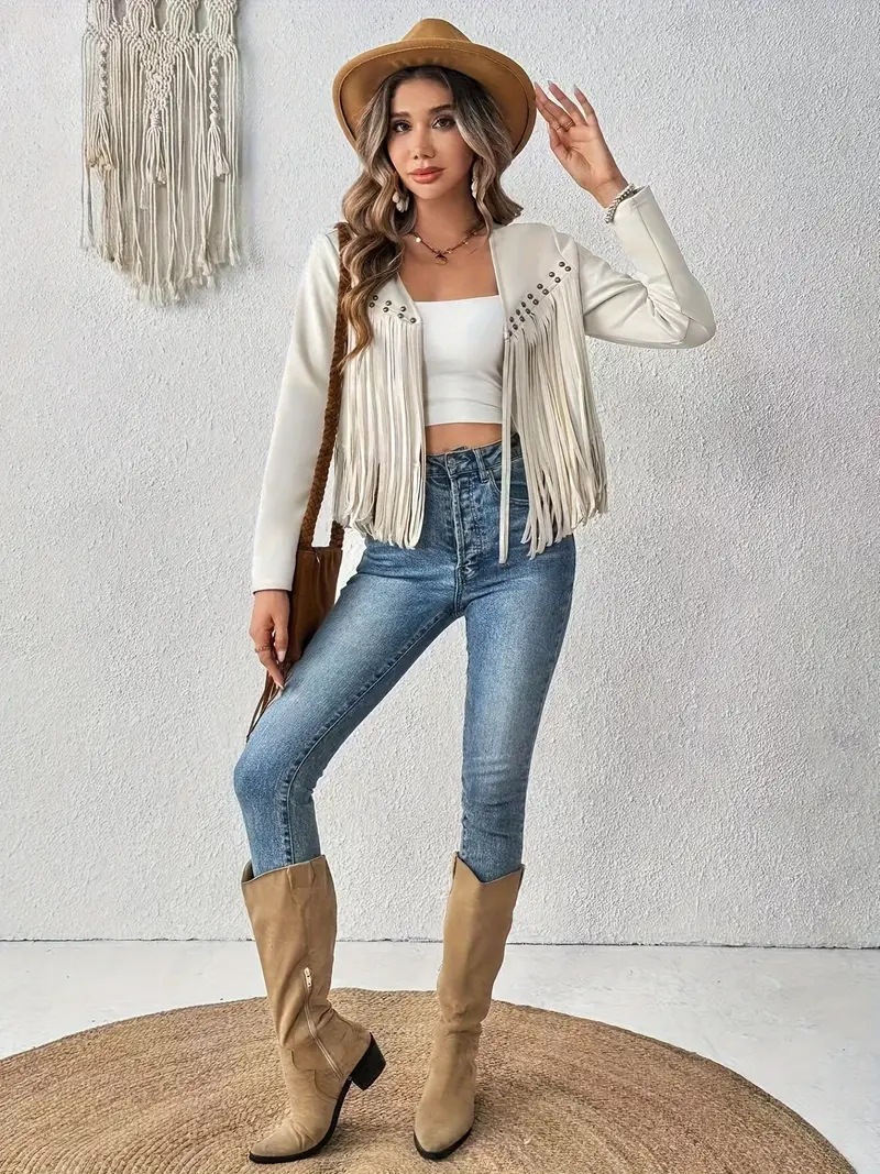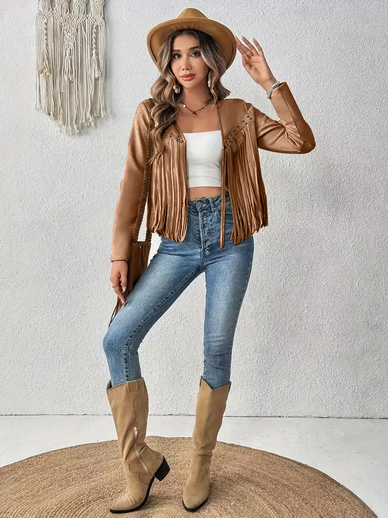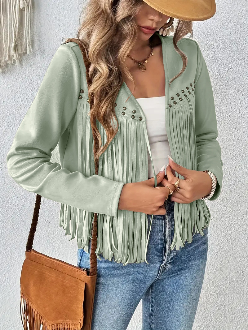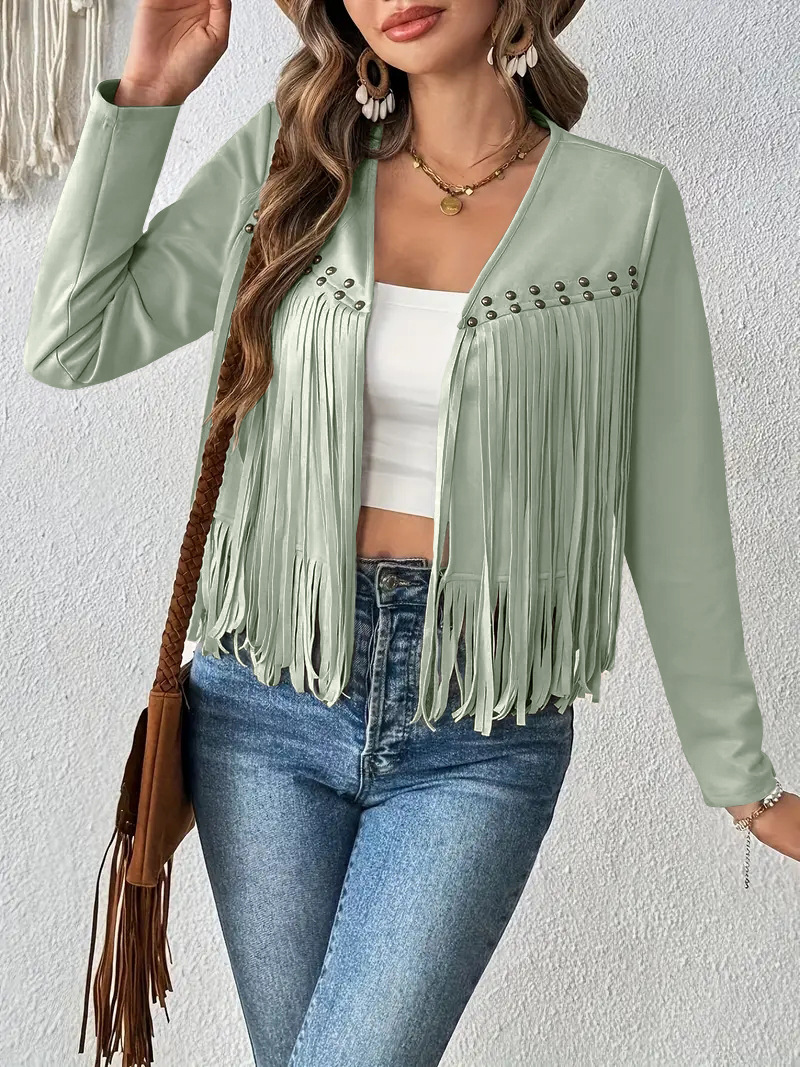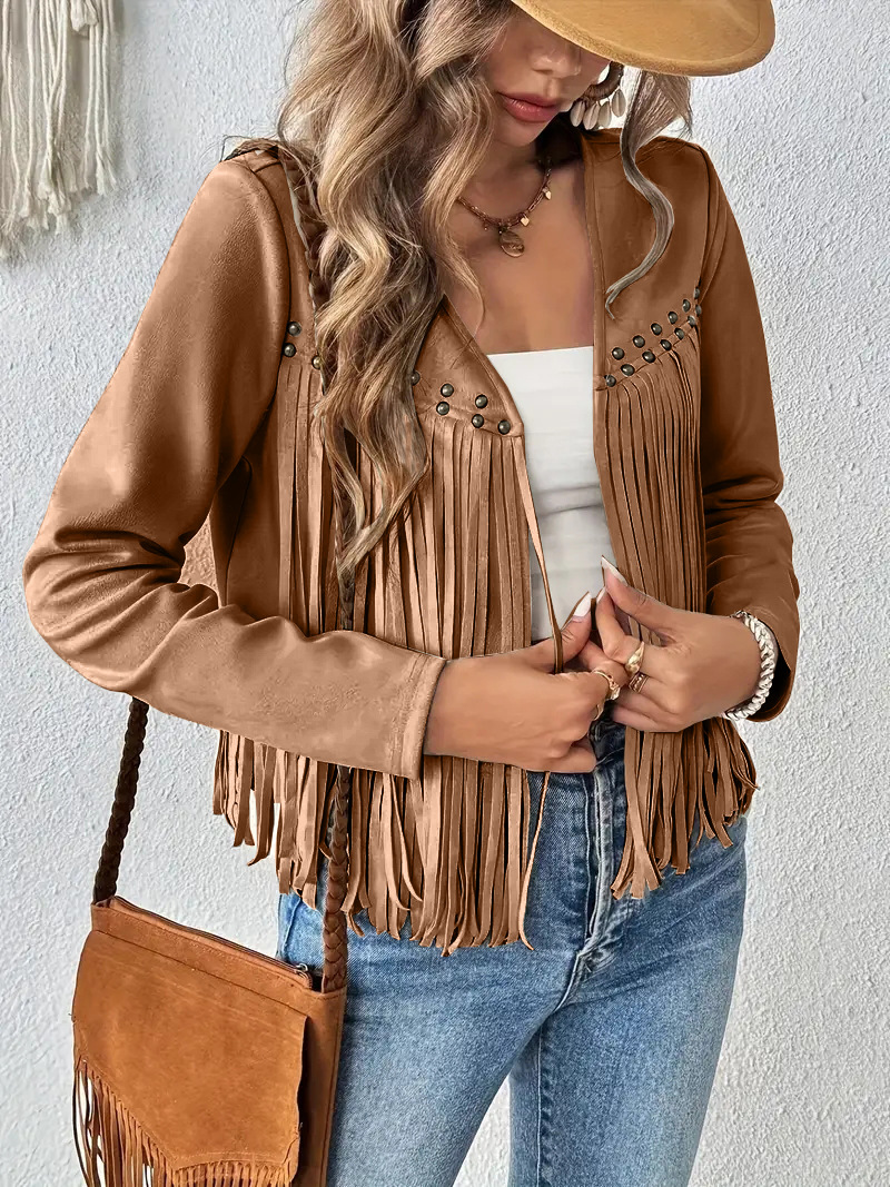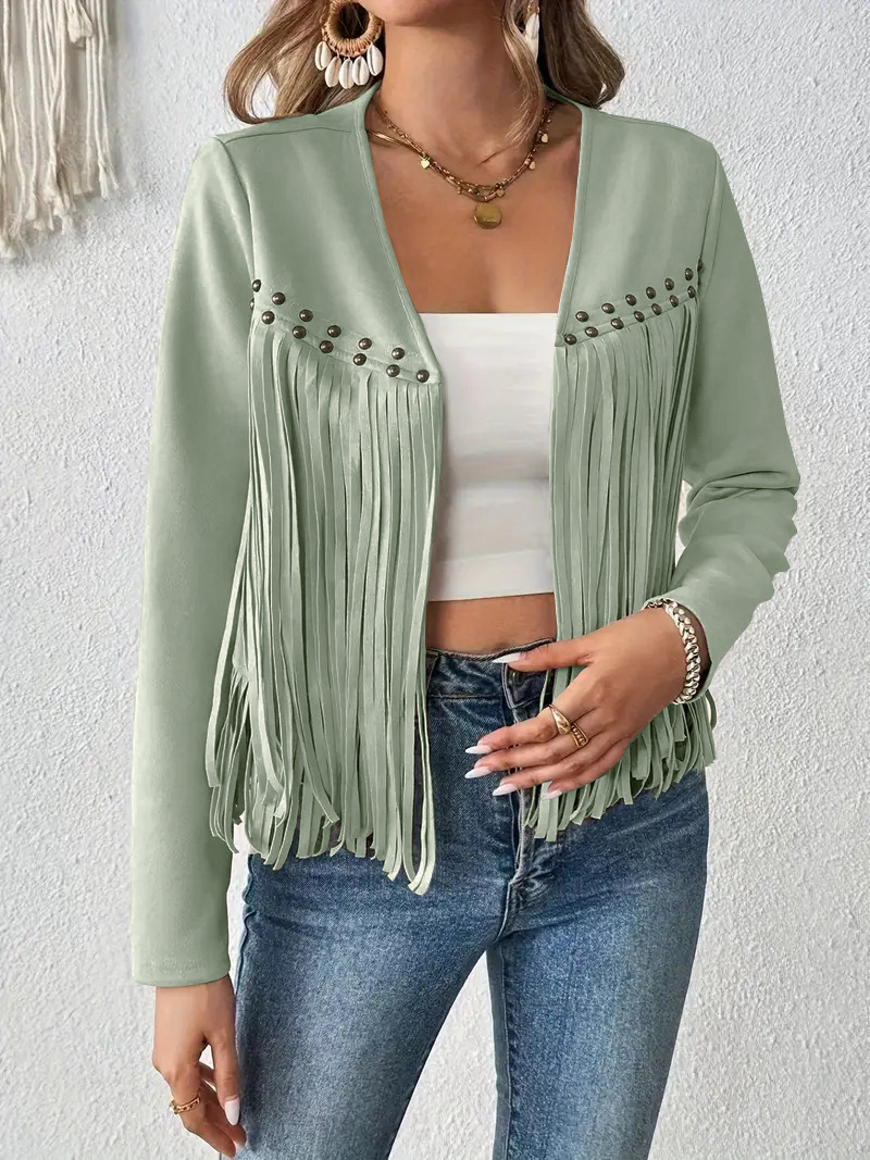 2025 유럽과 미국의 아마존 새로운 멀티 네일 태슬 재킷 여성 스웨이드 버클 프리 재킷 조끼 재킷 카디건