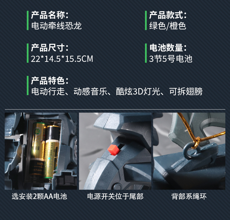 • 가죽끈이 달린 전기 로봇 공룡(배터리 제공)