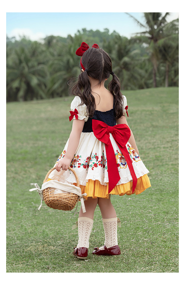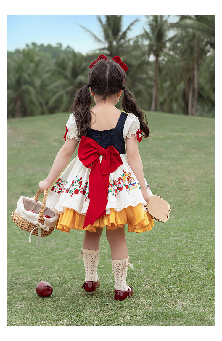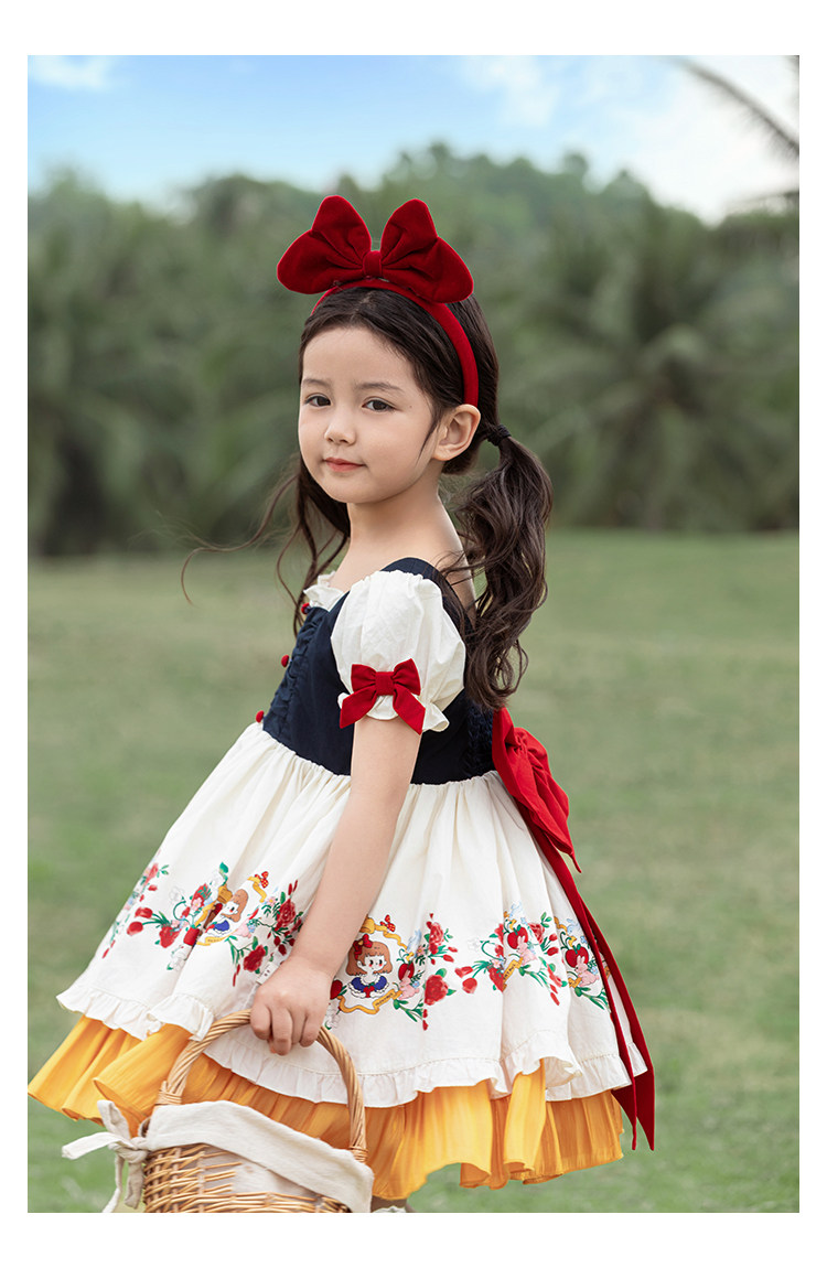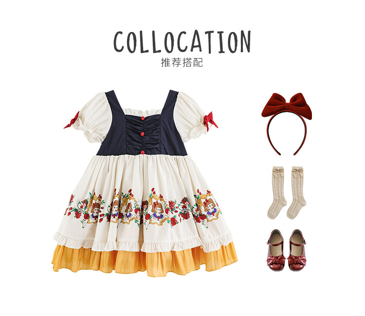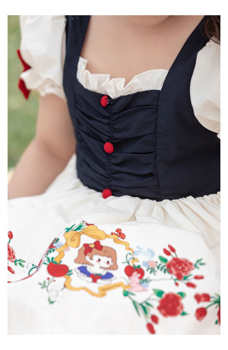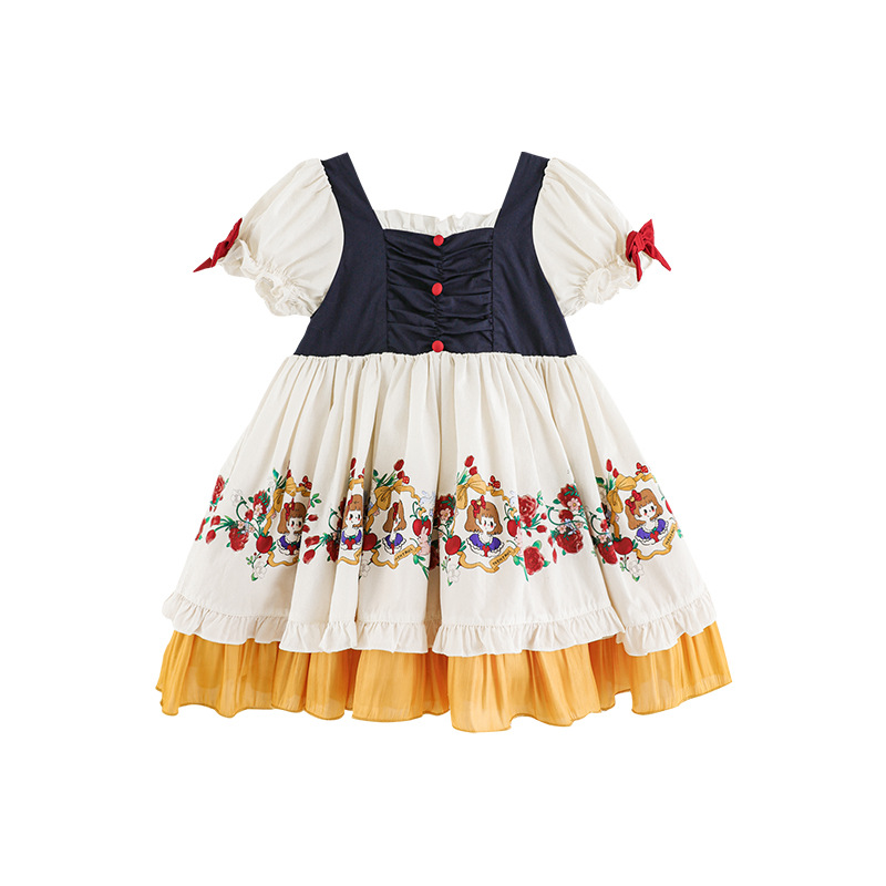 Wulibuyi 소녀 가짜 투피스 보우 스커트 여름 공주 스타일 로리타 퍼프 슬리브 드레스스토어 가기