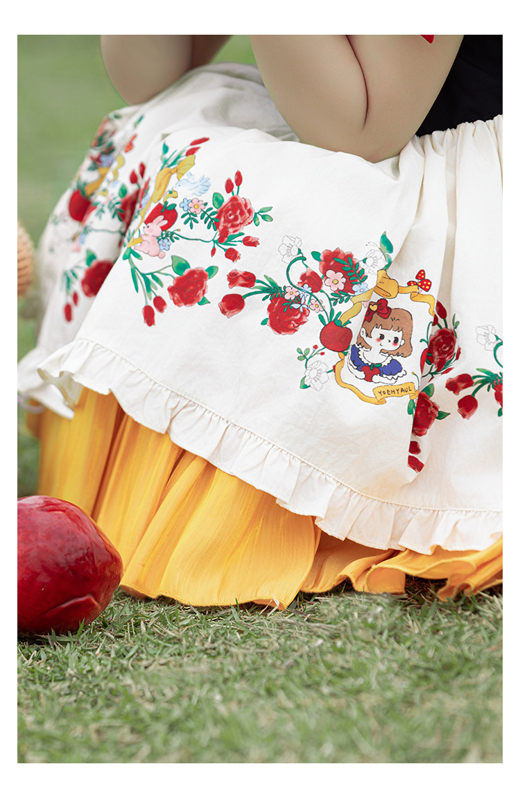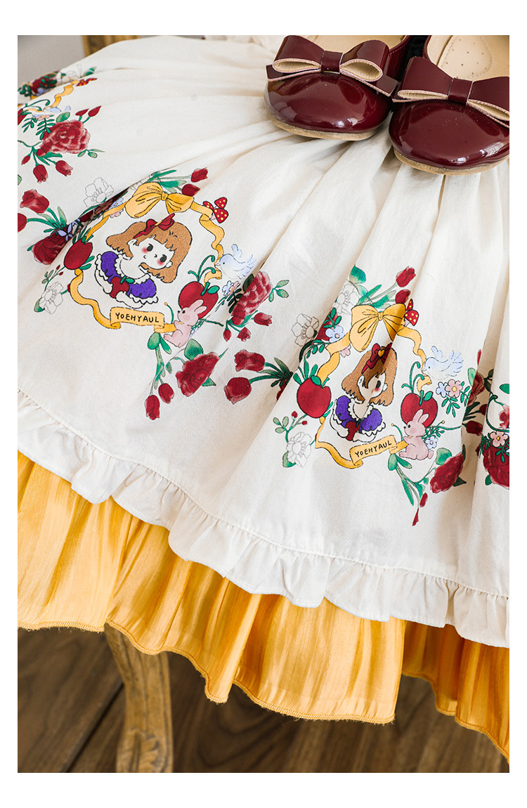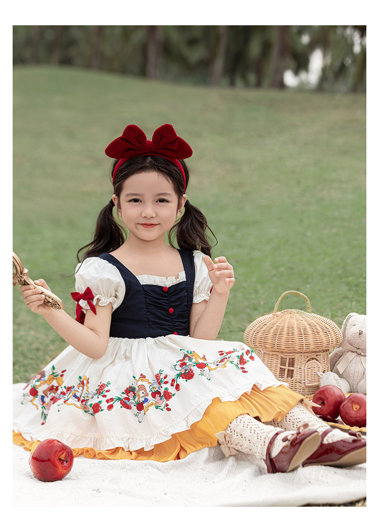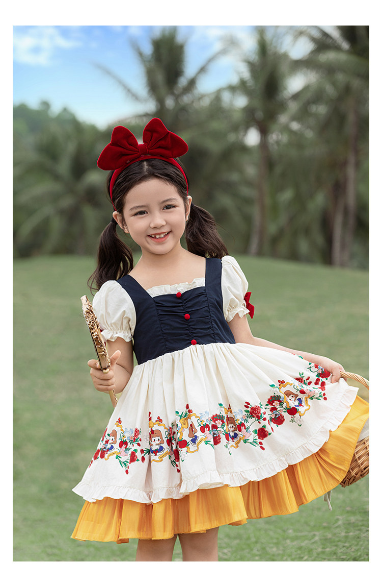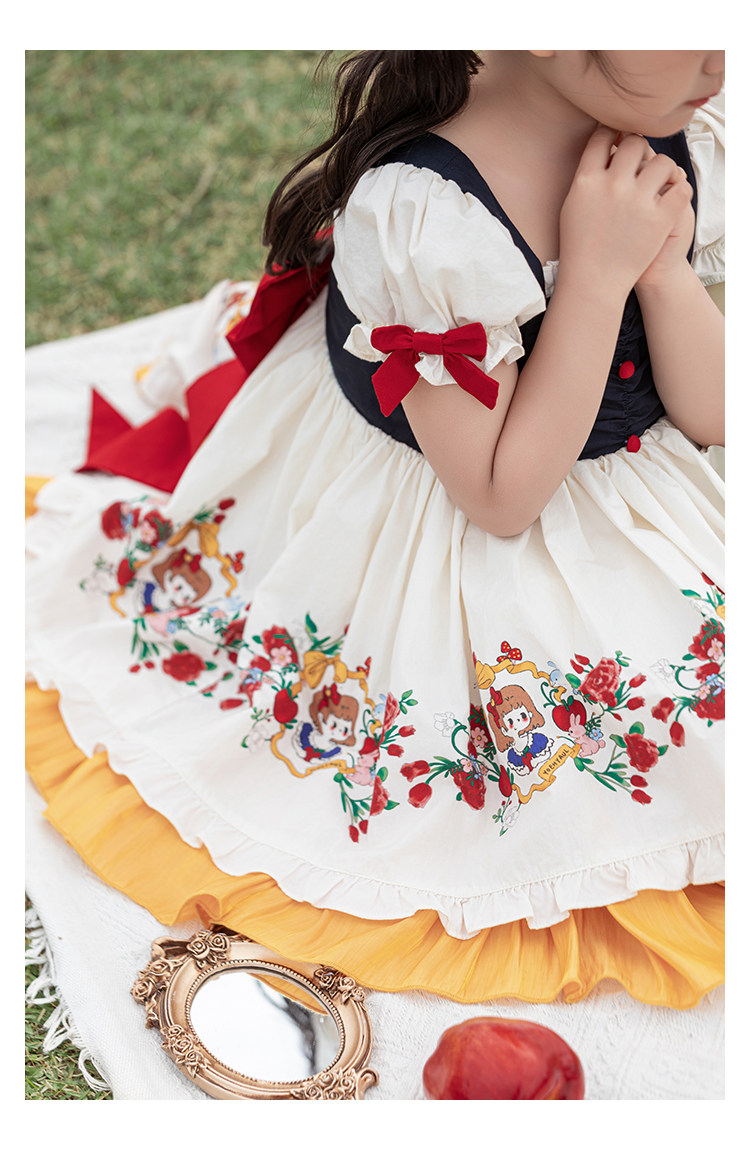 Wulibuyi 소녀 가짜 투피스 보우 스커트 여름 공주 스타일 로리타 퍼프 슬리브 드레스스토어 가기