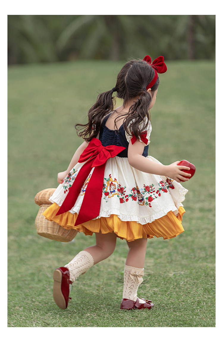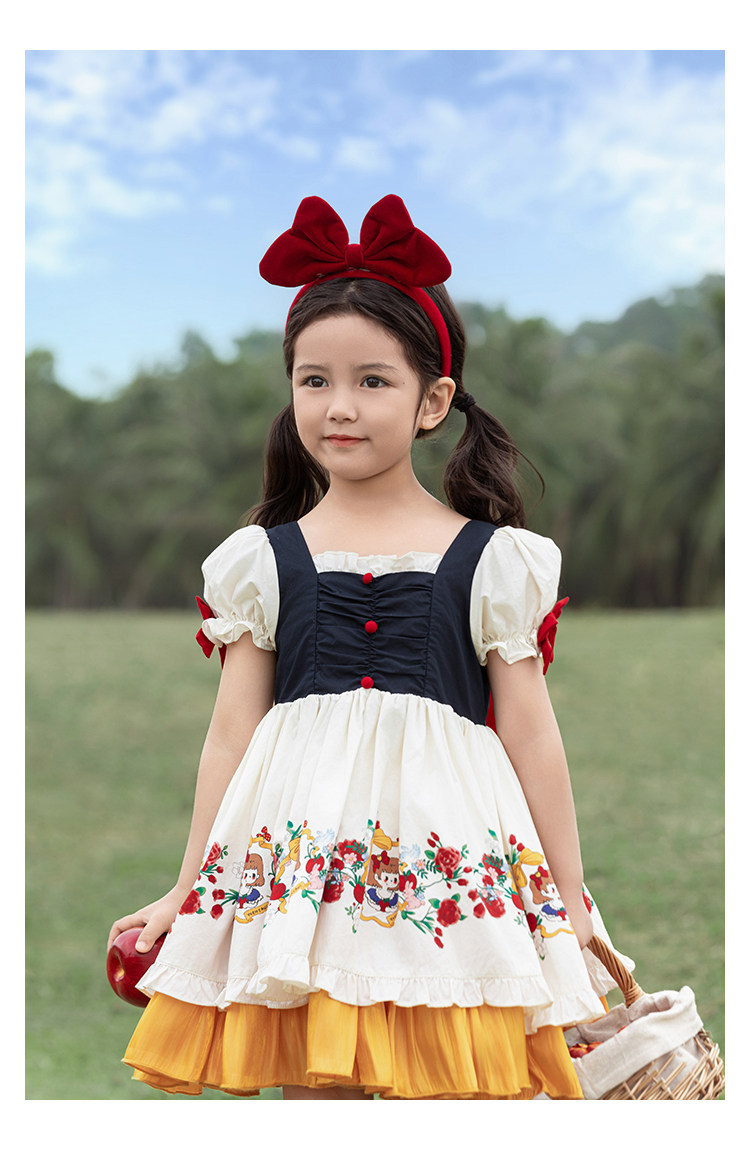 Wulibuyi 소녀 가짜 투피스 보우 스커트 여름 공주 스타일 로리타 퍼프 슬리브 드레스