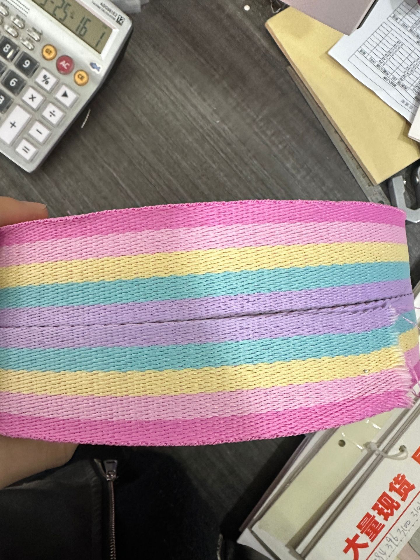 폴리에스터 네트워크 실크 4색 5색 스플라이싱 스트라이프 레인보우 웨빙 가방 핸드 스트랩 클라이밍 프레임스토어 가기