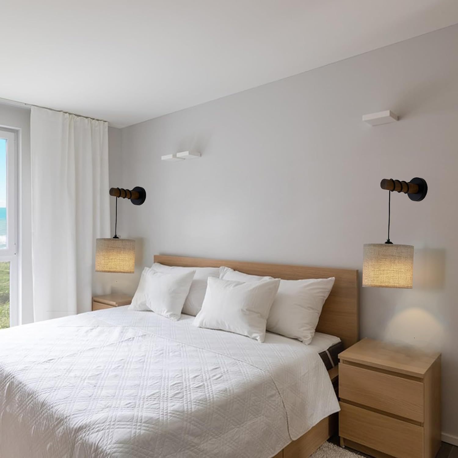 아마존 심플한 복고풍 침실 벽 램프 B&B 컨트리 하우스 거실 통로 홈 중세 디자인 패브릭 스타일스토어 가기