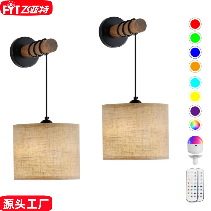아마존 심플한 복고풍 침실 벽 램프 B&B 컨트리 하우스 거실 통로 홈 중세 디자인 패브릭 스타일