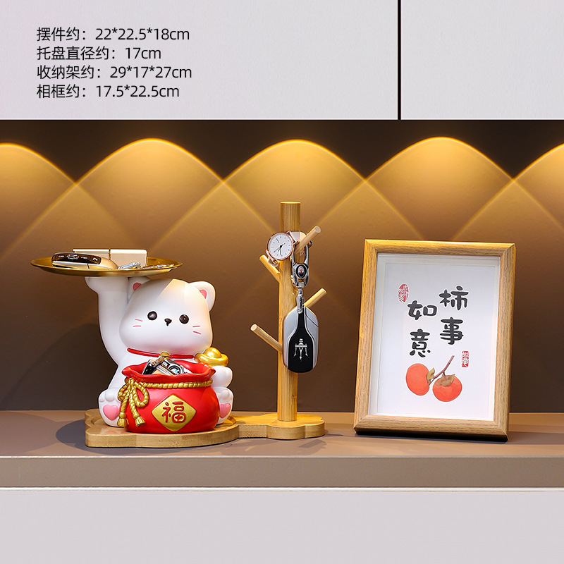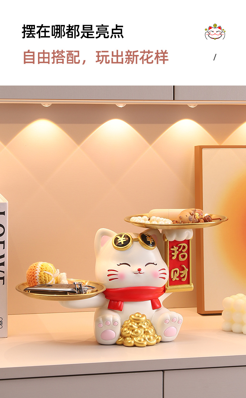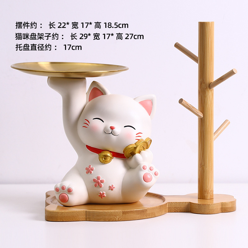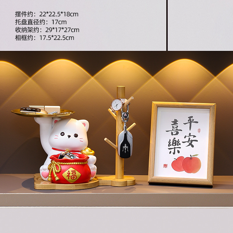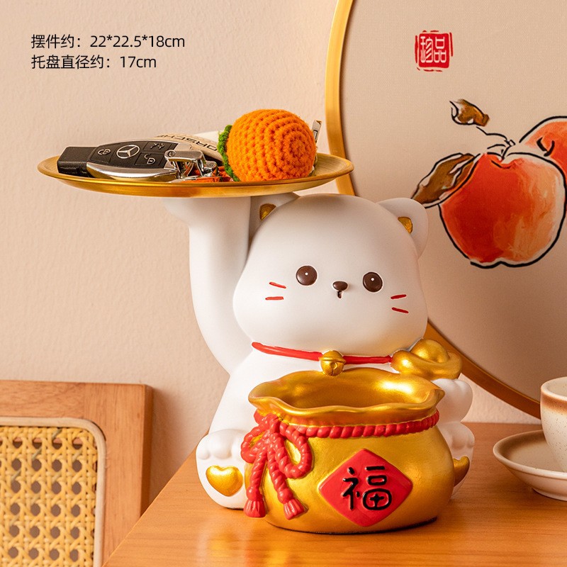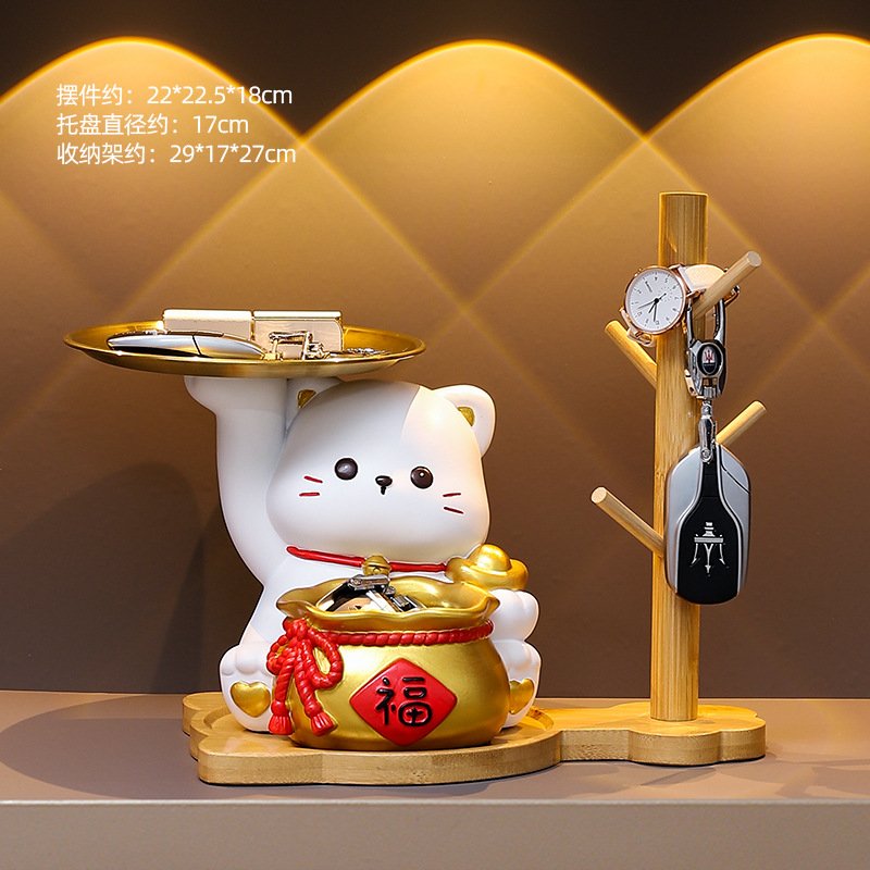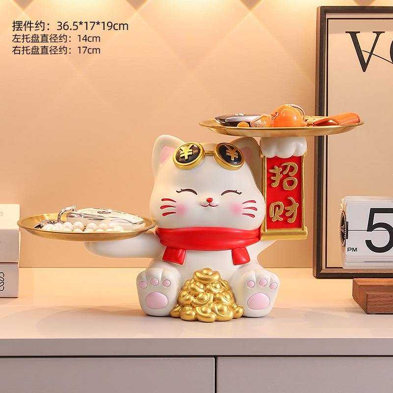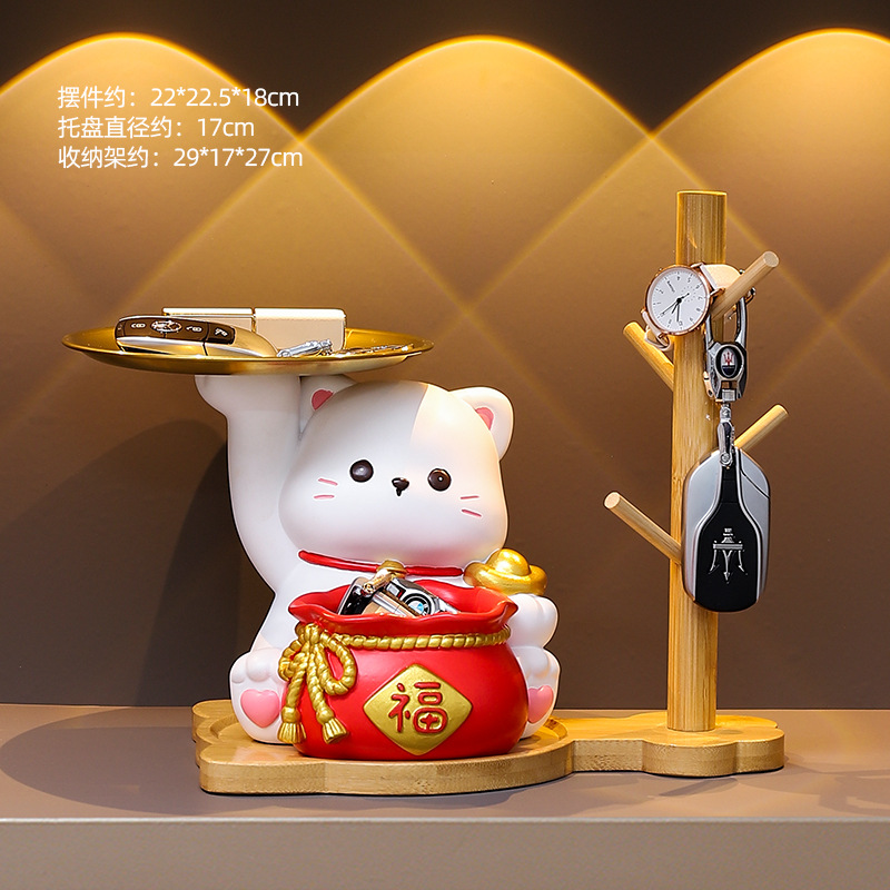더블 트레이 행운의 고양이 홈 장식 창조적 인 만화 선물 데스크탑 거실 와인 캐비닛 주요 현관 보관 장식품