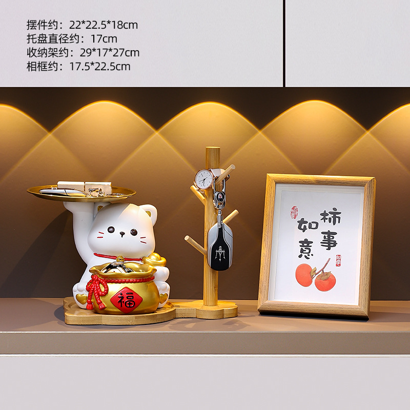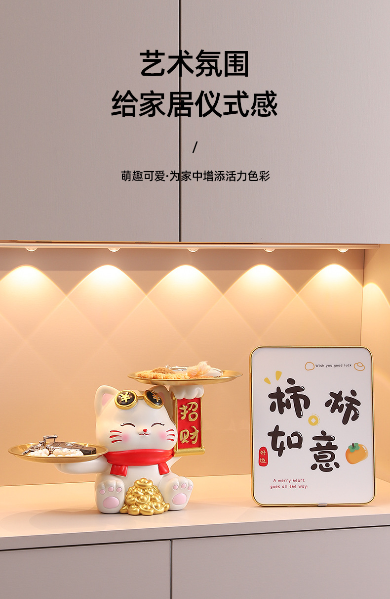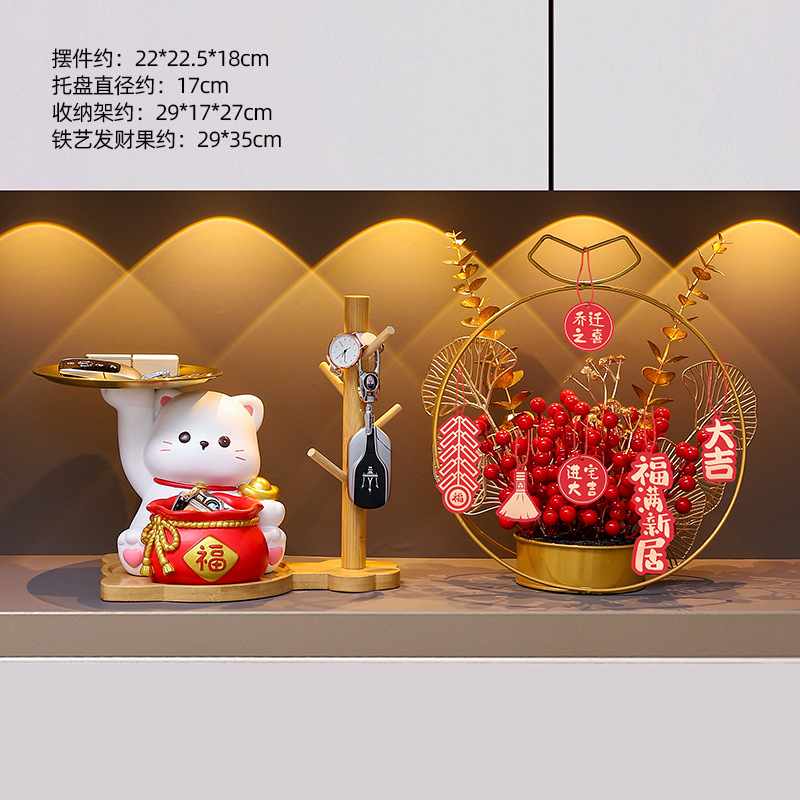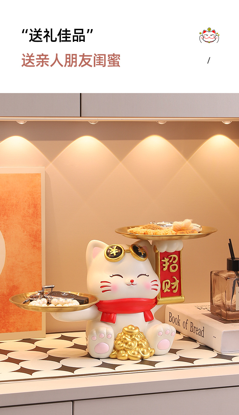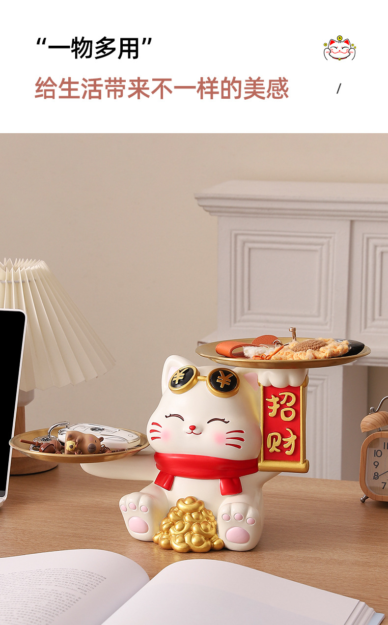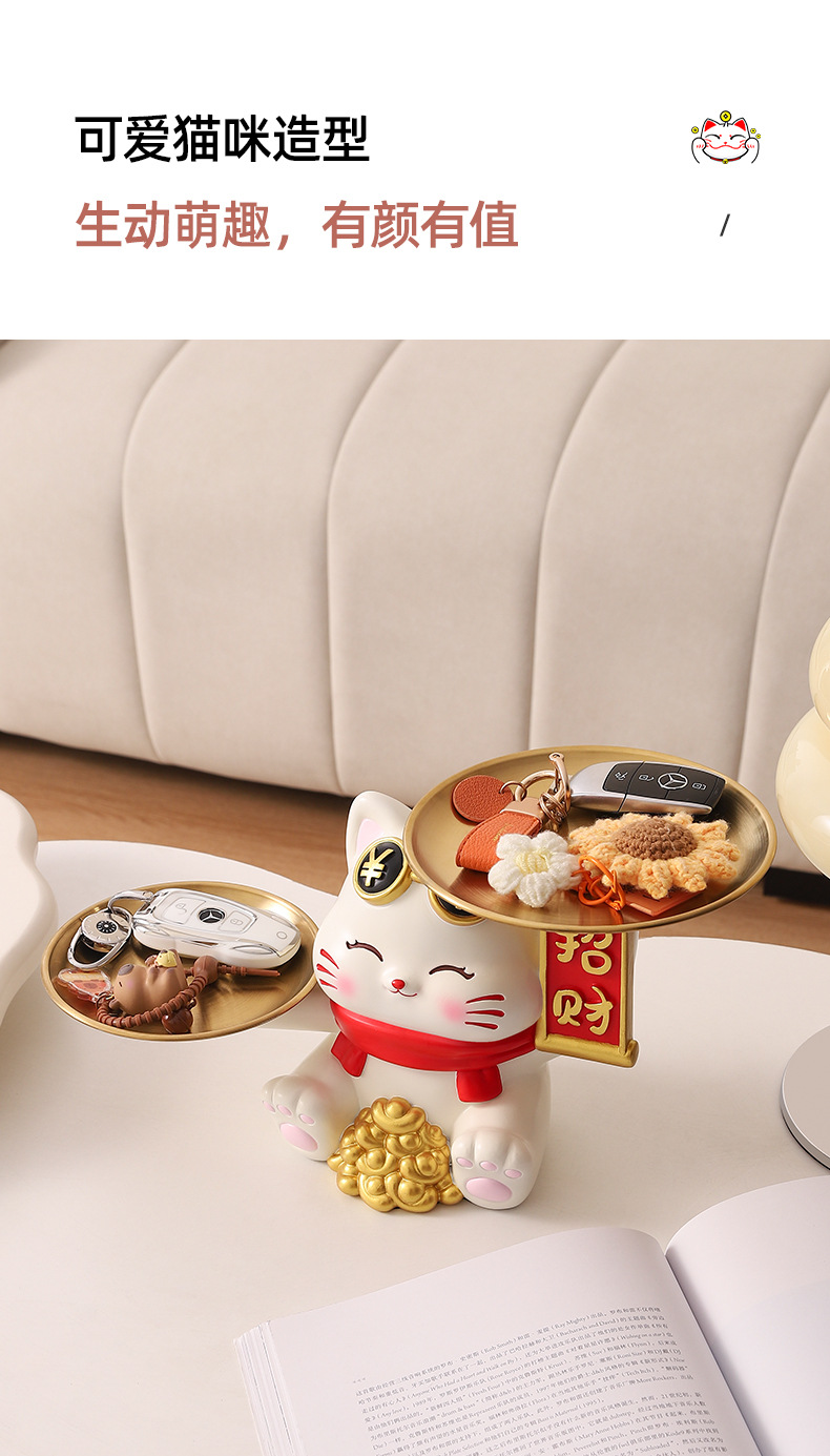 더블 트레이 행운의 고양이 홈 장식 창조적 인 만화 선물 데스크탑 거실 와인 캐비닛 주요 현관 보관 장식품