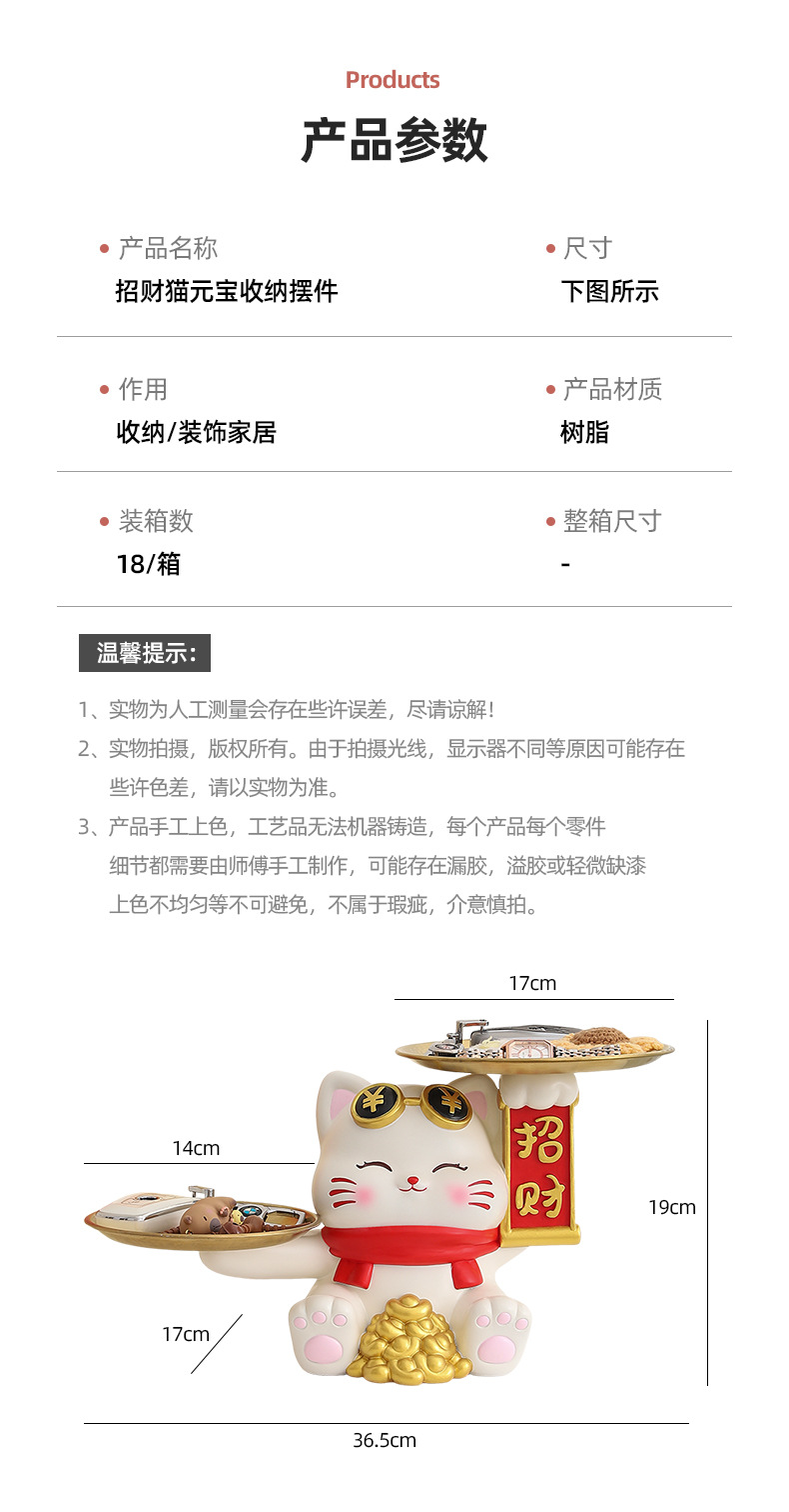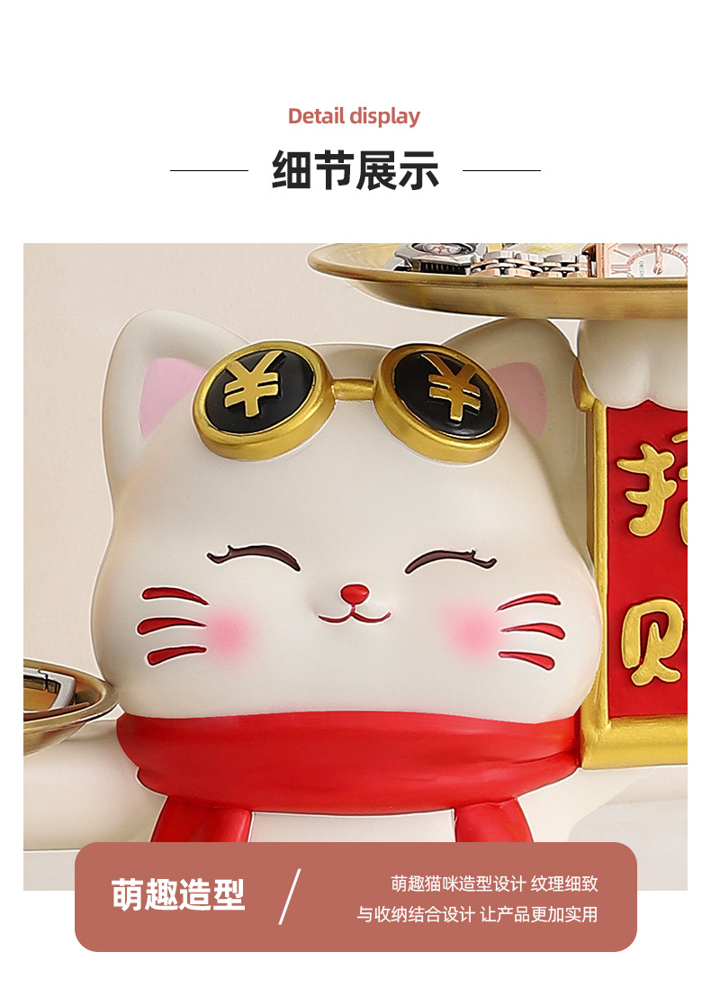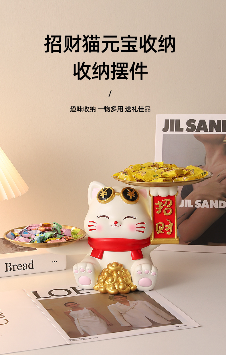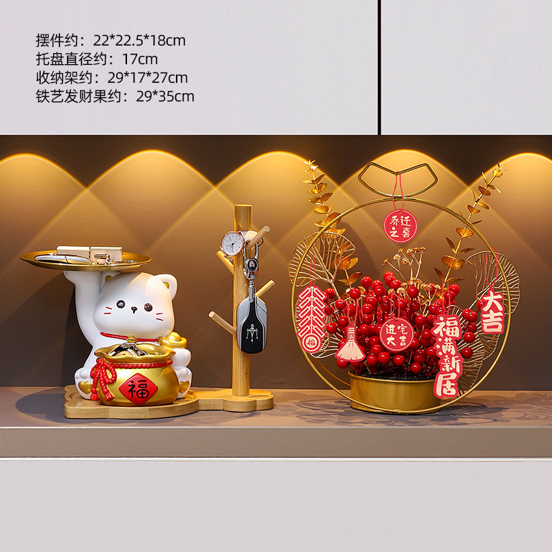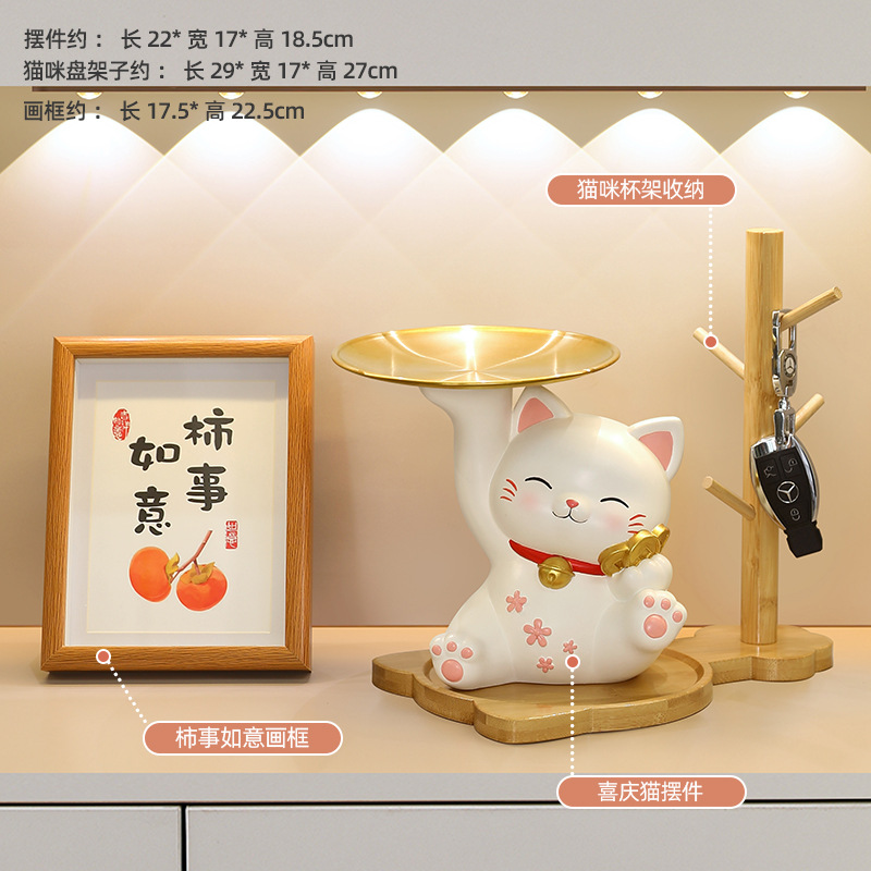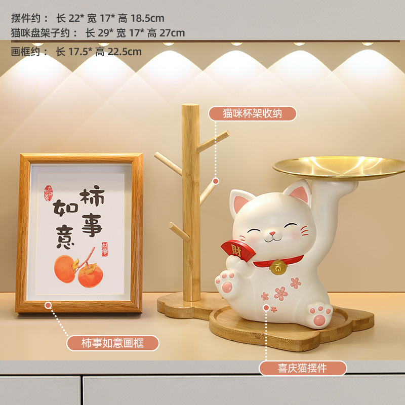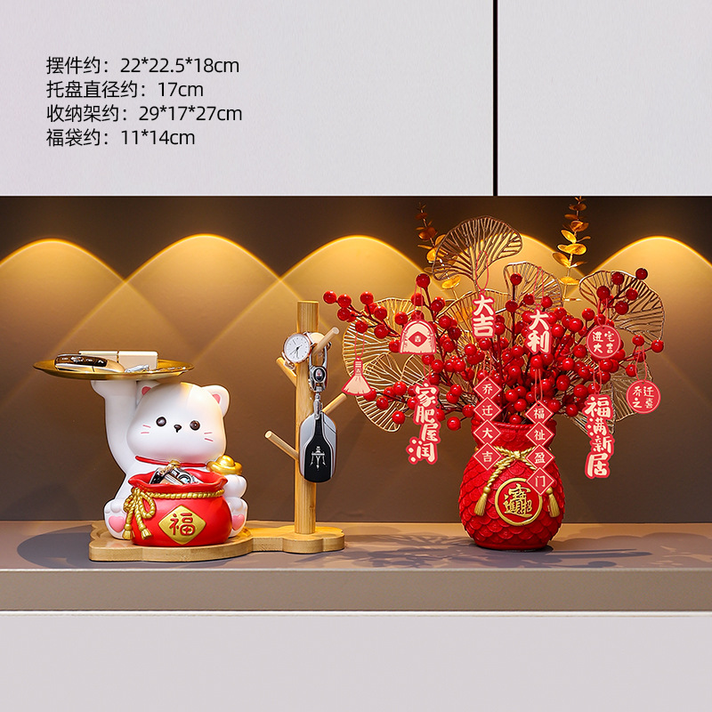 더블 트레이 행운의 고양이 홈 장식 창조적 인 만화 선물 데스크탑 거실 와인 캐비닛 주요 현관 보관 장식품