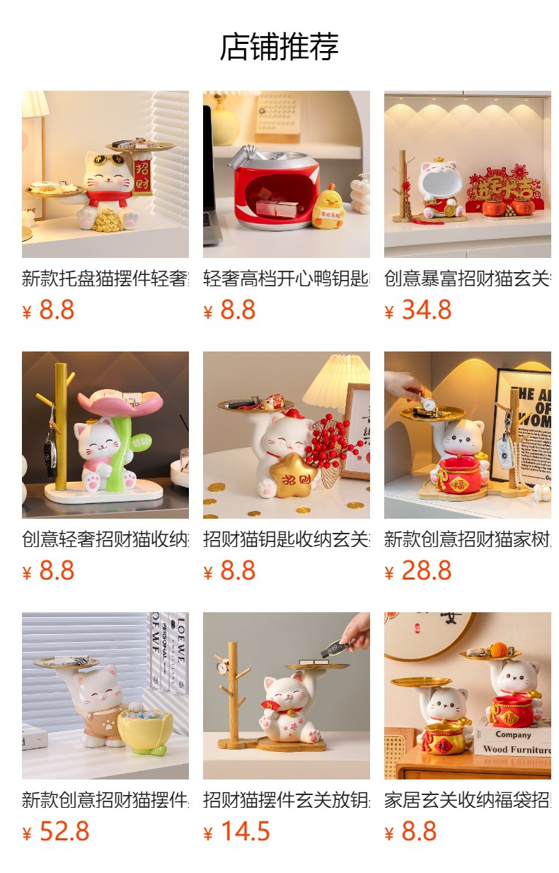 더블 트레이 행운의 고양이 홈 장식 창조적 인 만화 선물 데스크탑 거실 와인 캐비닛 주요 현관 보관 장식품스토어 가기