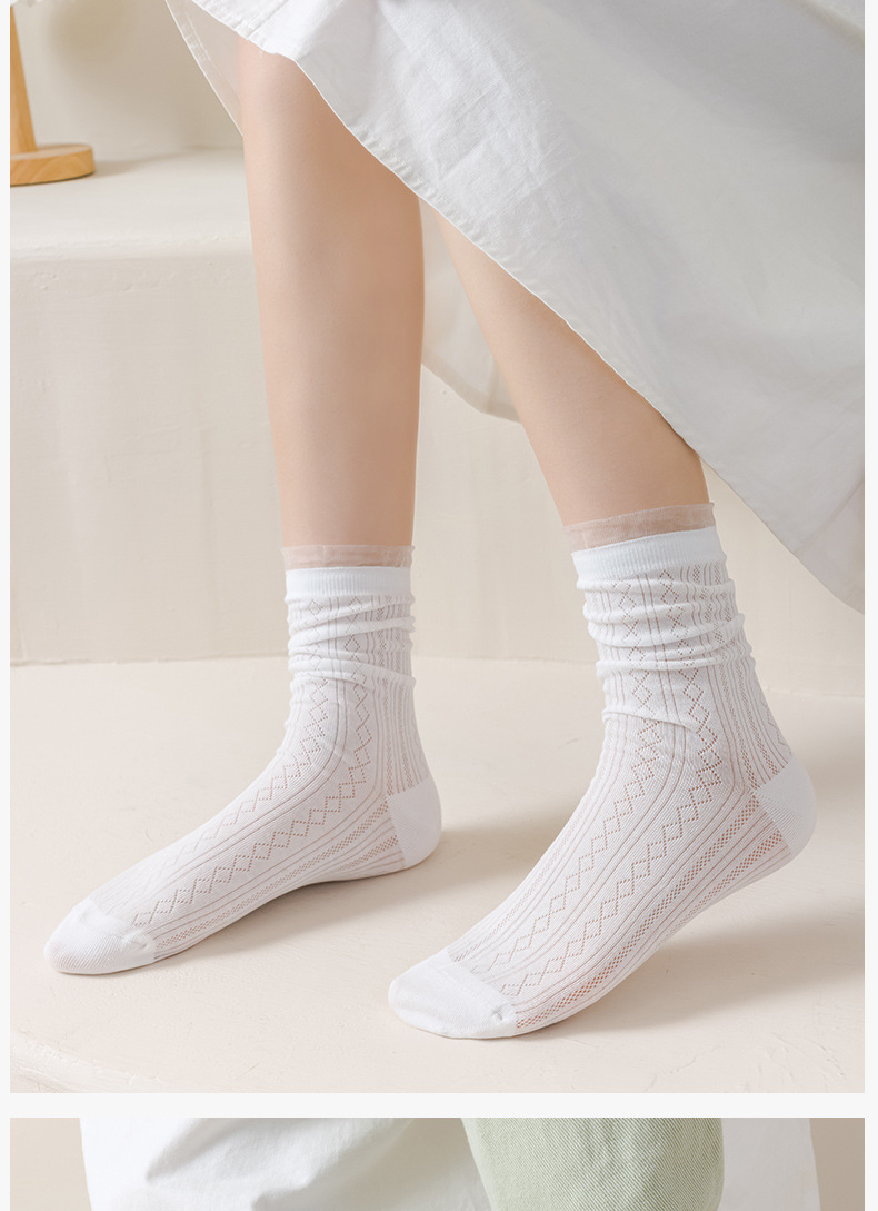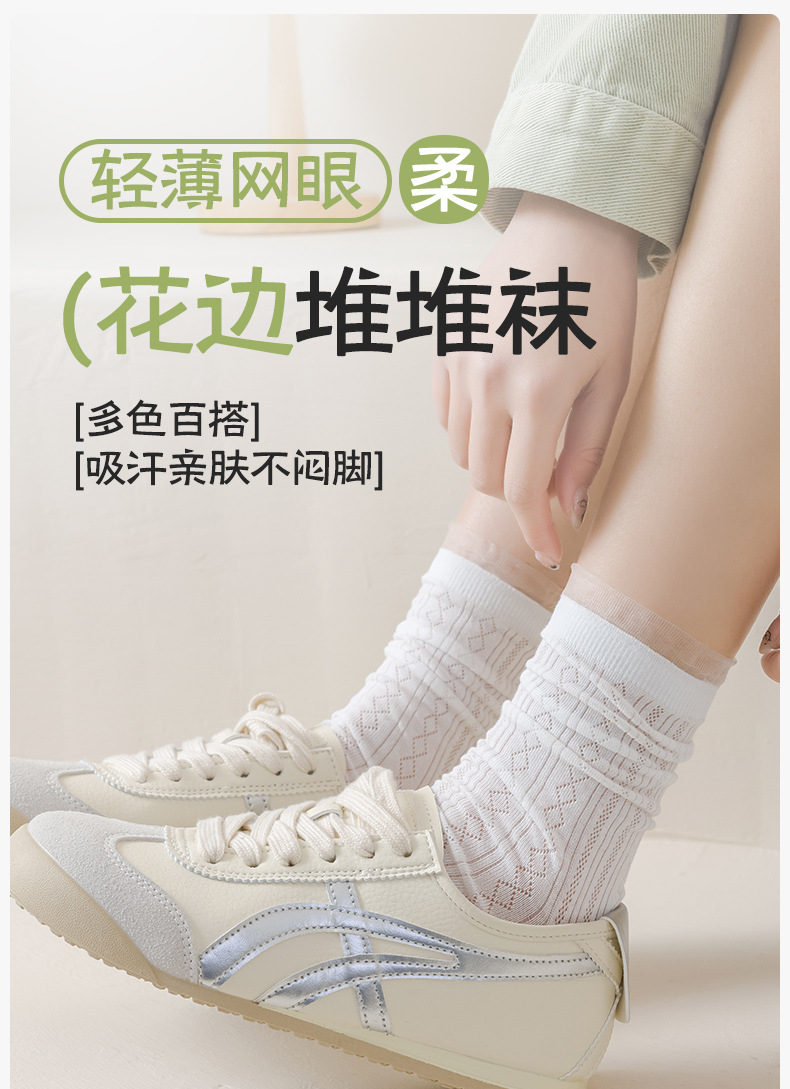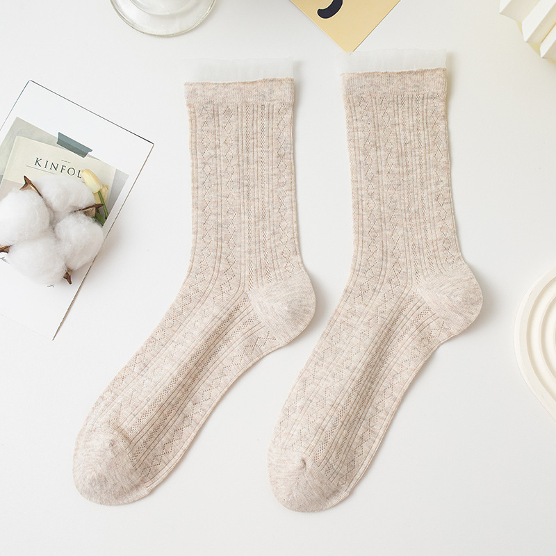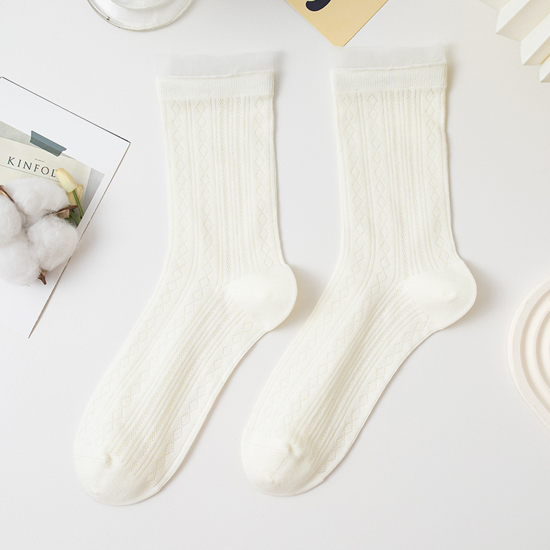 여성용 달콤한 스타일의 양말, 순면 여름용 얇은 메쉬 통기성 냄새방지 레이스 레이스 트림 스타킹, 다용도 학생 양말스토어 가기
