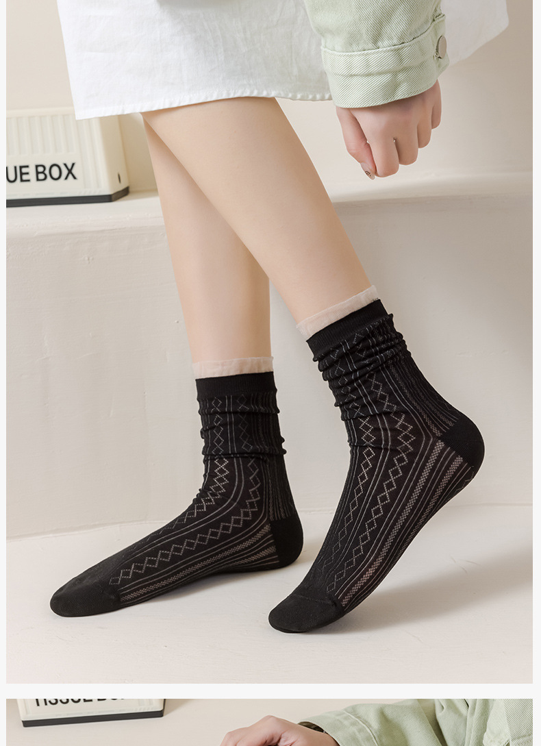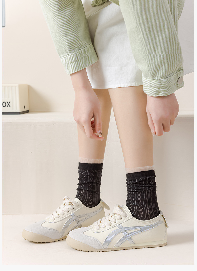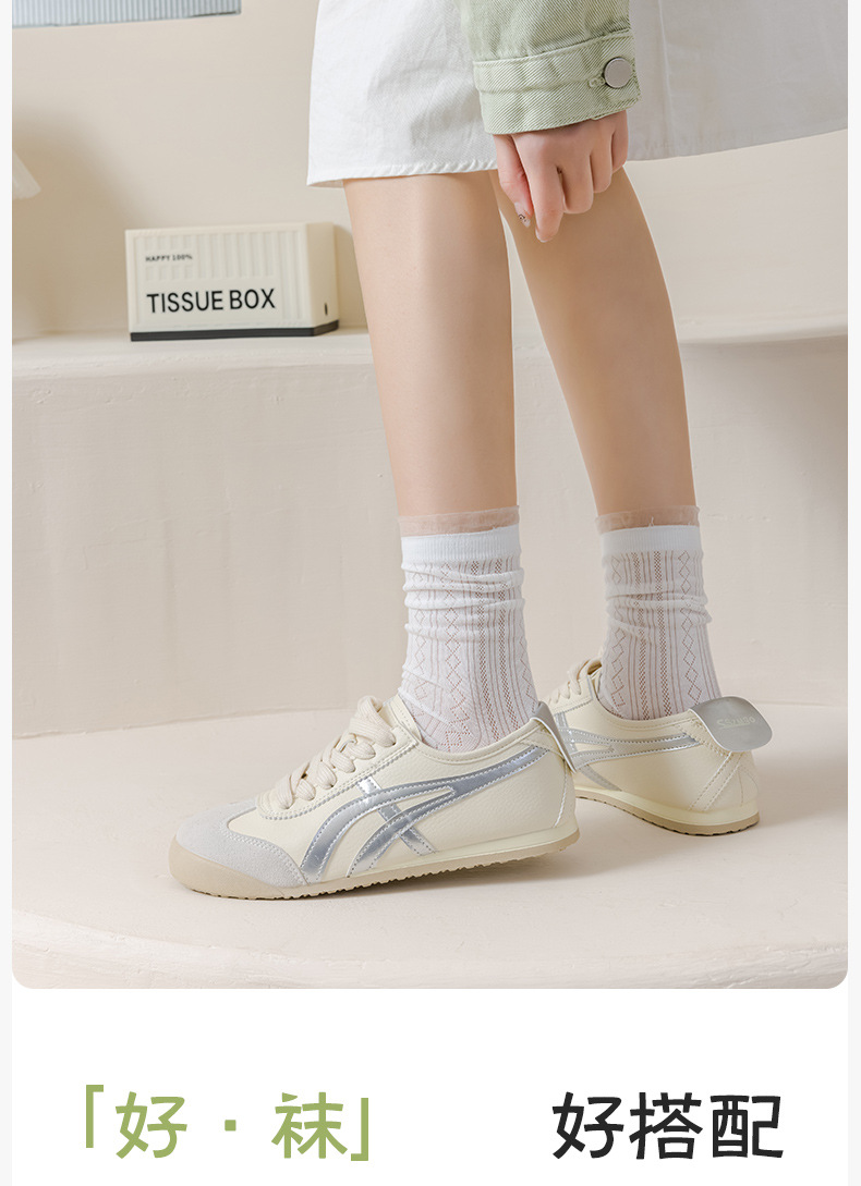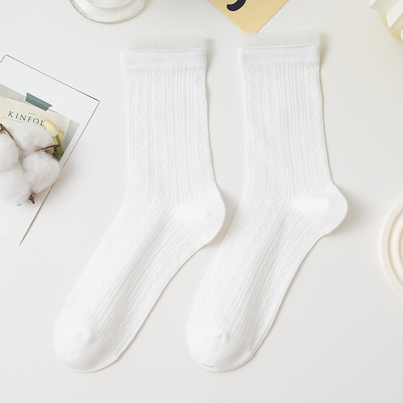 여성용 달콤한 스타일의 양말, 순면 여름용 얇은 메쉬 통기성 냄새방지 레이스 레이스 트림 스타킹, 다용도 학생 양말스토어 가기