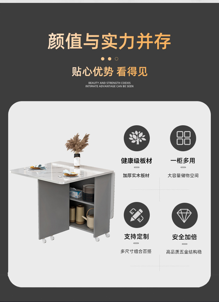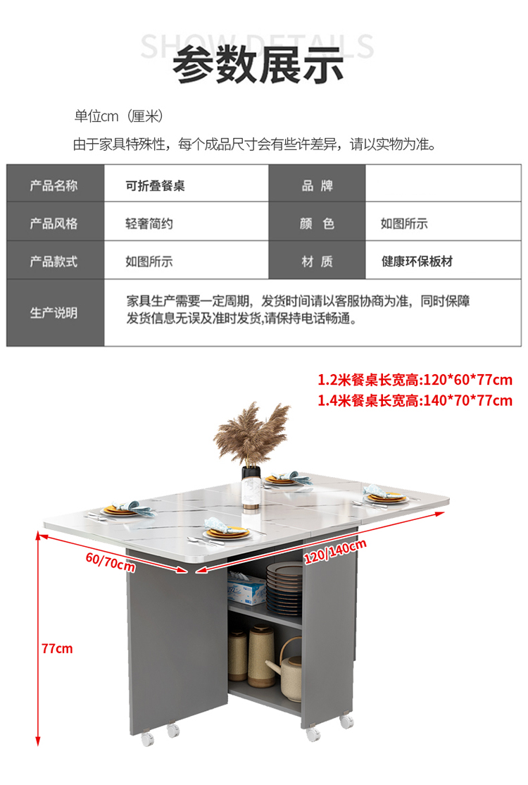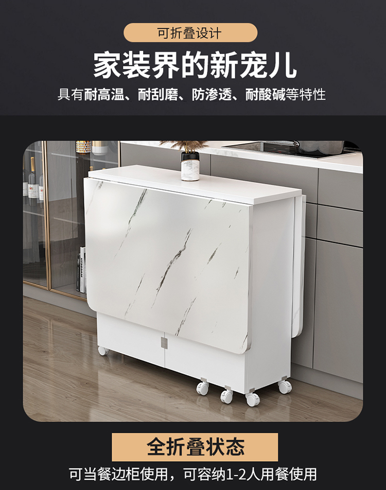 가정용 접이식 식탁 작은 아파트 이동식 바퀴 달린 직사각형 초박형 다기능 레스토랑 기숙사 식탁스토어 가기