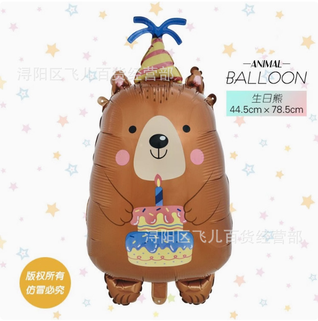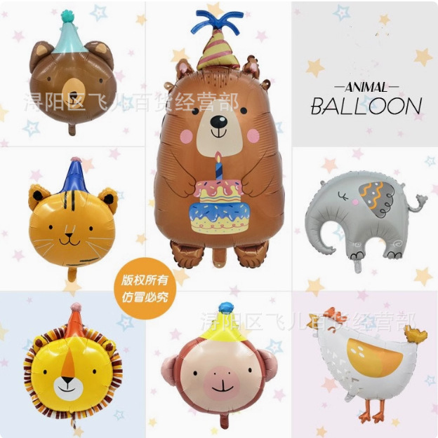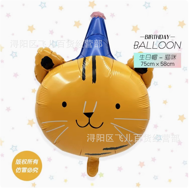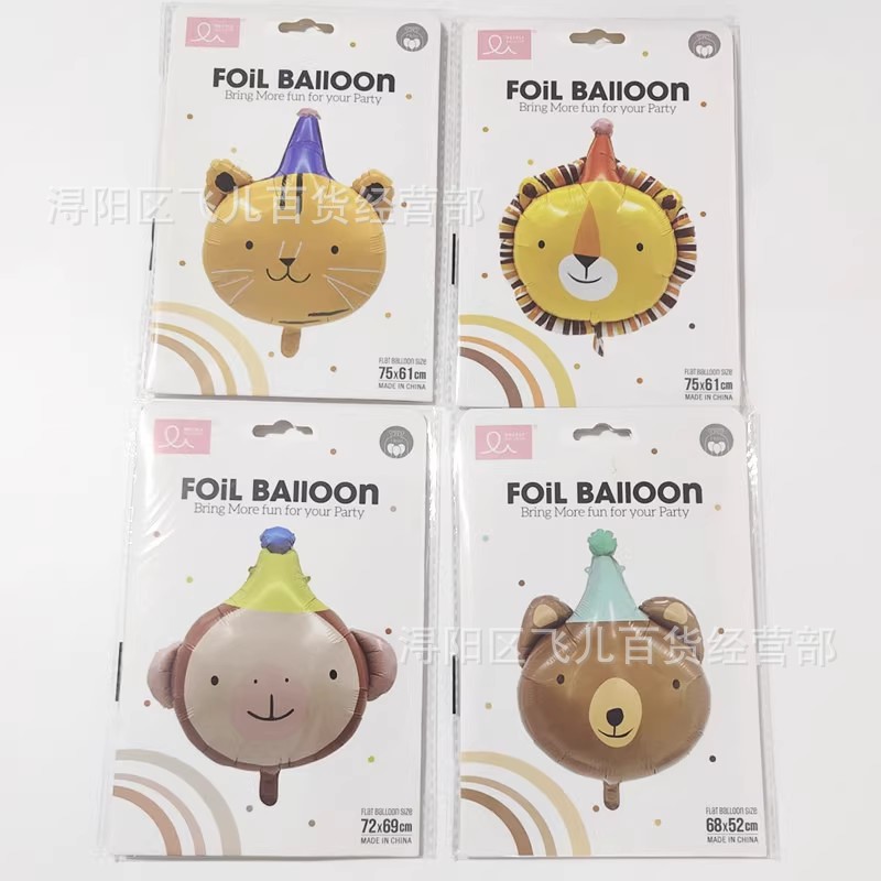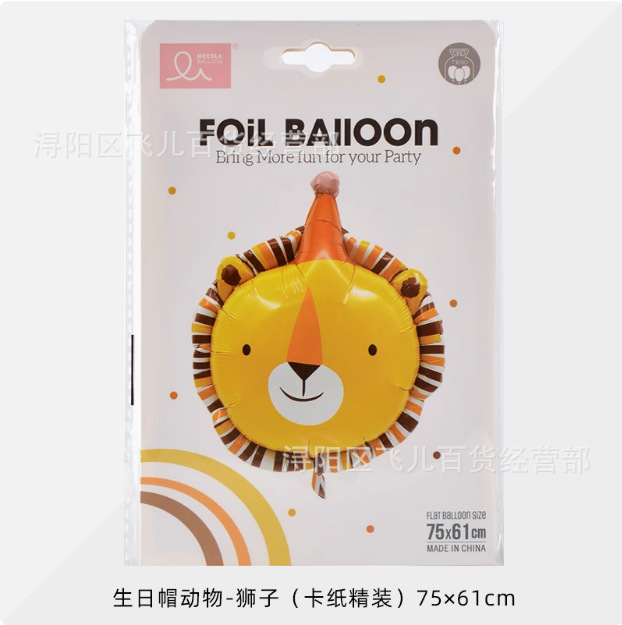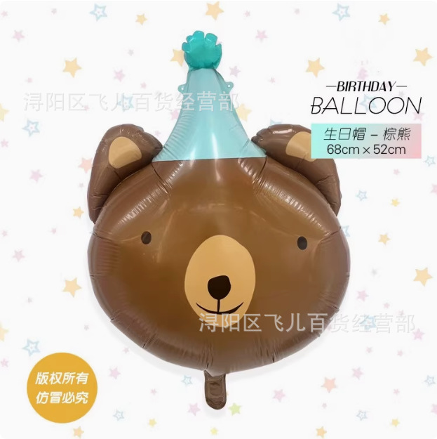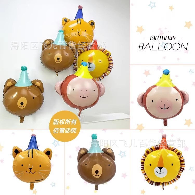 생일 모자 동물 포장 알루미늄 필름 풍선 원숭이 사자 다크 브라운 팬더 미즈우 어린이 파티 장식 사진 소품스토어 가기