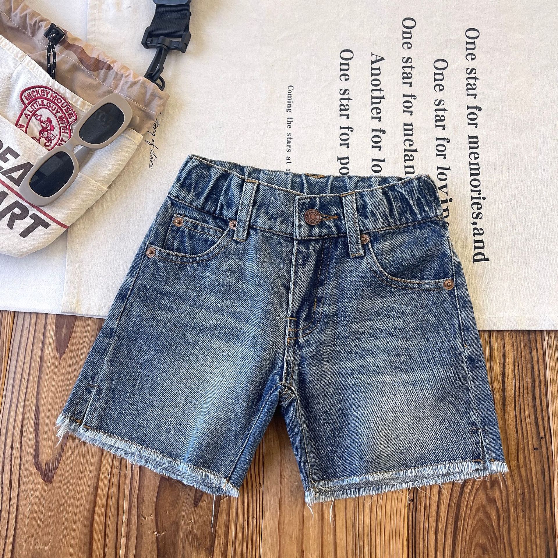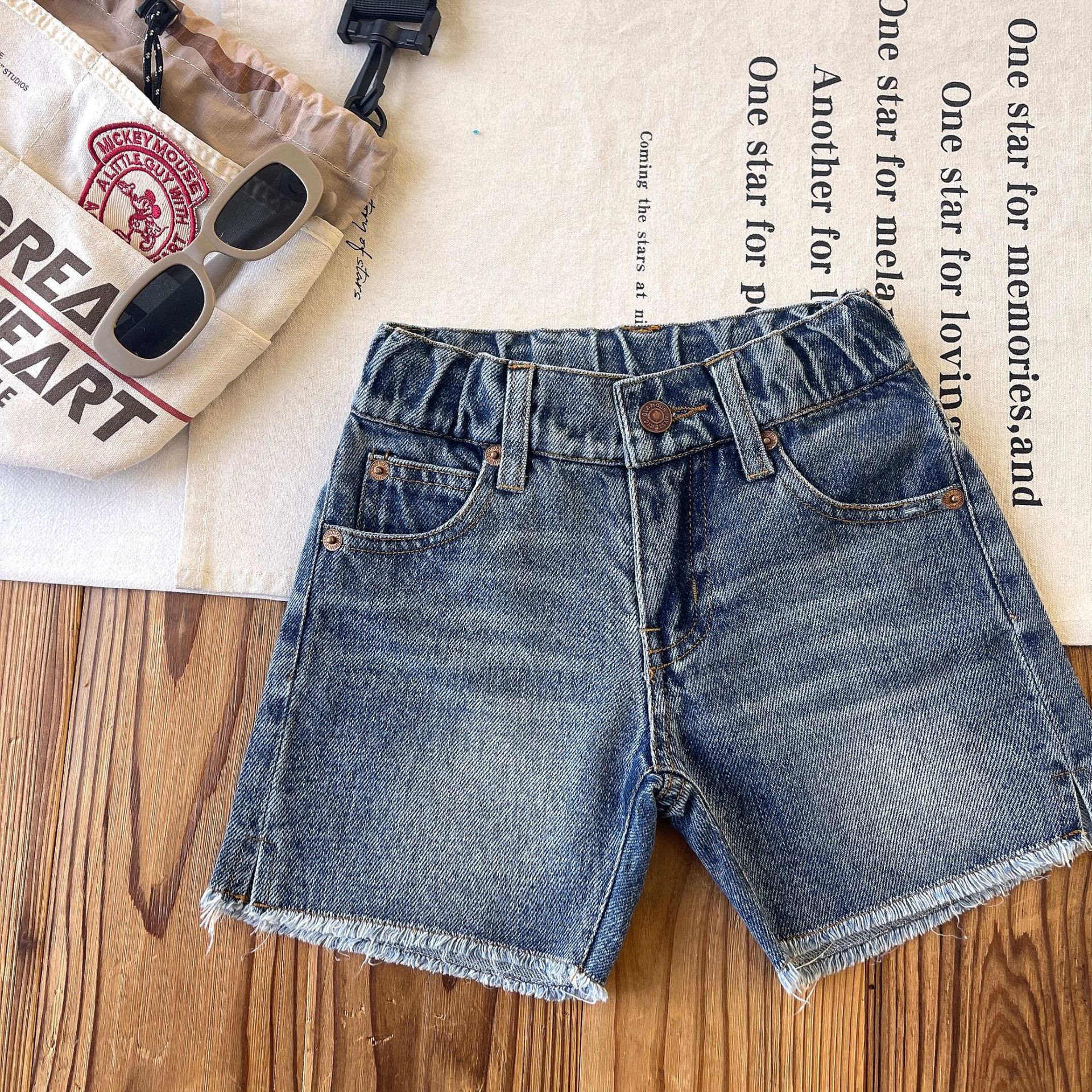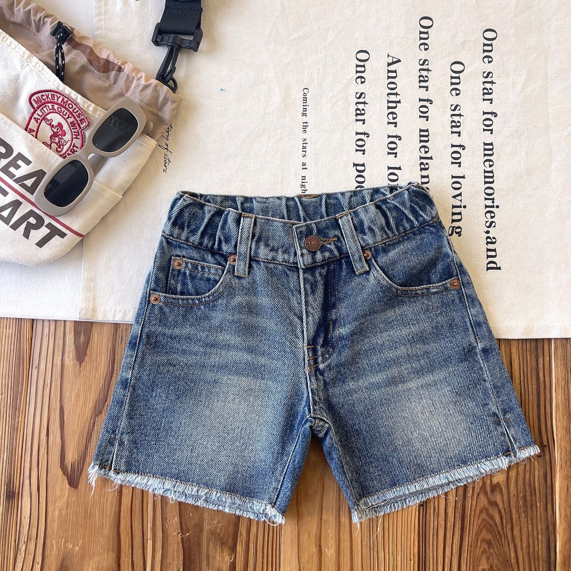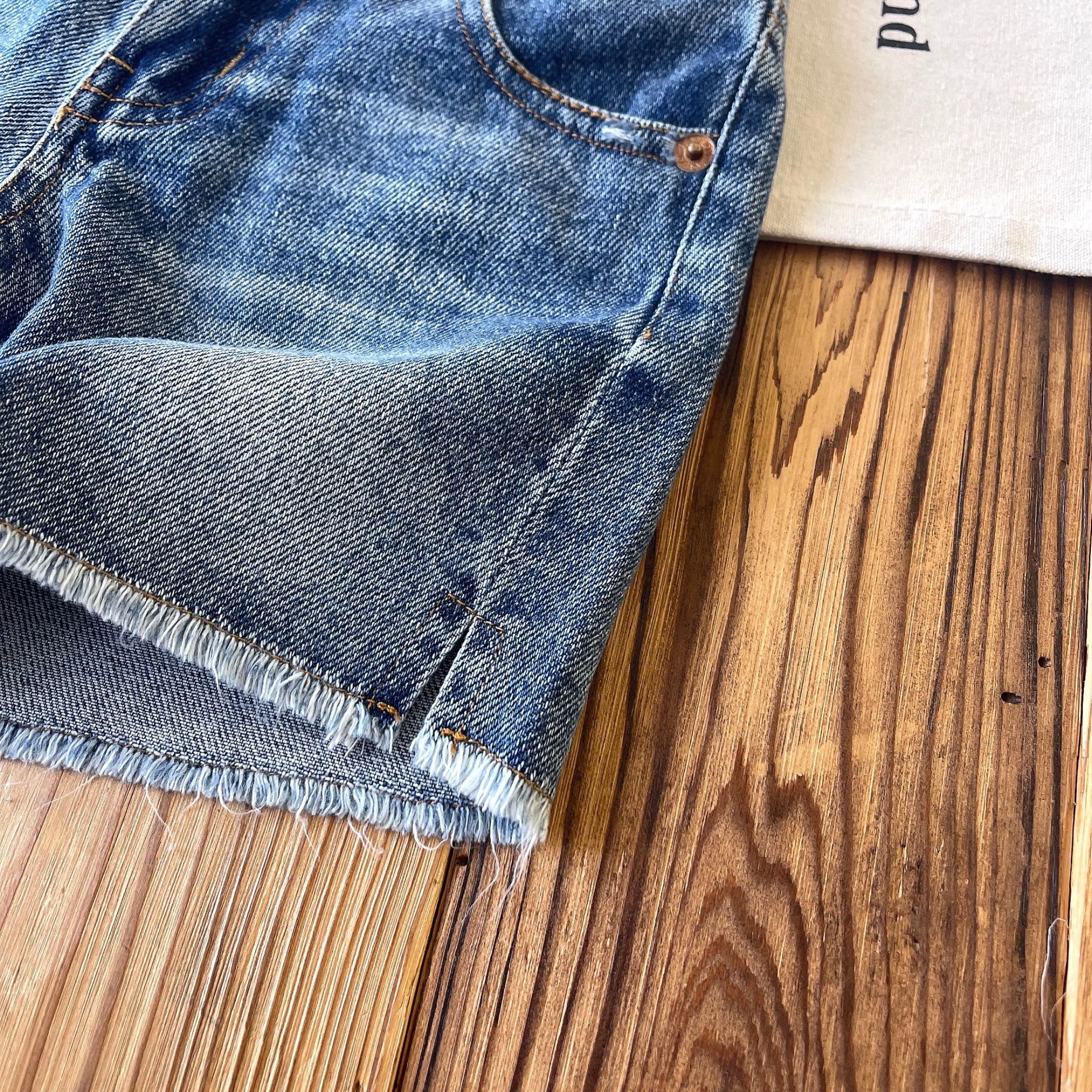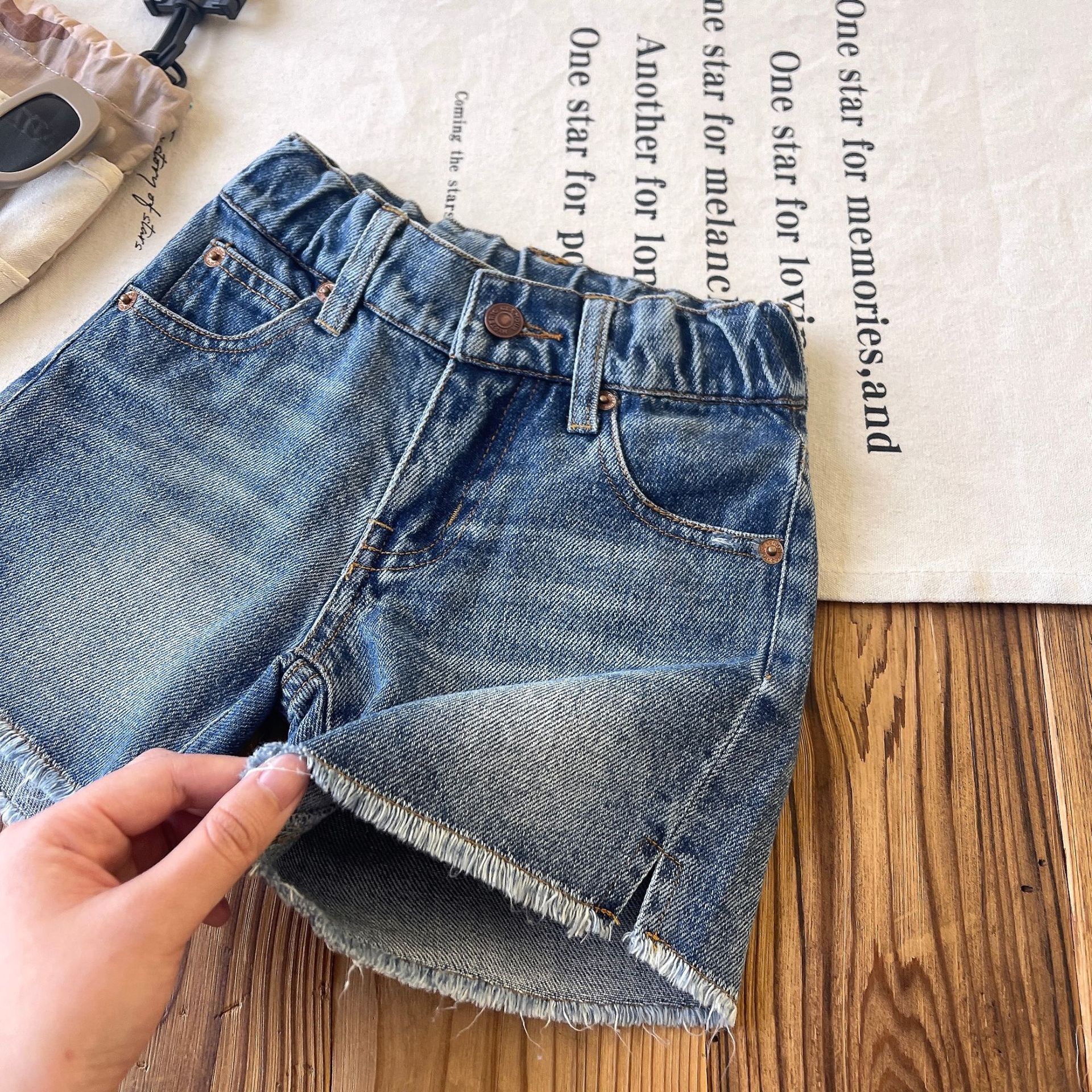 [재고 있음] 일본 아동복 중고 DD 아동 여름 복고풍 디스트레스드 데님 반바지스토어 가기