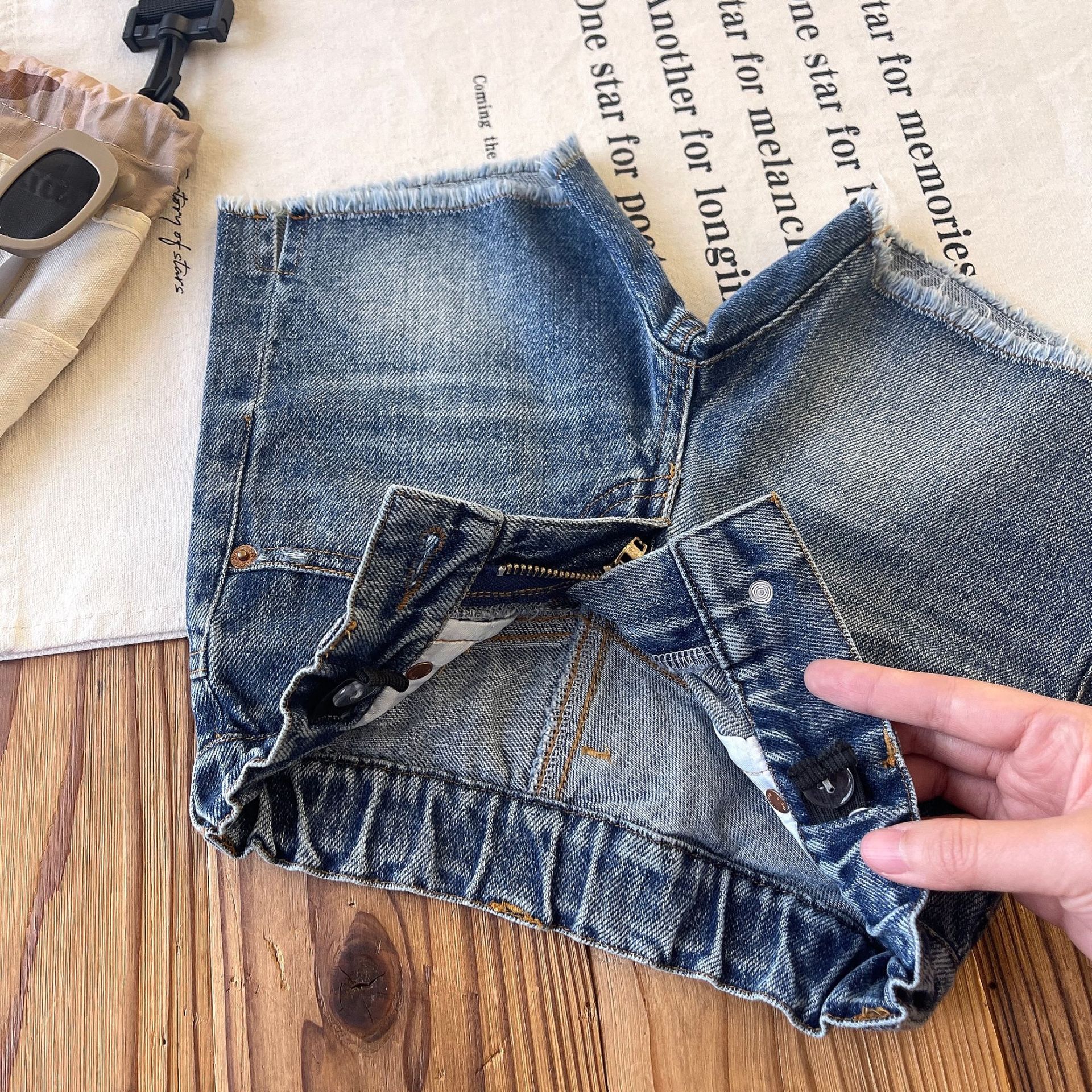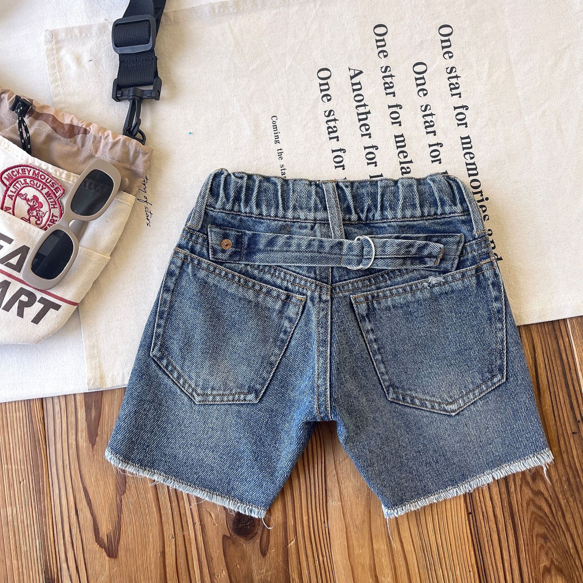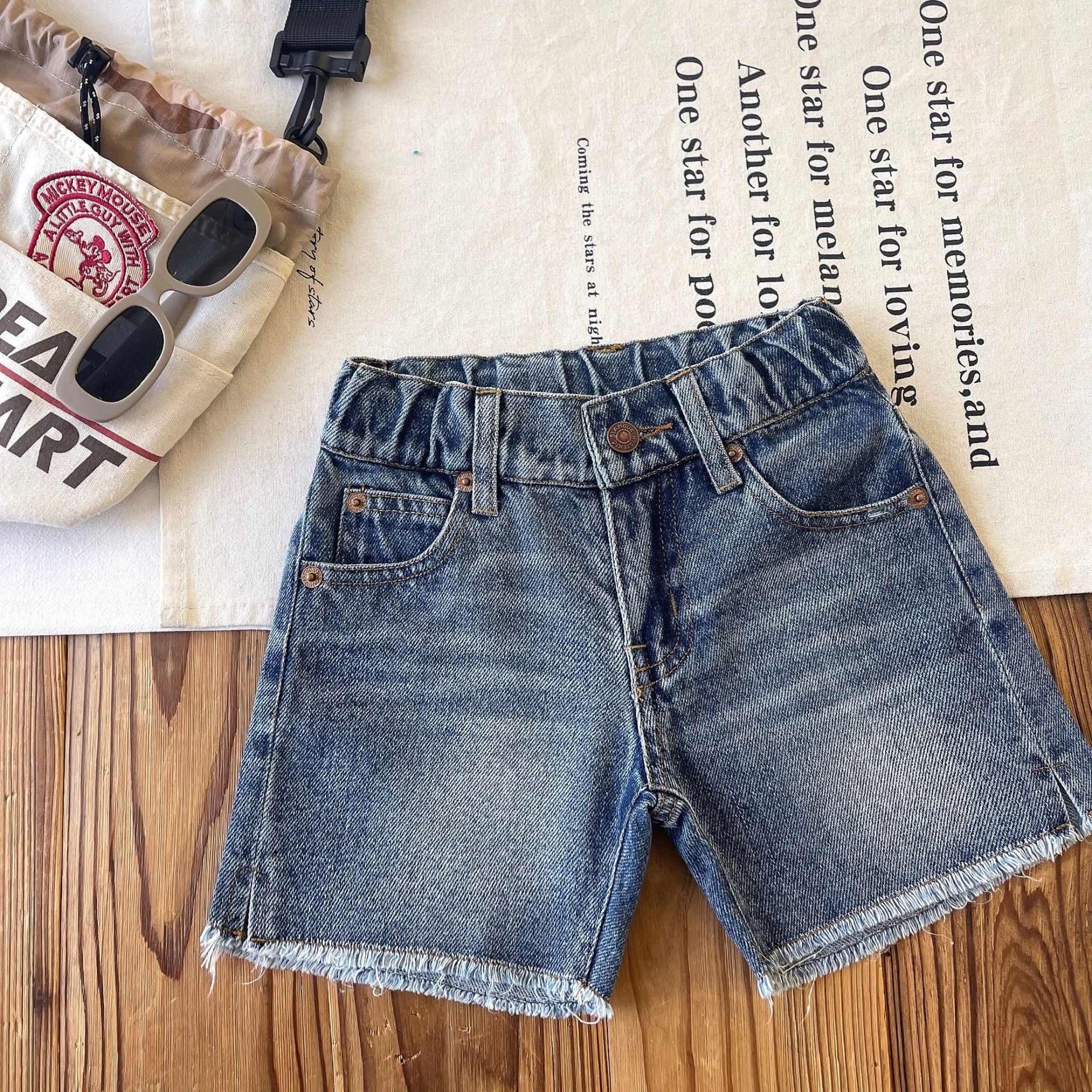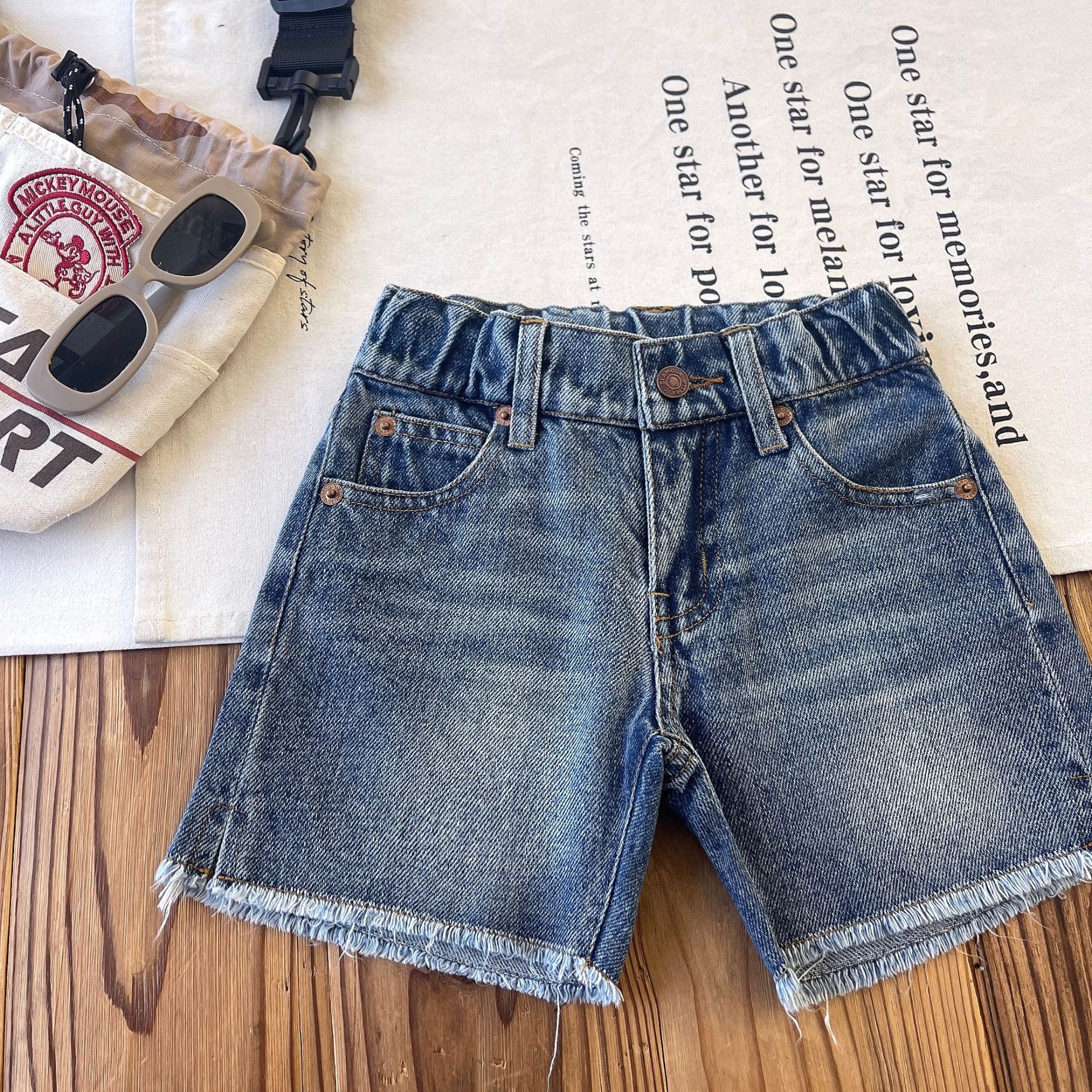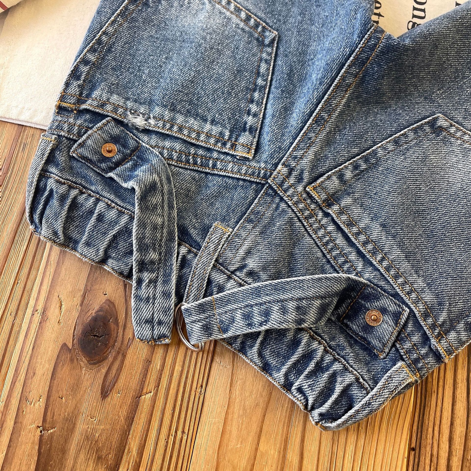 [재고 있음] 일본 아동복 중고 DD 아동 여름 복고풍 디스트레스드 데님 반바지스토어 가기
