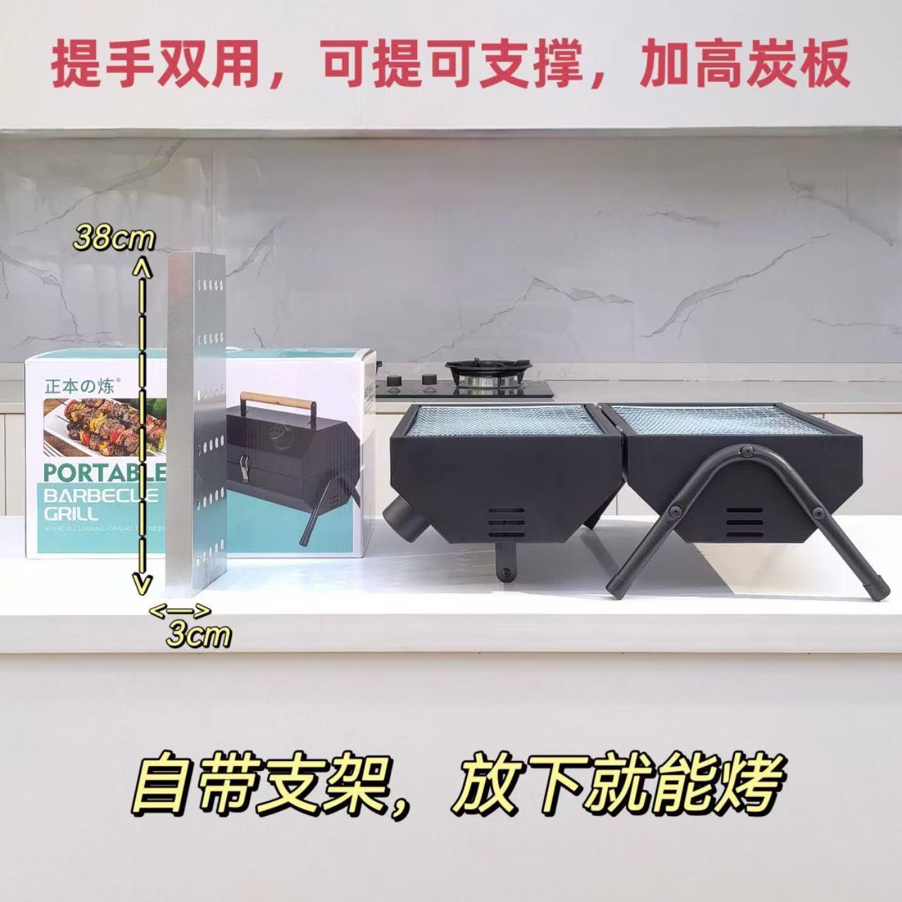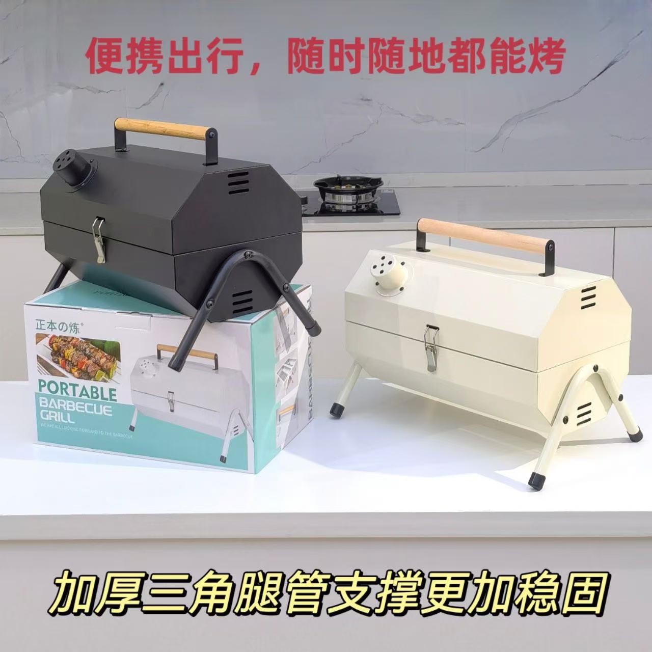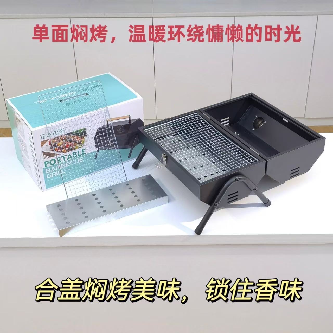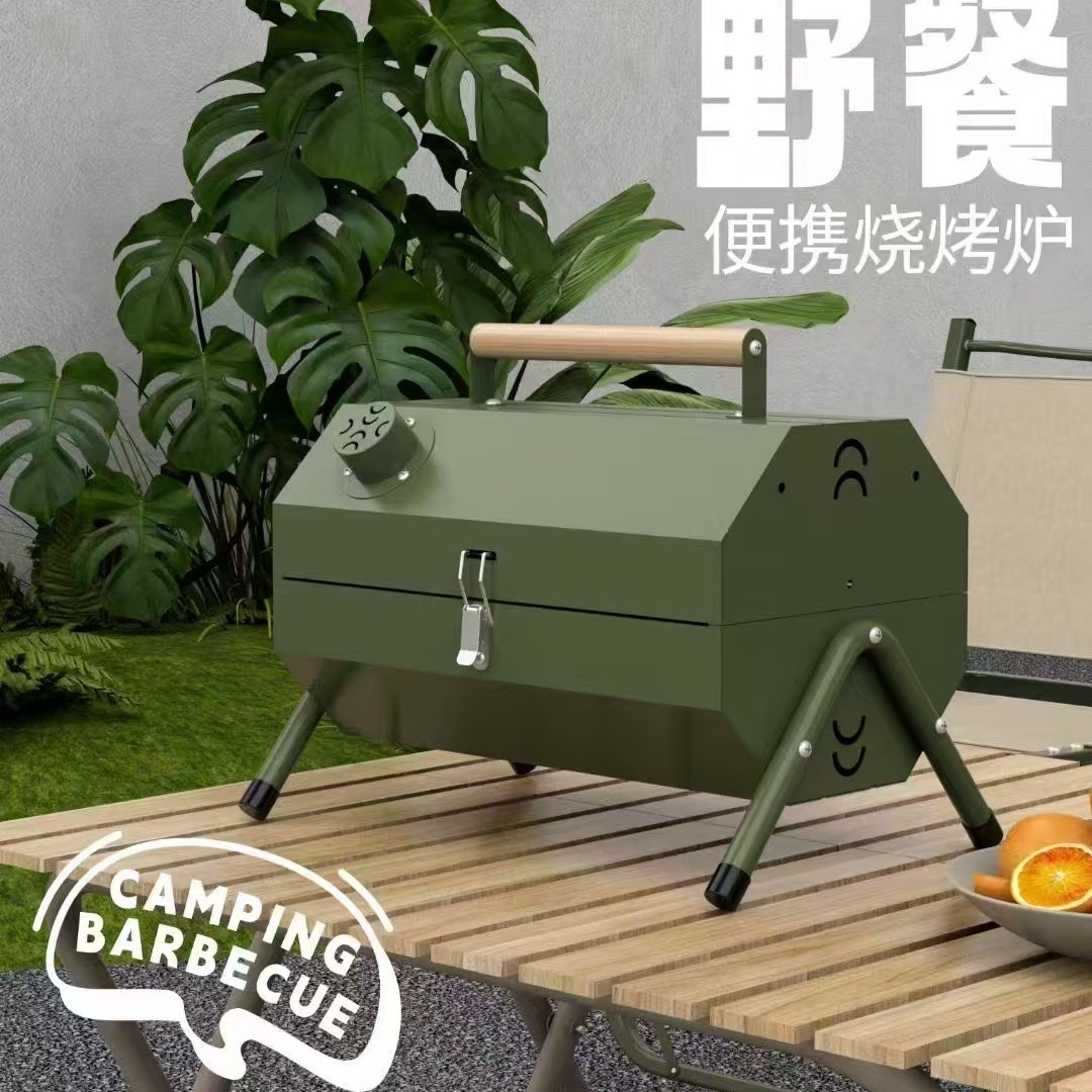 가정용 야외 접이식 휴대용 꼬치 그릴, 숯불 그릴, 인터넷 연예인 소형 바베큐 스탠드 전체 세트