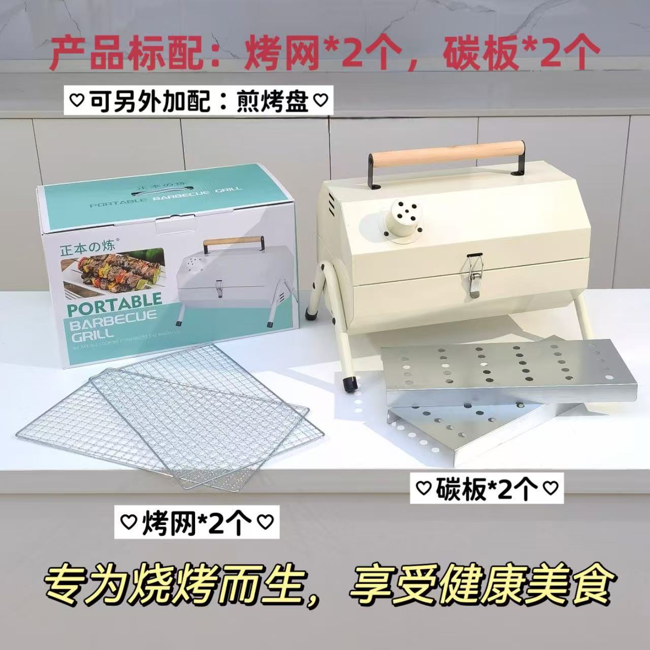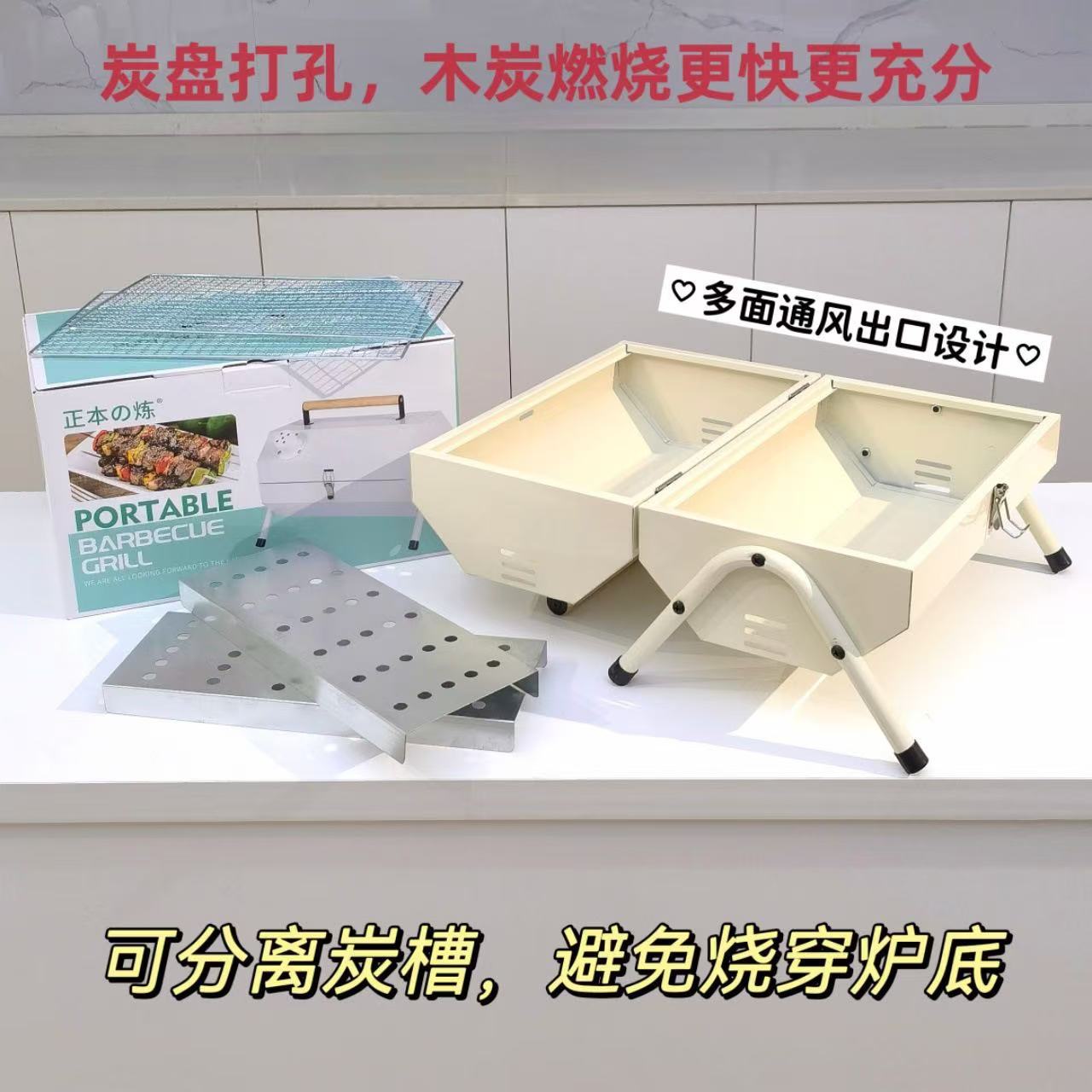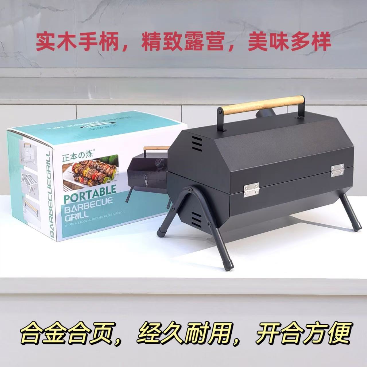 가정용 야외 접이식 휴대용 꼬치 그릴, 숯불 그릴, 인터넷 연예인 소형 바베큐 스탠드 전체 세트스토어 가기